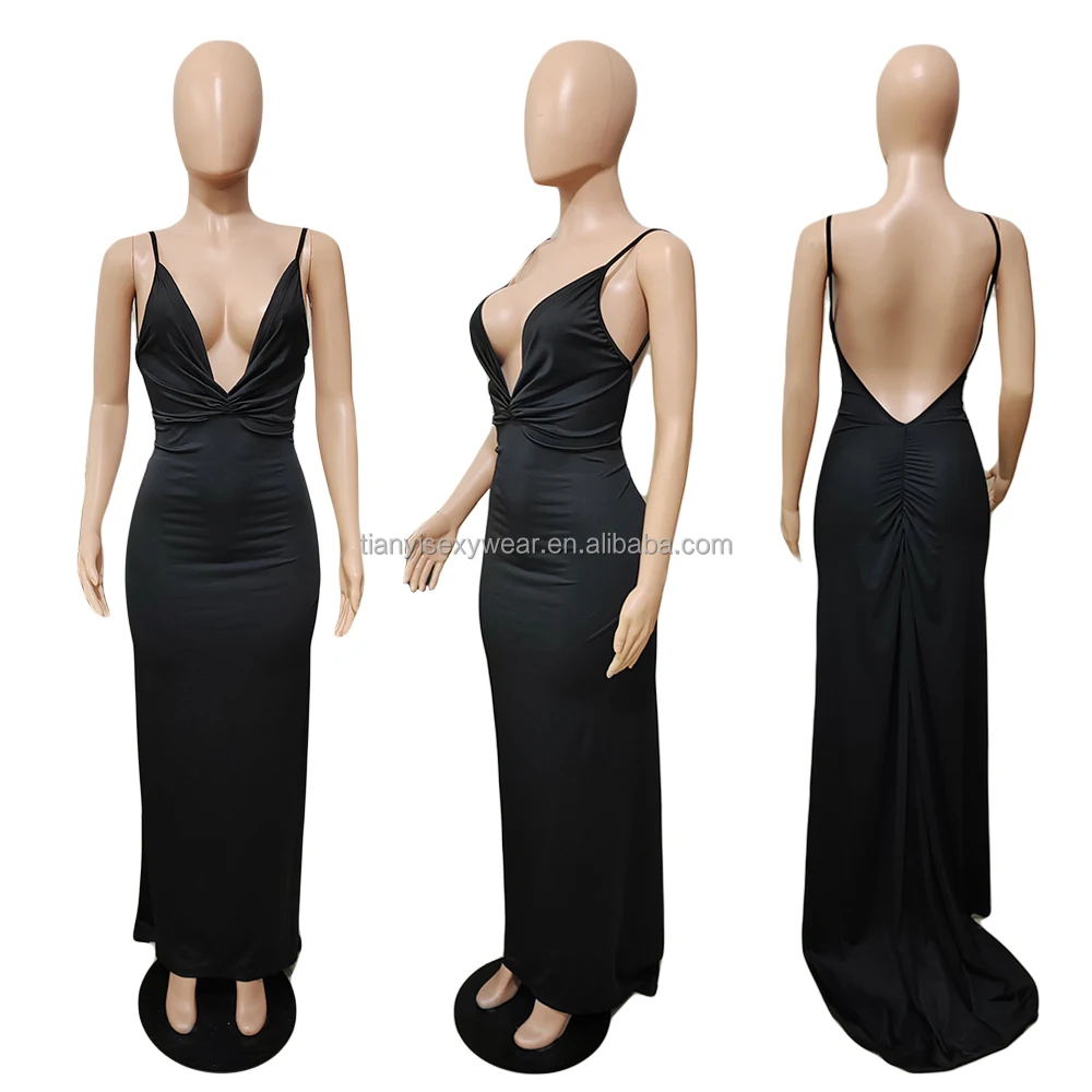 2024 Women's Solid Color V-Neck Dress Sexy Deep Solid-Color Casual Polyester Spandex Natural Waistline Straight Evening Dress
