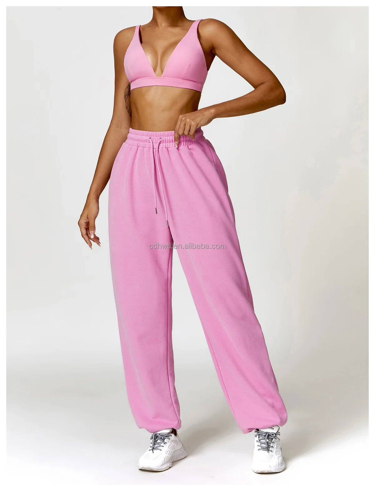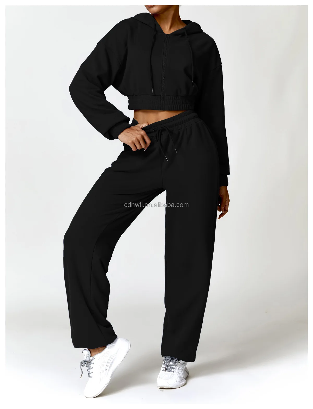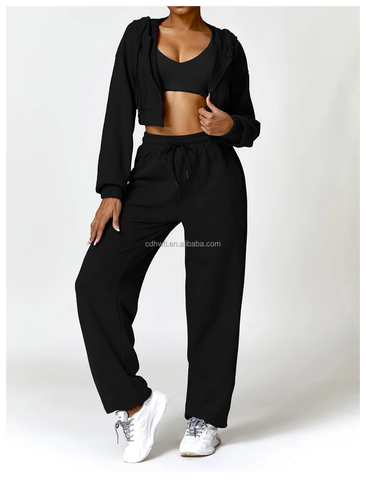 Workout Long Sleeved Hoodie Jacket Jogger pants Sexy Strap Bra Women leggings with pockets Sportswear Fitness Gym Sets