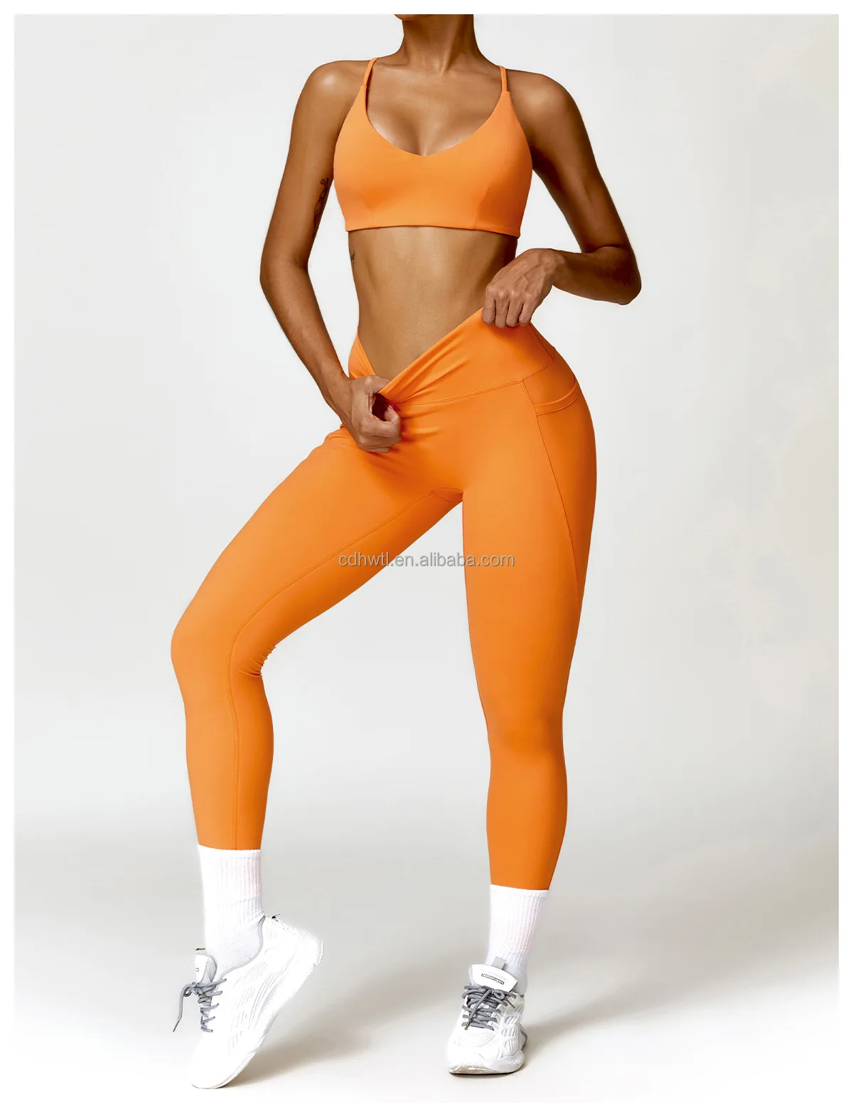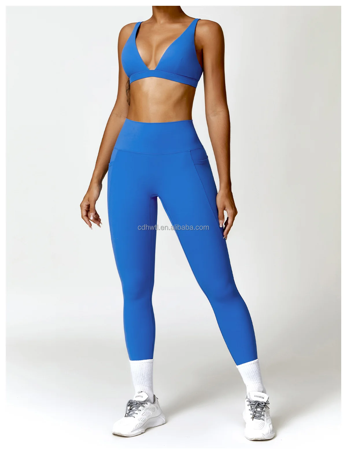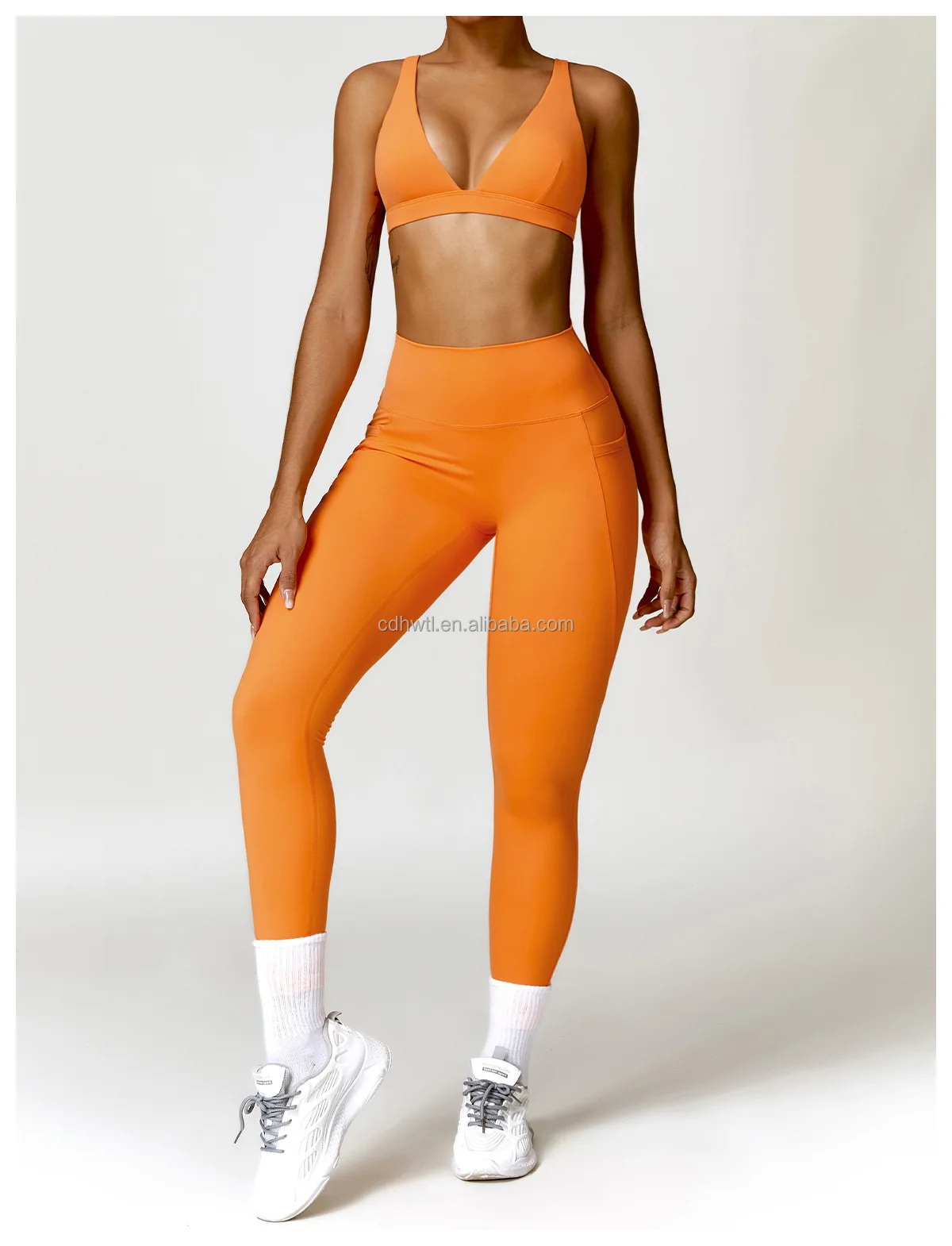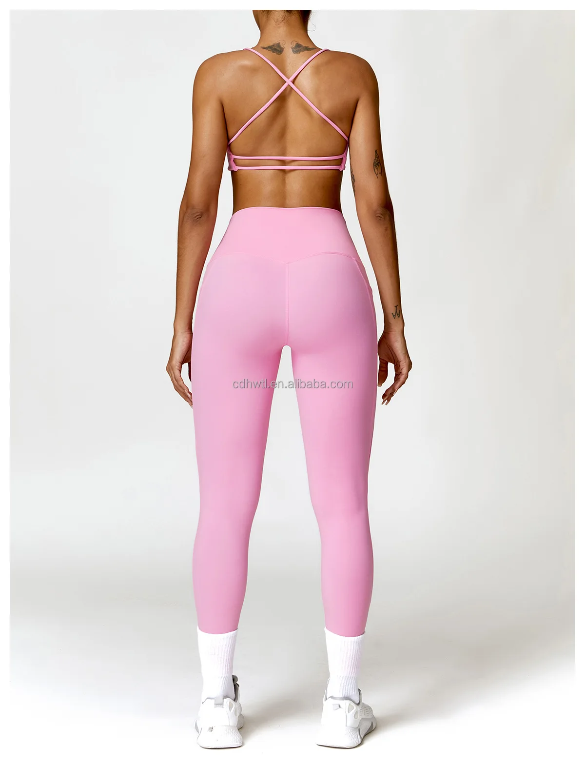 2024 Workout Long Sleeved Hoodies Jacket Jogger pants Sexy Strap Bra Women leggings with pockets Sportswear Fitness Gym Sets