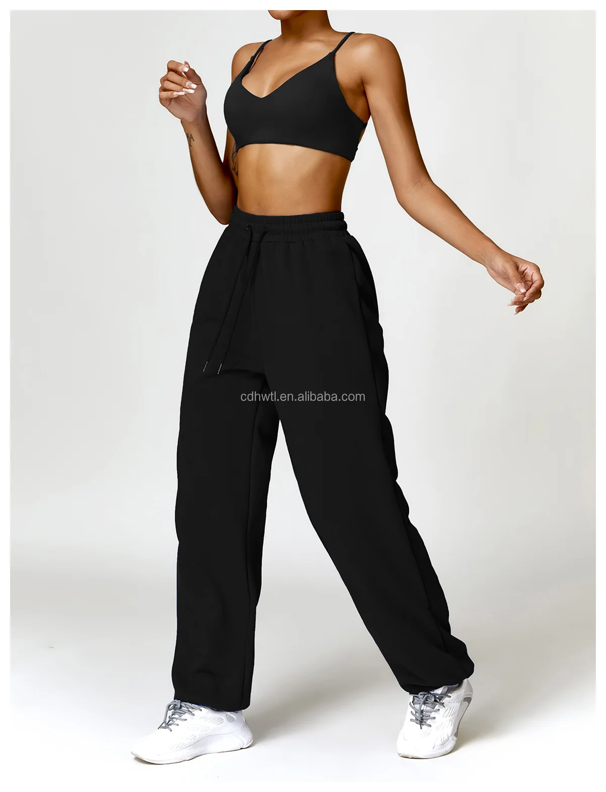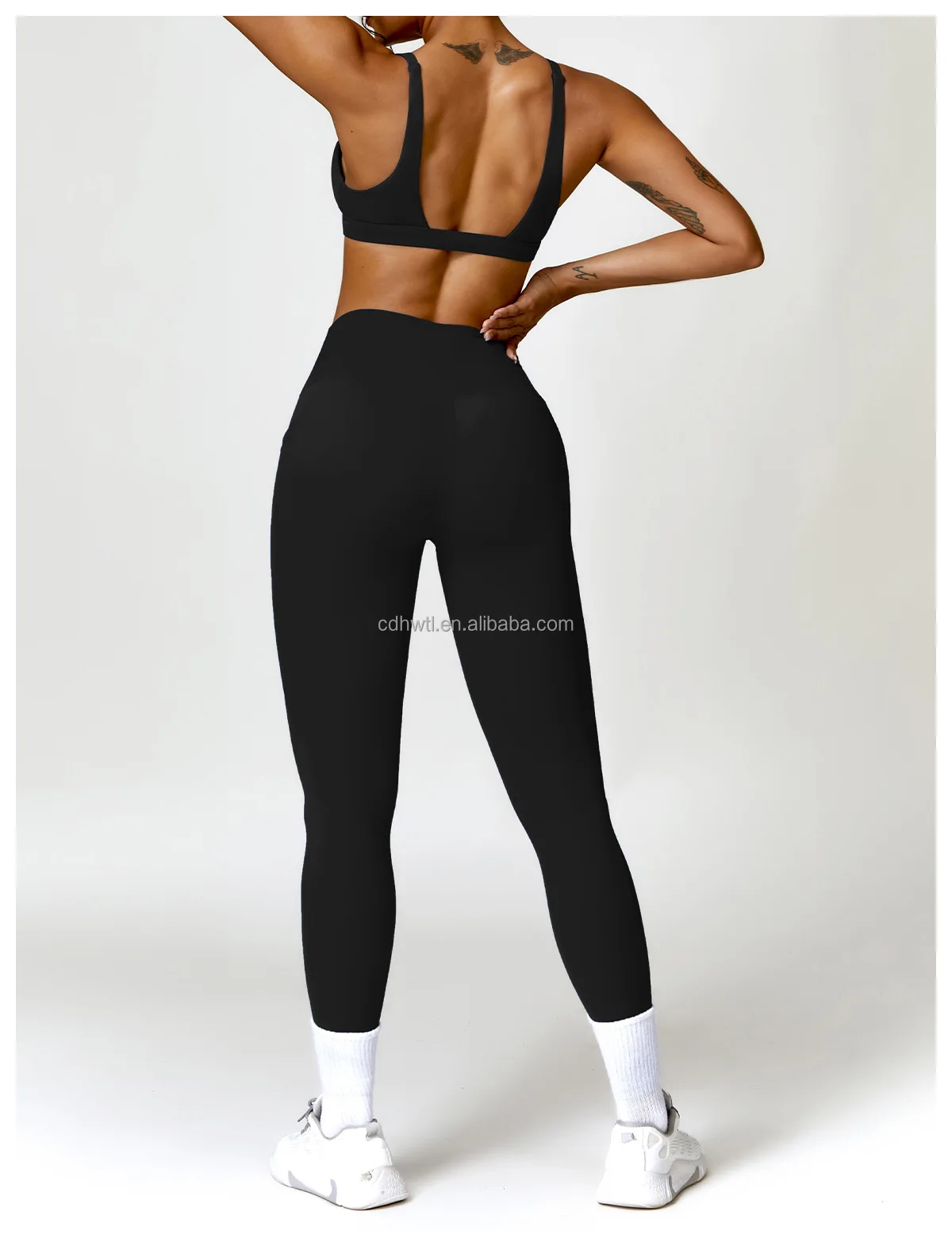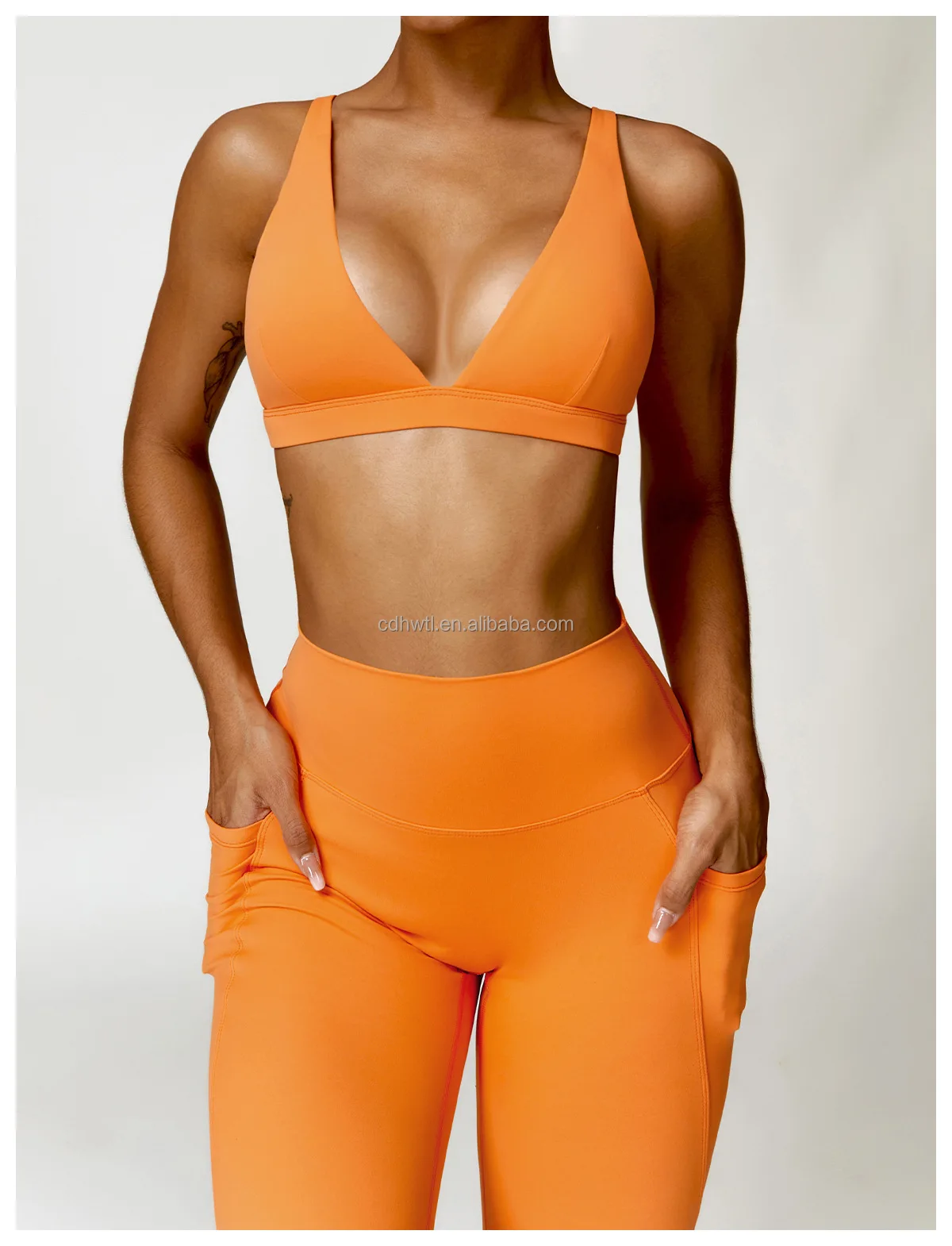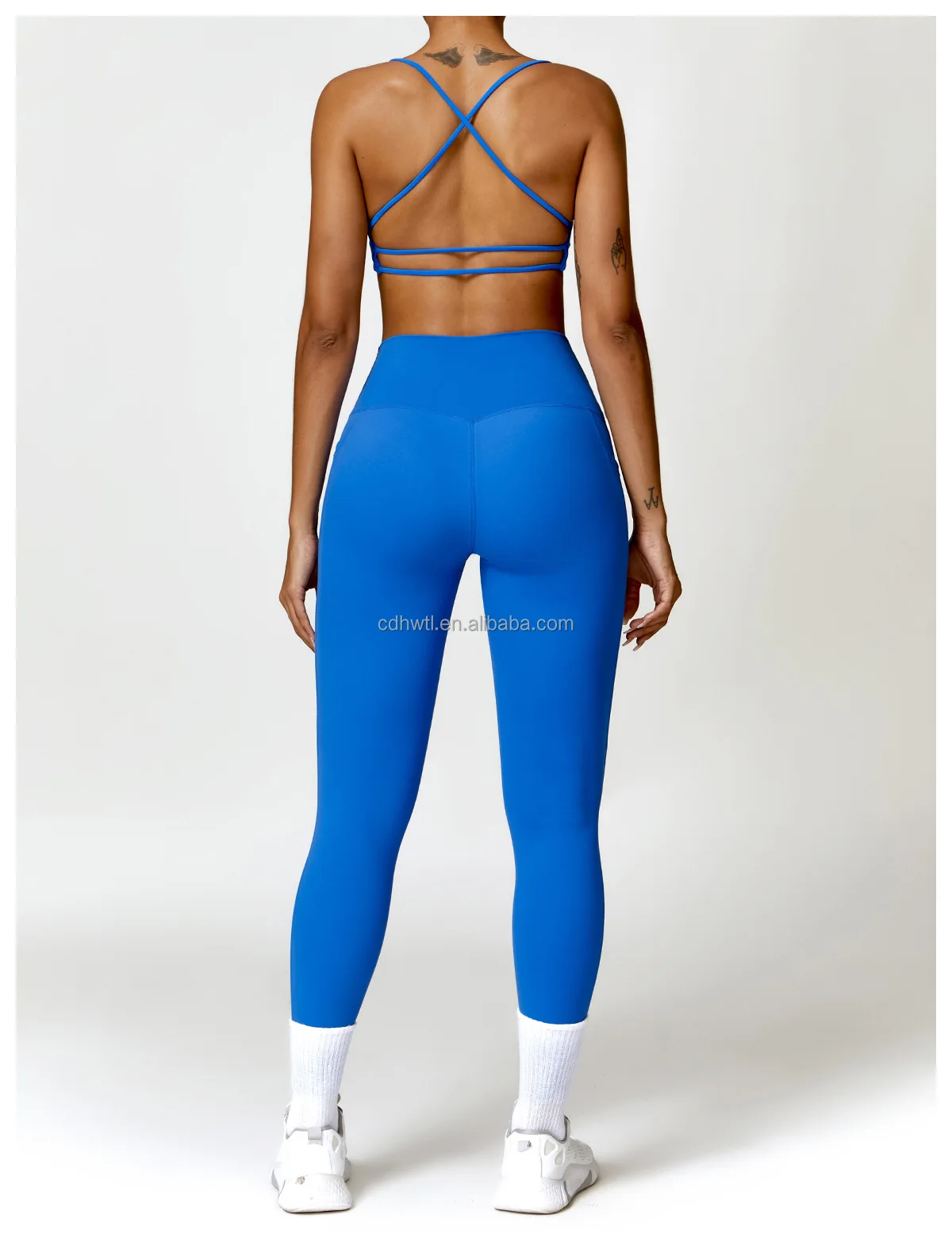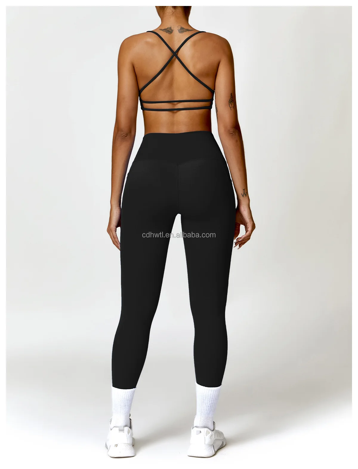 2024 Workout Long Sleeved Hoodies Jacket Jogger pants Sexy Strap Bra Women leggings with pockets Sportswear Fitness Gym Sets