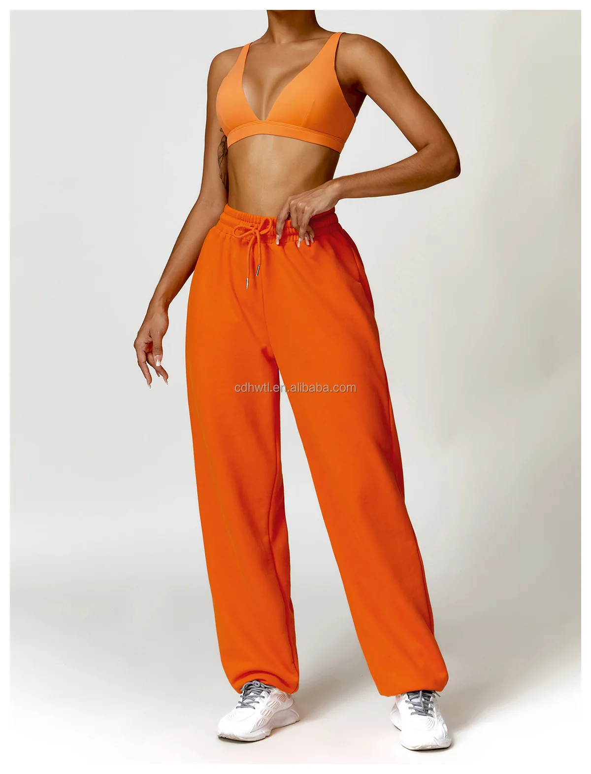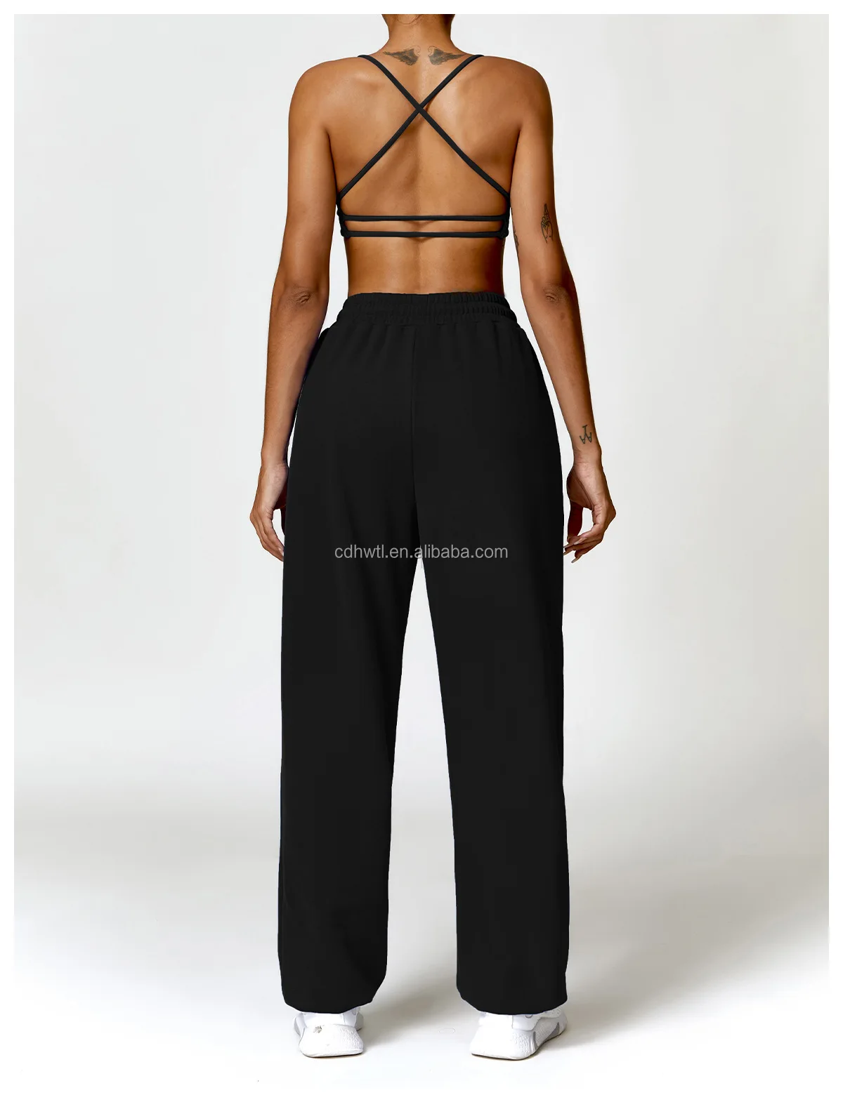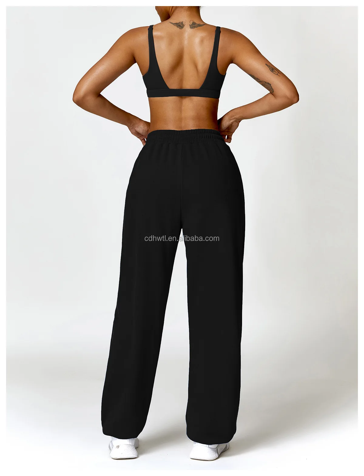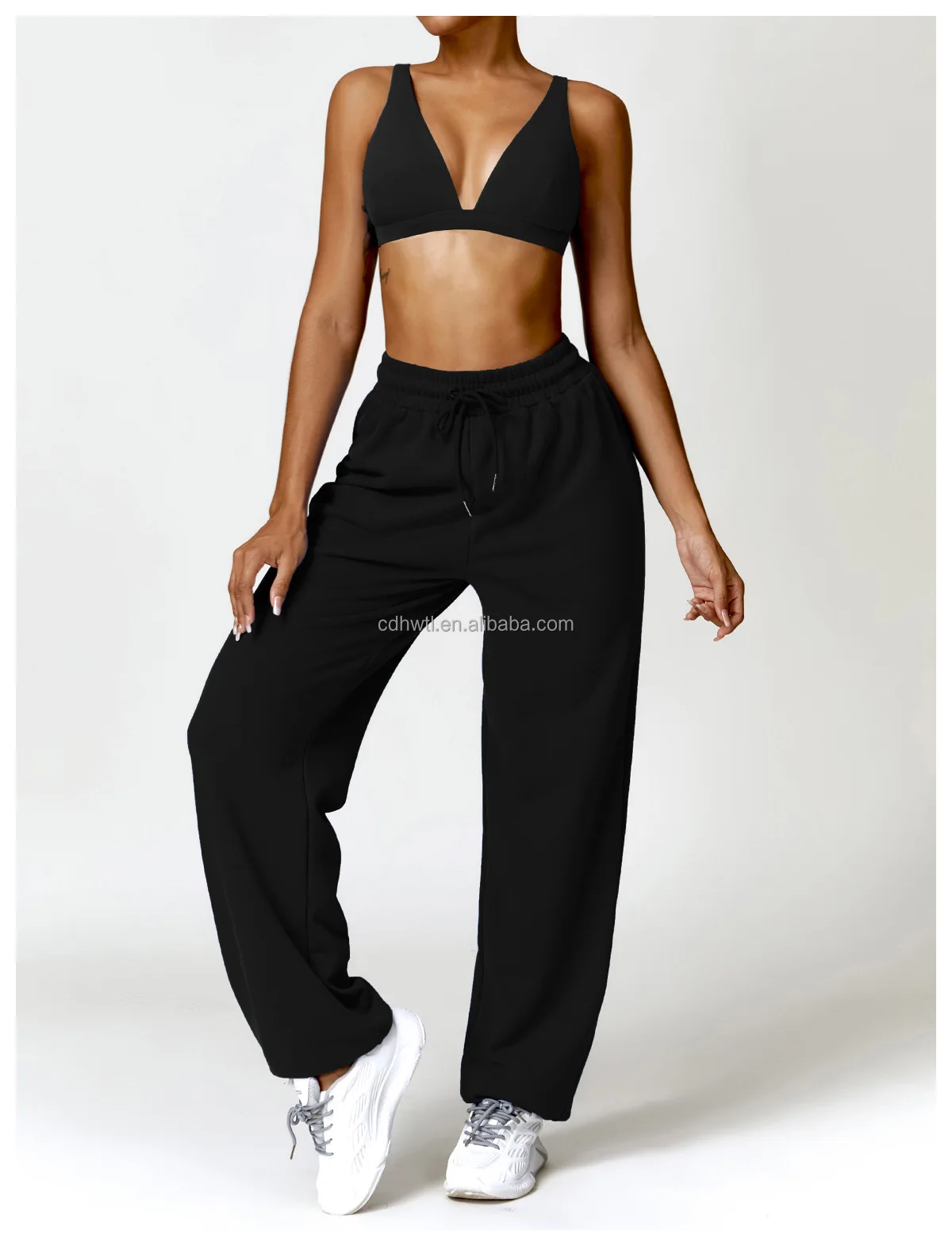 2024 Workout Long Sleeved Hoodies Jacket Jogger pants Sexy Strap Bra Women leggings with pockets Sportswear Fitness Gym Sets