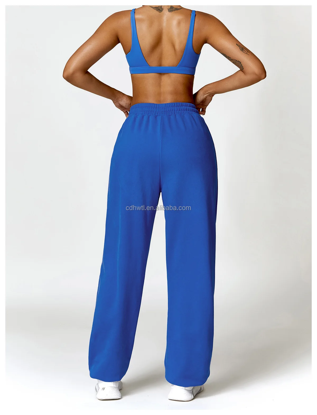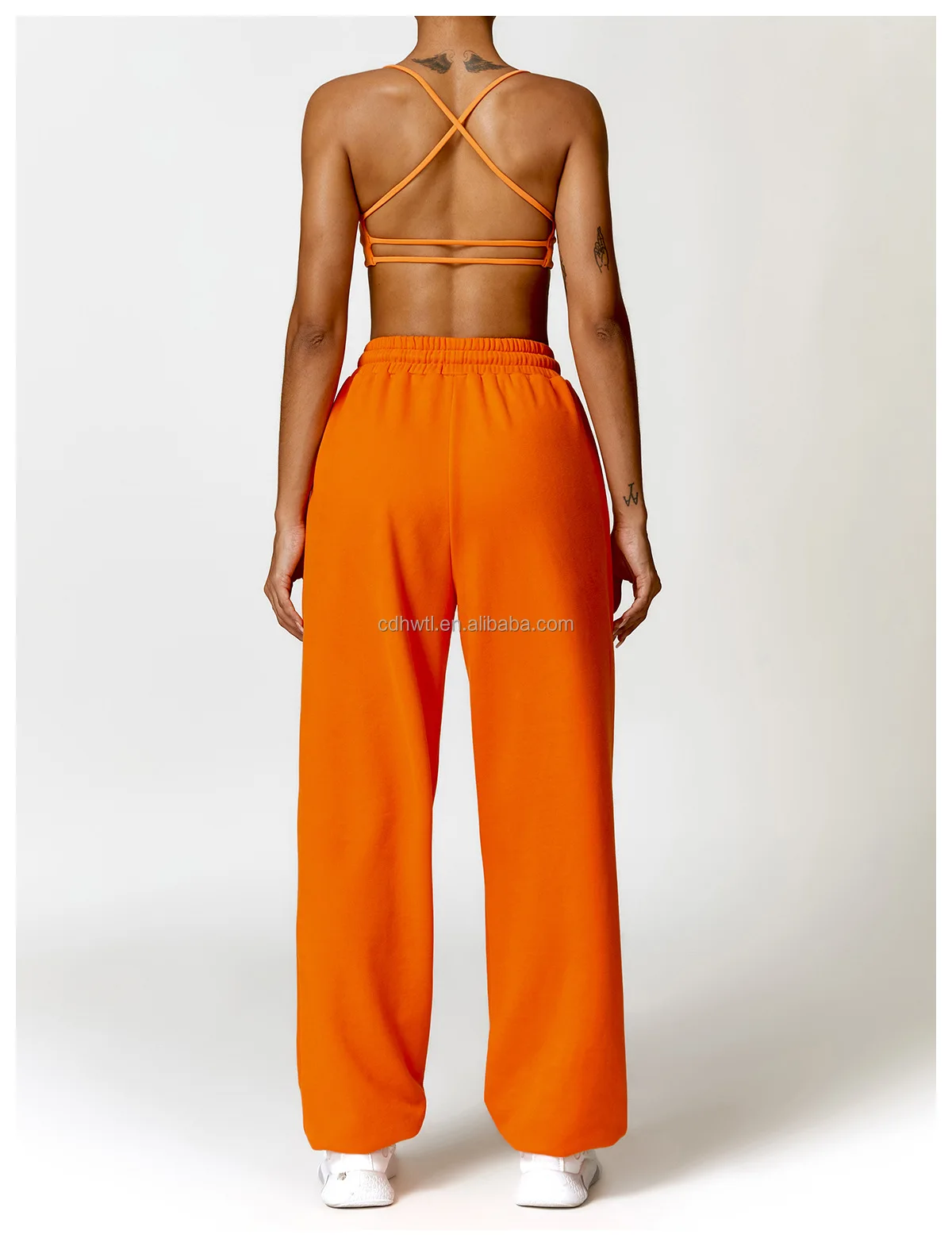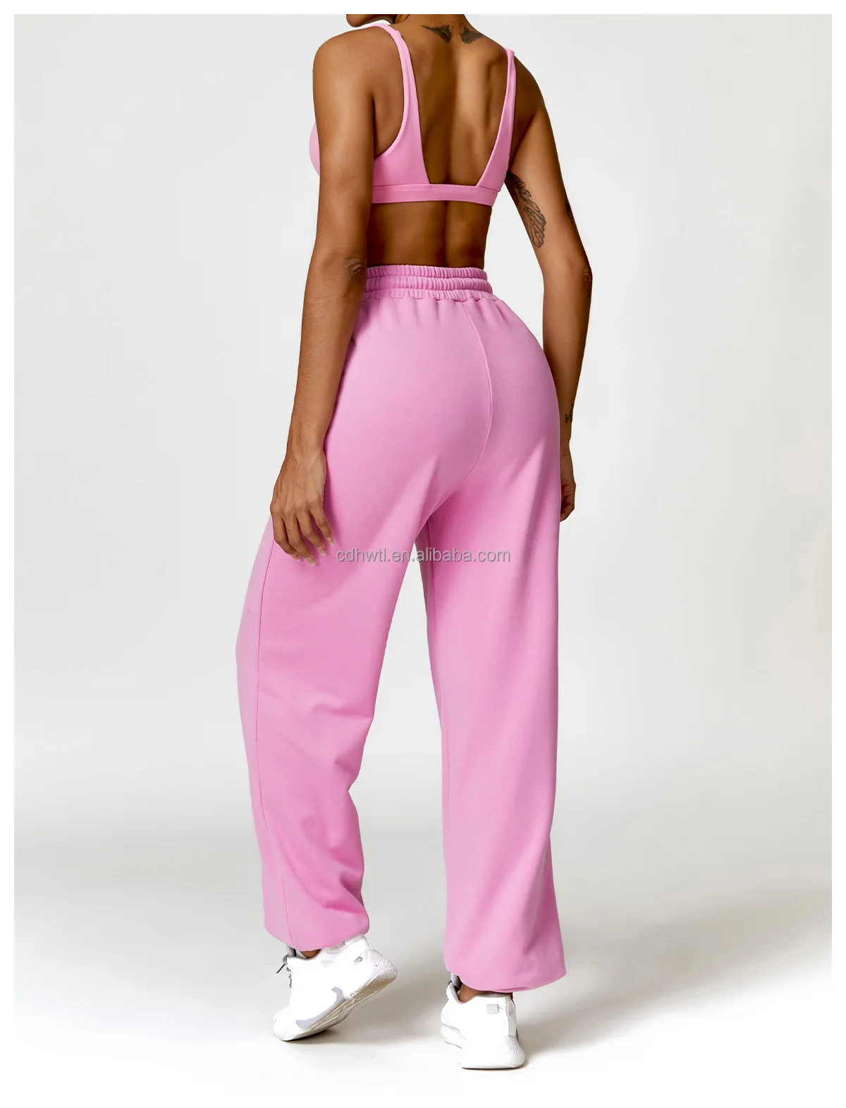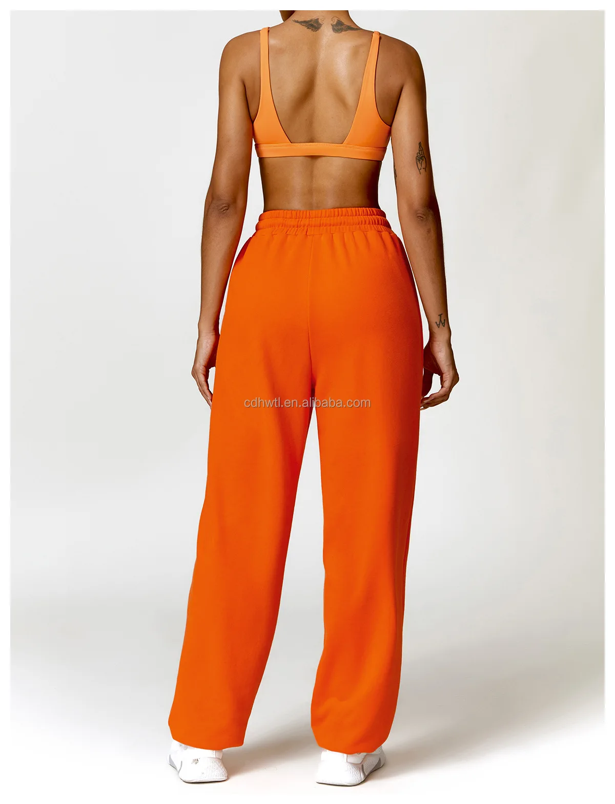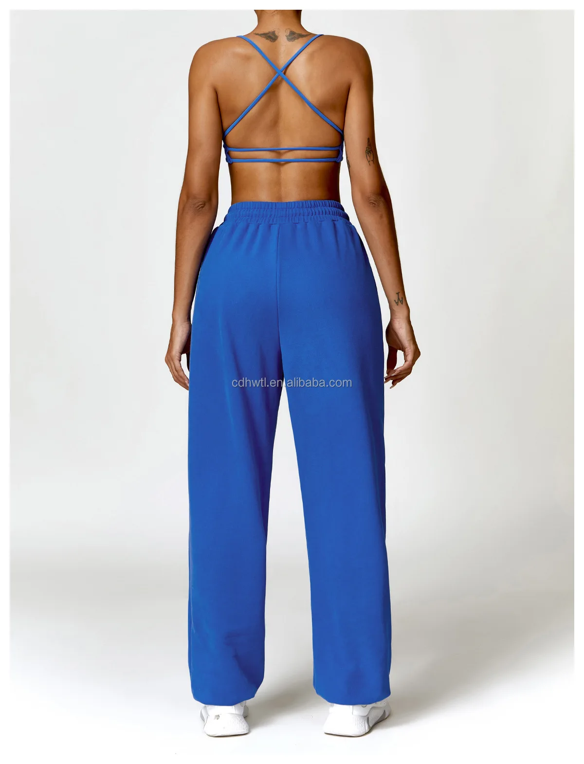 2024 Workout Long Sleeved Hoodies Jacket Jogger pants Sexy Strap Bra Women leggings with pockets Sportswear Fitness Gym Sets
