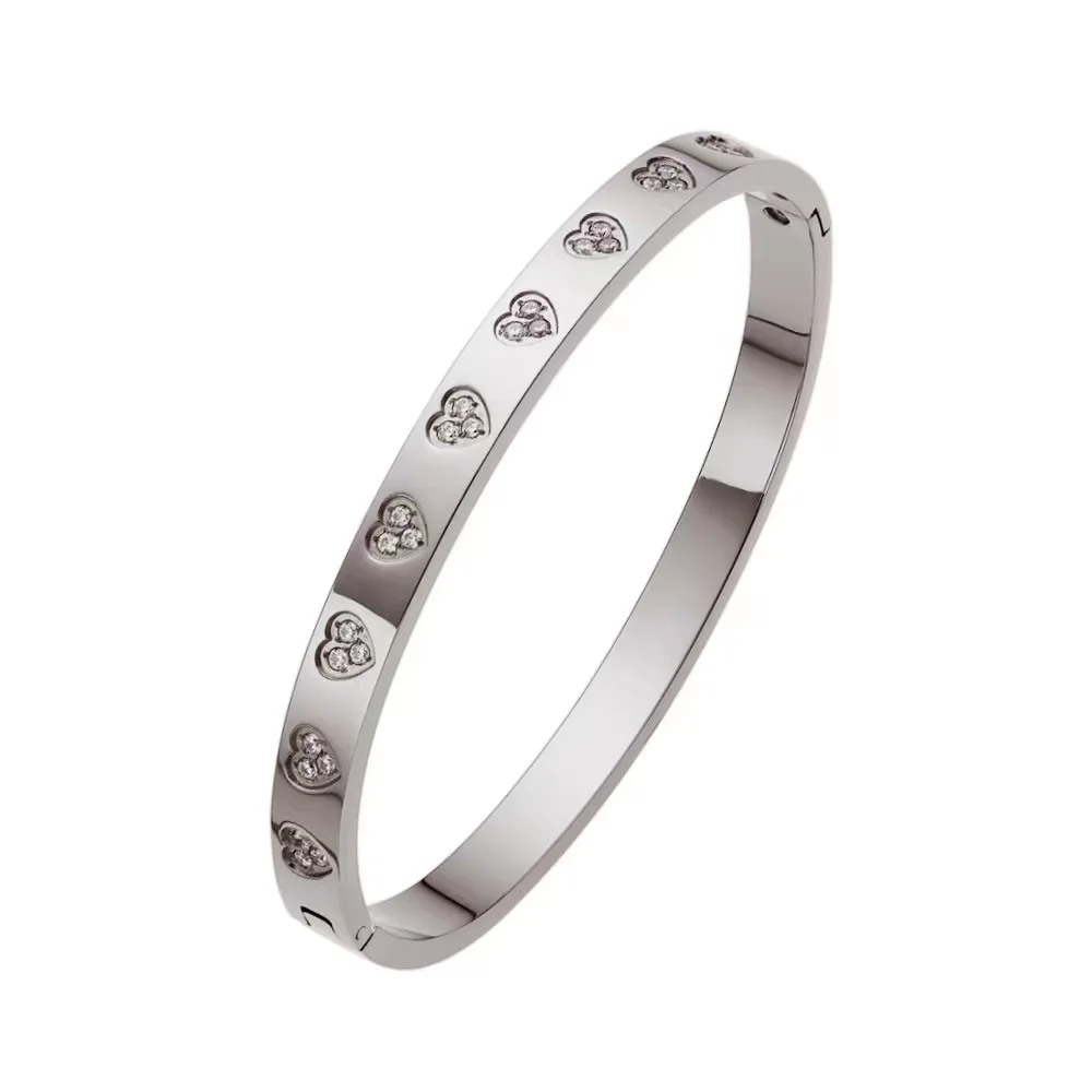 2024 Zircon of heart Bracelet Titanium Steel Designer Bangles Handmade Chic Elegant Statement Jewelry Gifts For Women Ladies