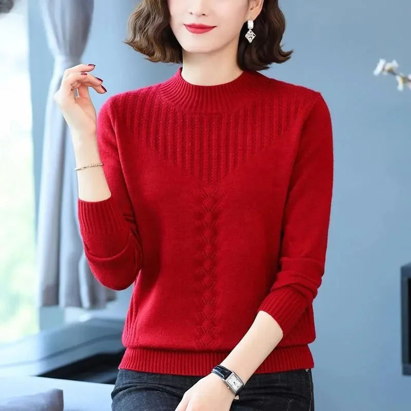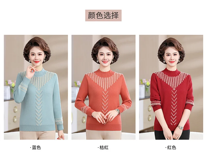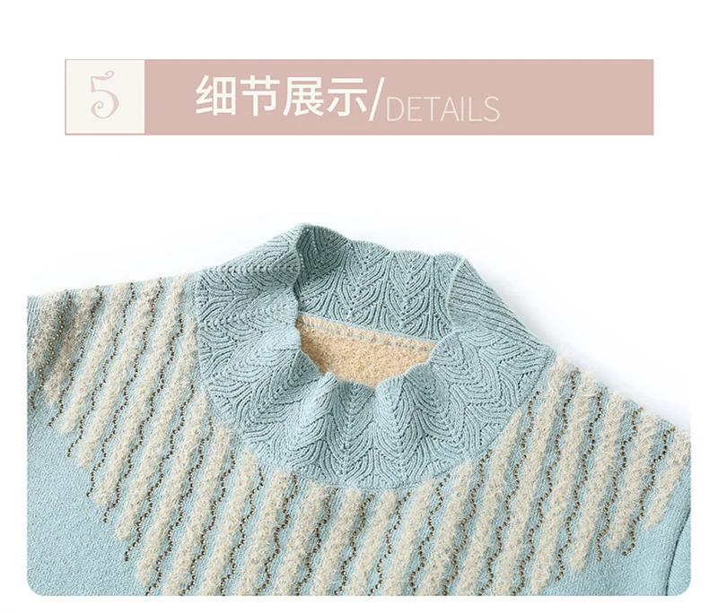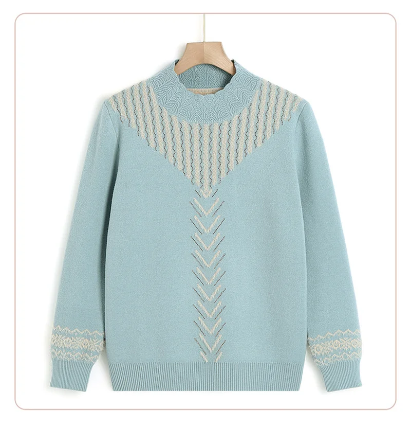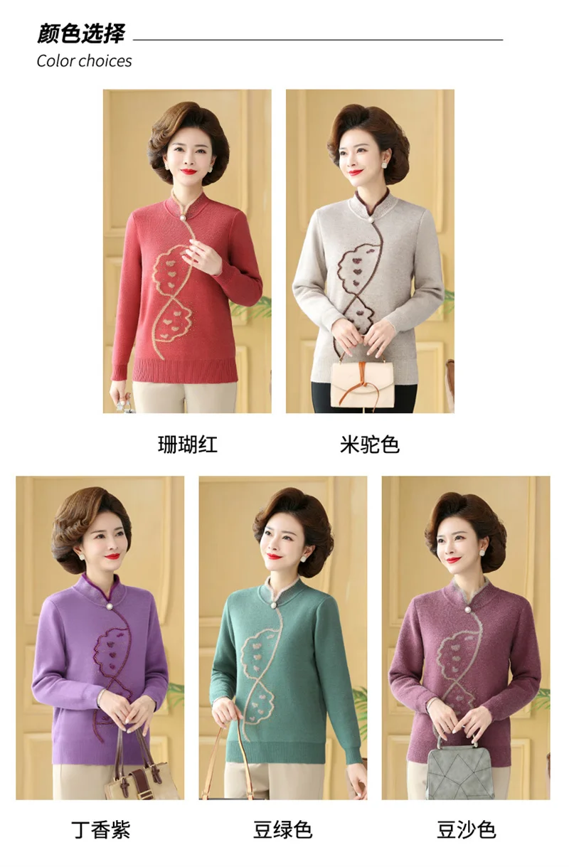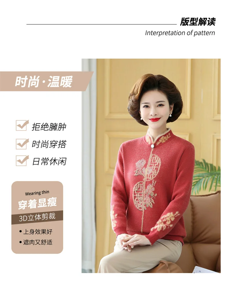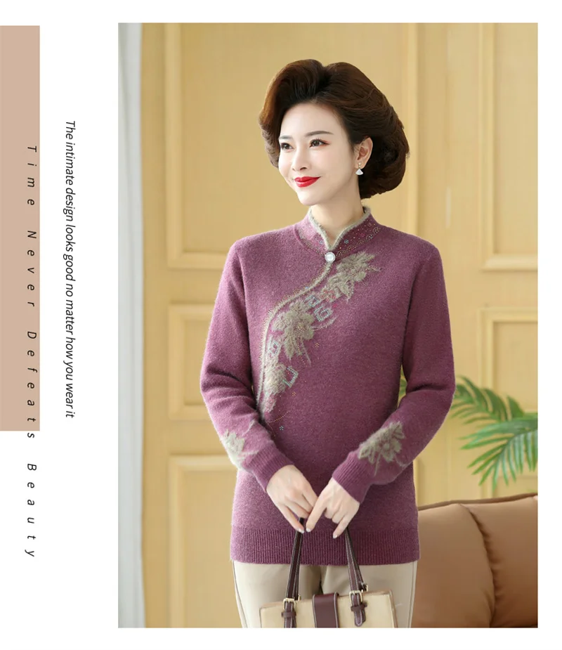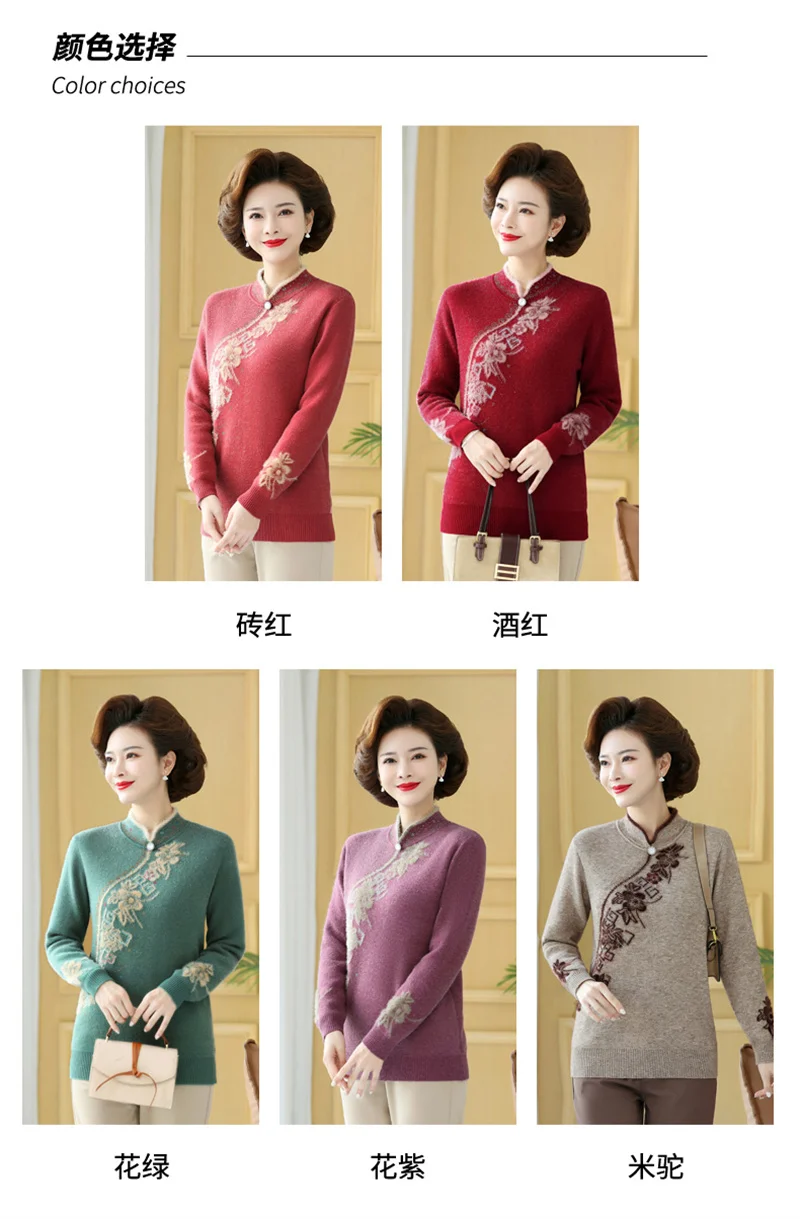 2025 Autumn New Mom's Velvet And Warm Knitted Embroidered Bottom Shirts Imitation Mink Fleece Winter Inner Plsh Thick Pullover