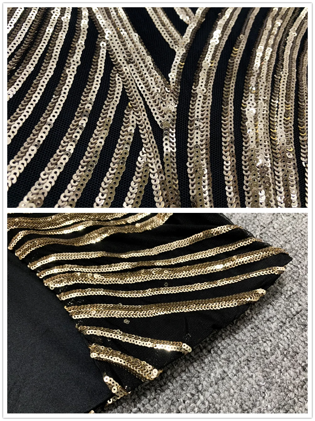 2025 Autumn School New Gold Sequin Women's Midi Dress Long Sleeve Deep V-neck Bodycon Dress Evening Party Dresses Vestidos