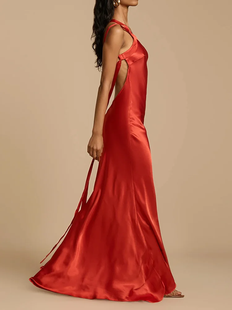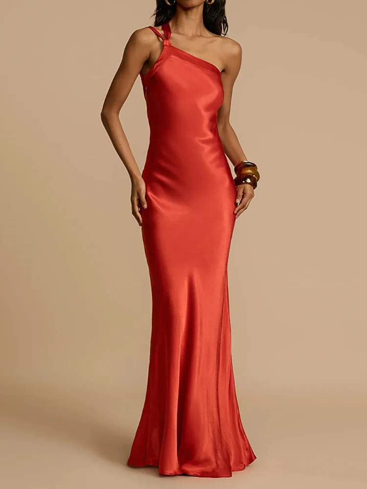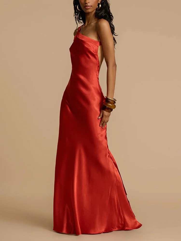 2025 Backless Loungewear Party Dress, Women Summer Sleeveless Solid Maxi Dress, Sexy Skew Collar Elegant Ladies Dress Streetwear