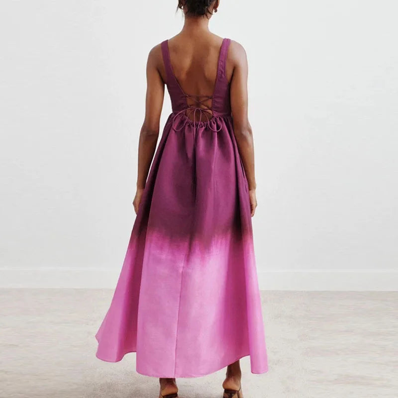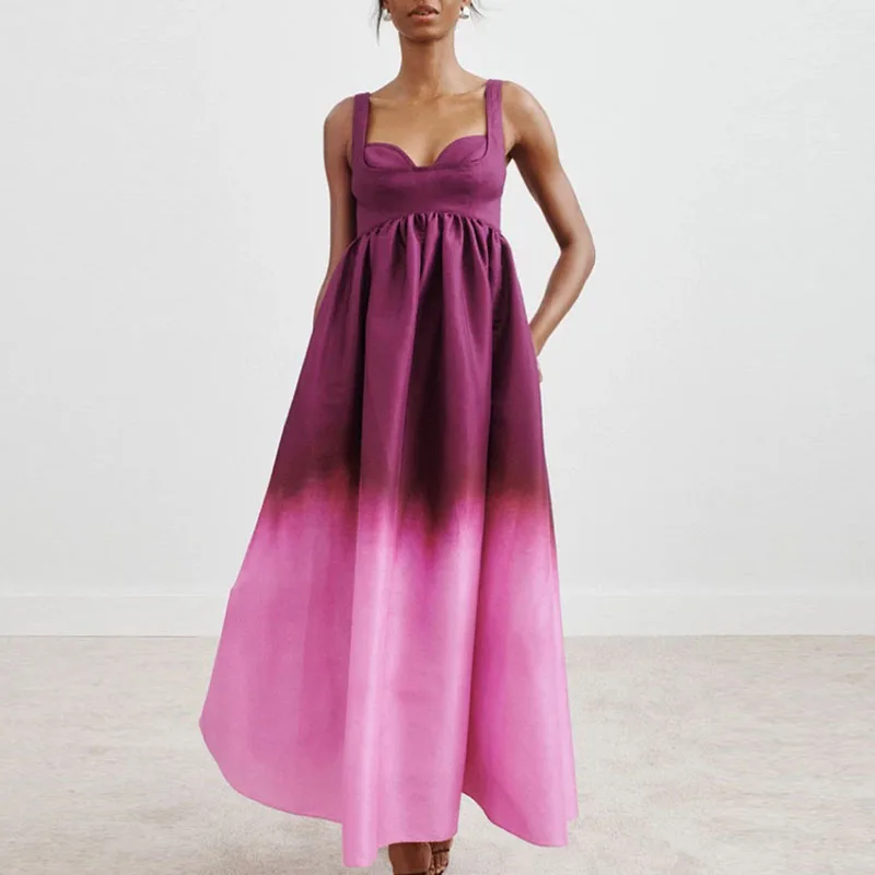 2025 Fashion Gradient Print Sleeveless Beach Dress Sexy Wrap Chest Women's Party Dress Strap Backless Hollow Out Holiday Dress