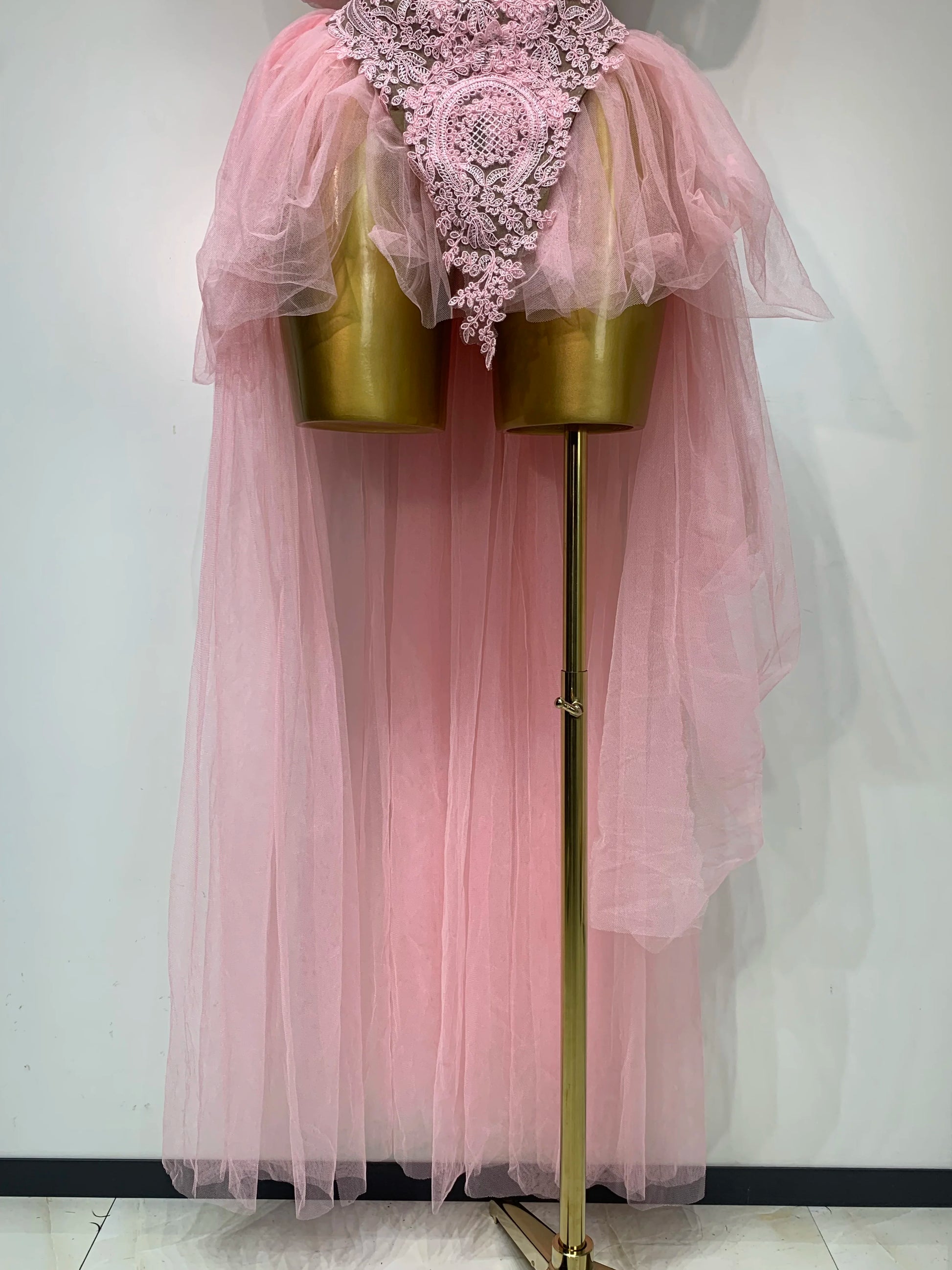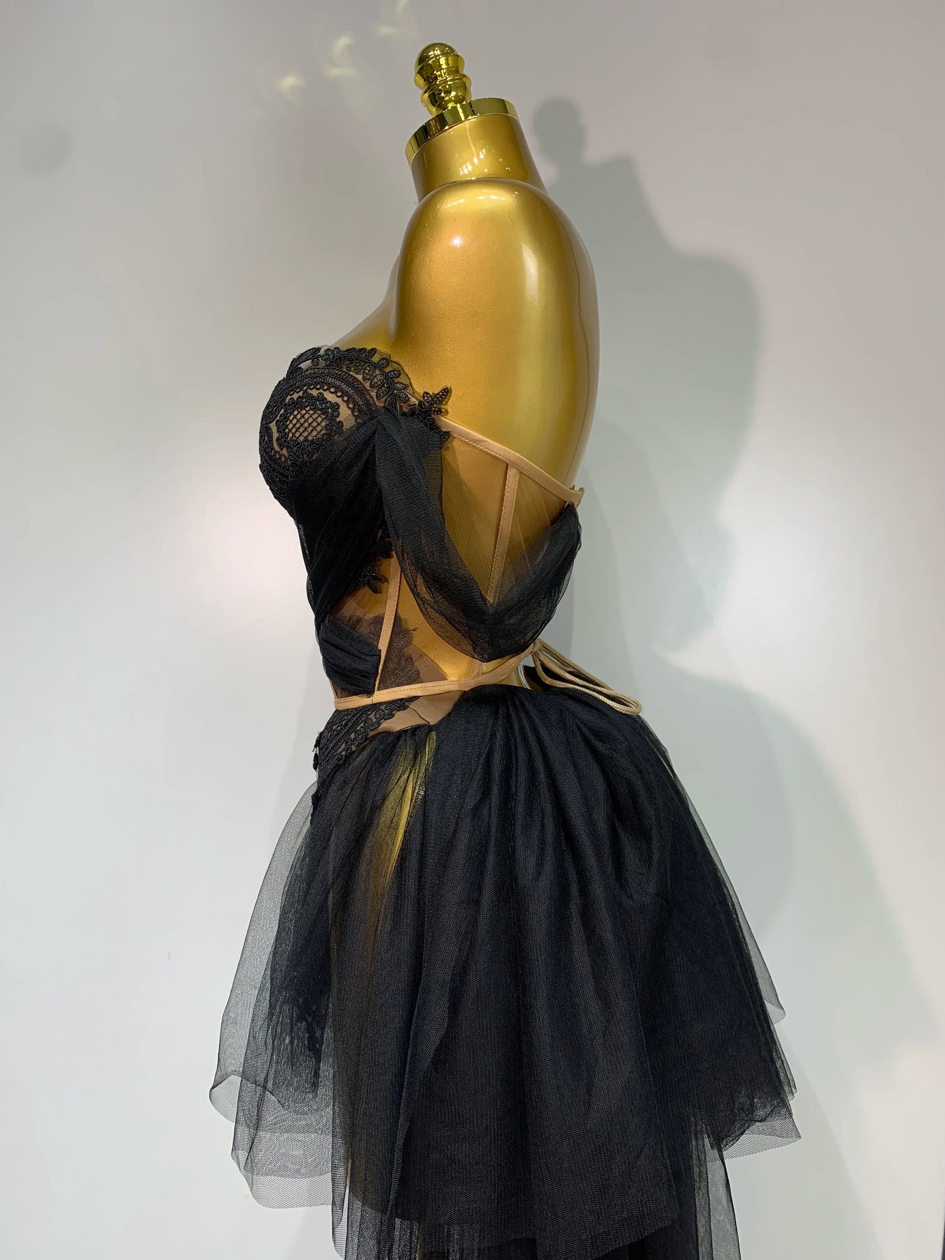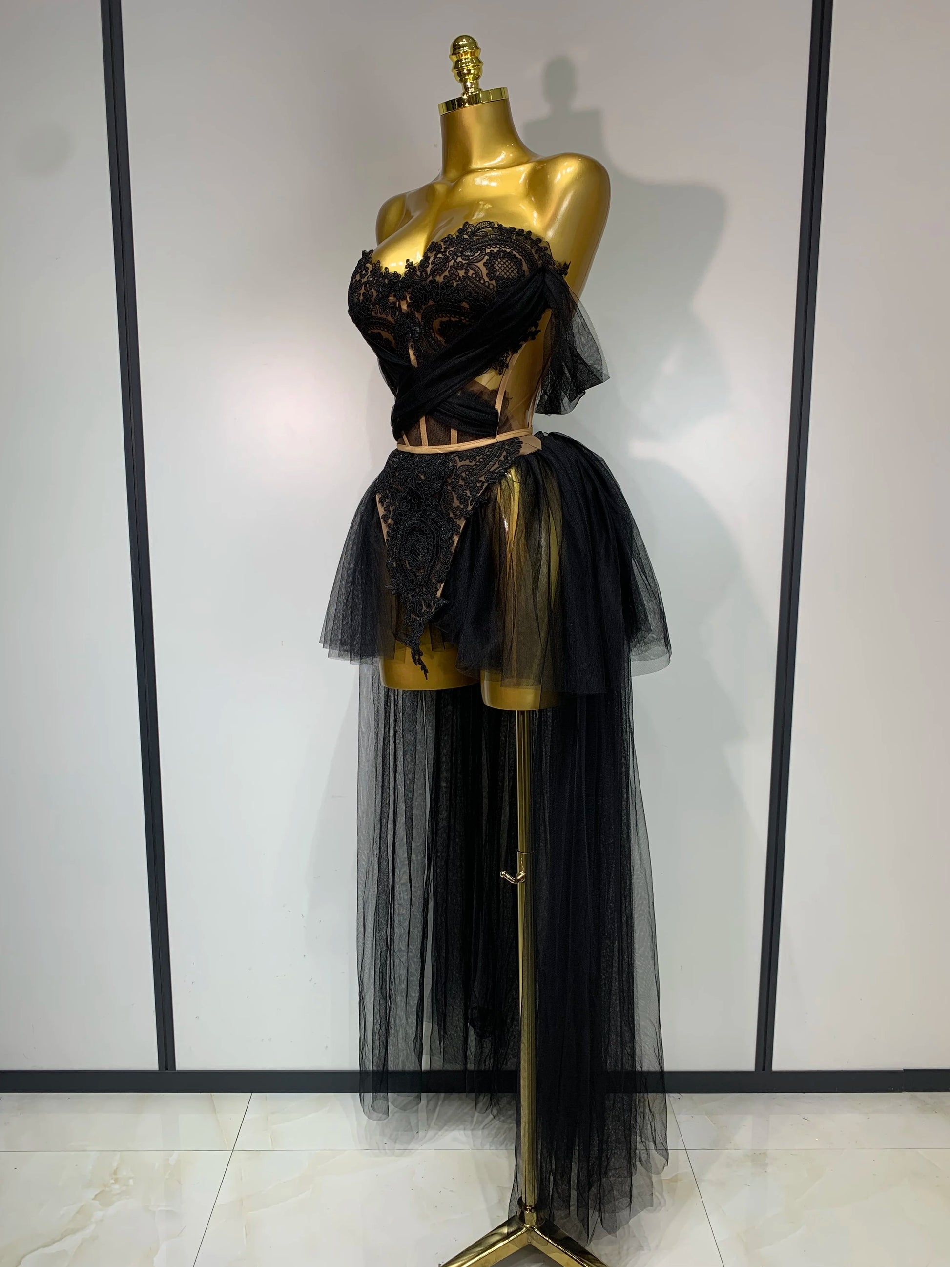 2025 New Arrived Sexy Cute Mesh Tops Skirt 2 PCS Set Women Celebrate Party Birthday Nightclub Performance Stage Show Outfit