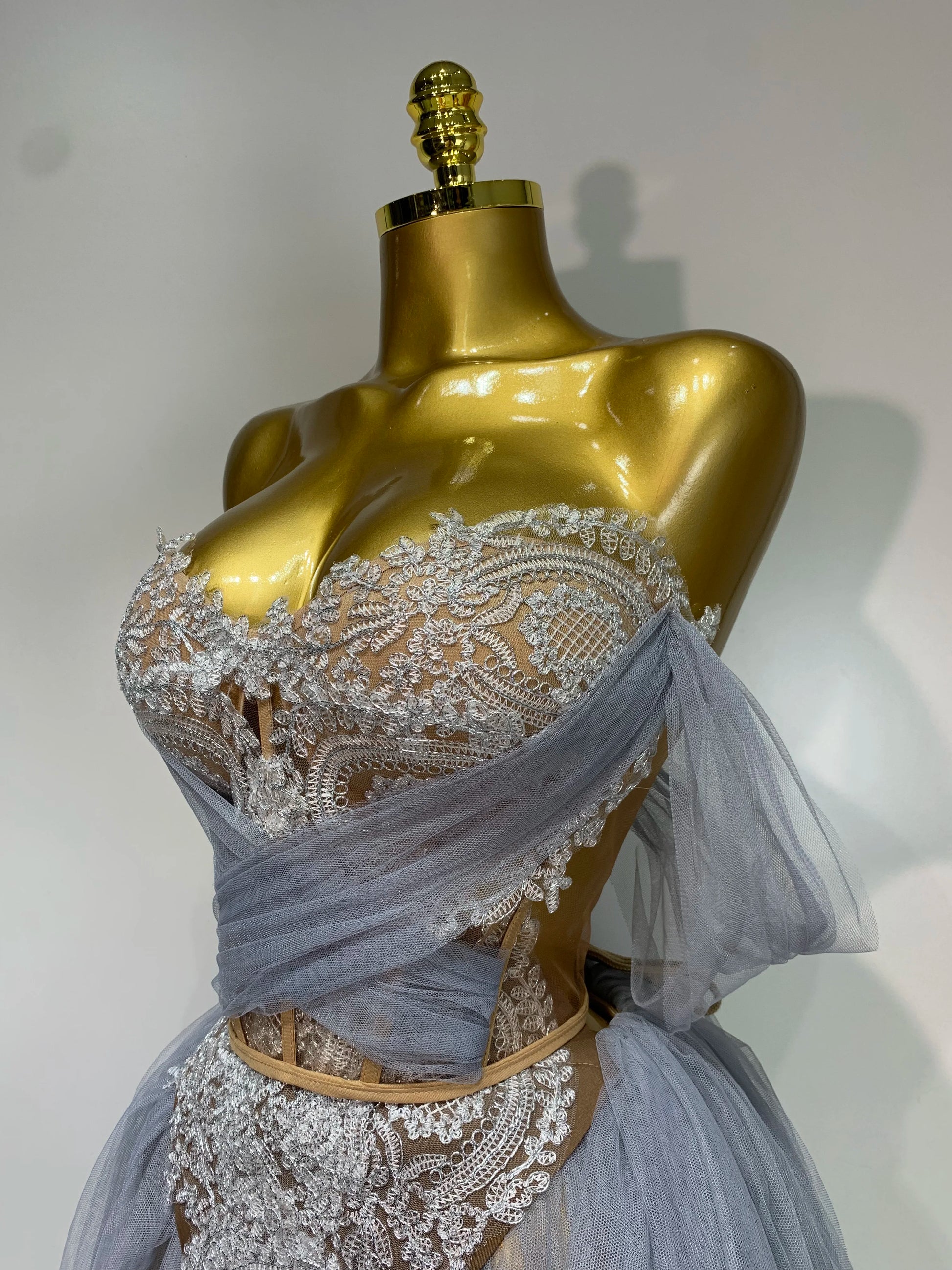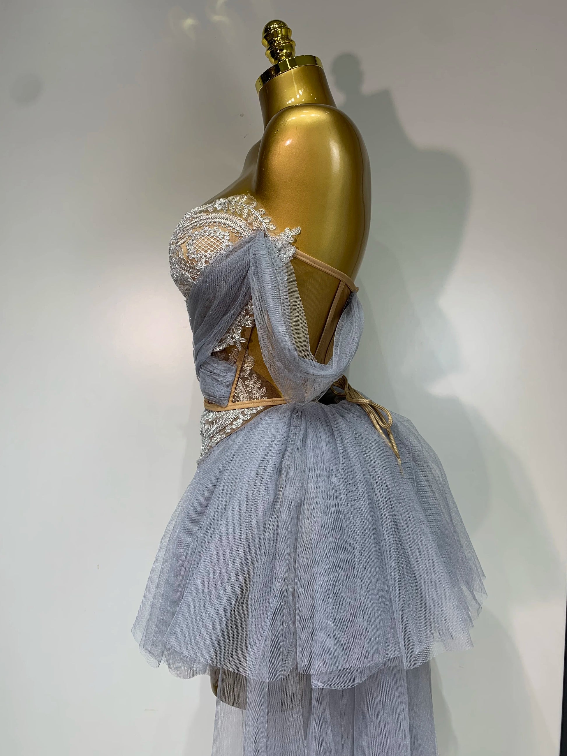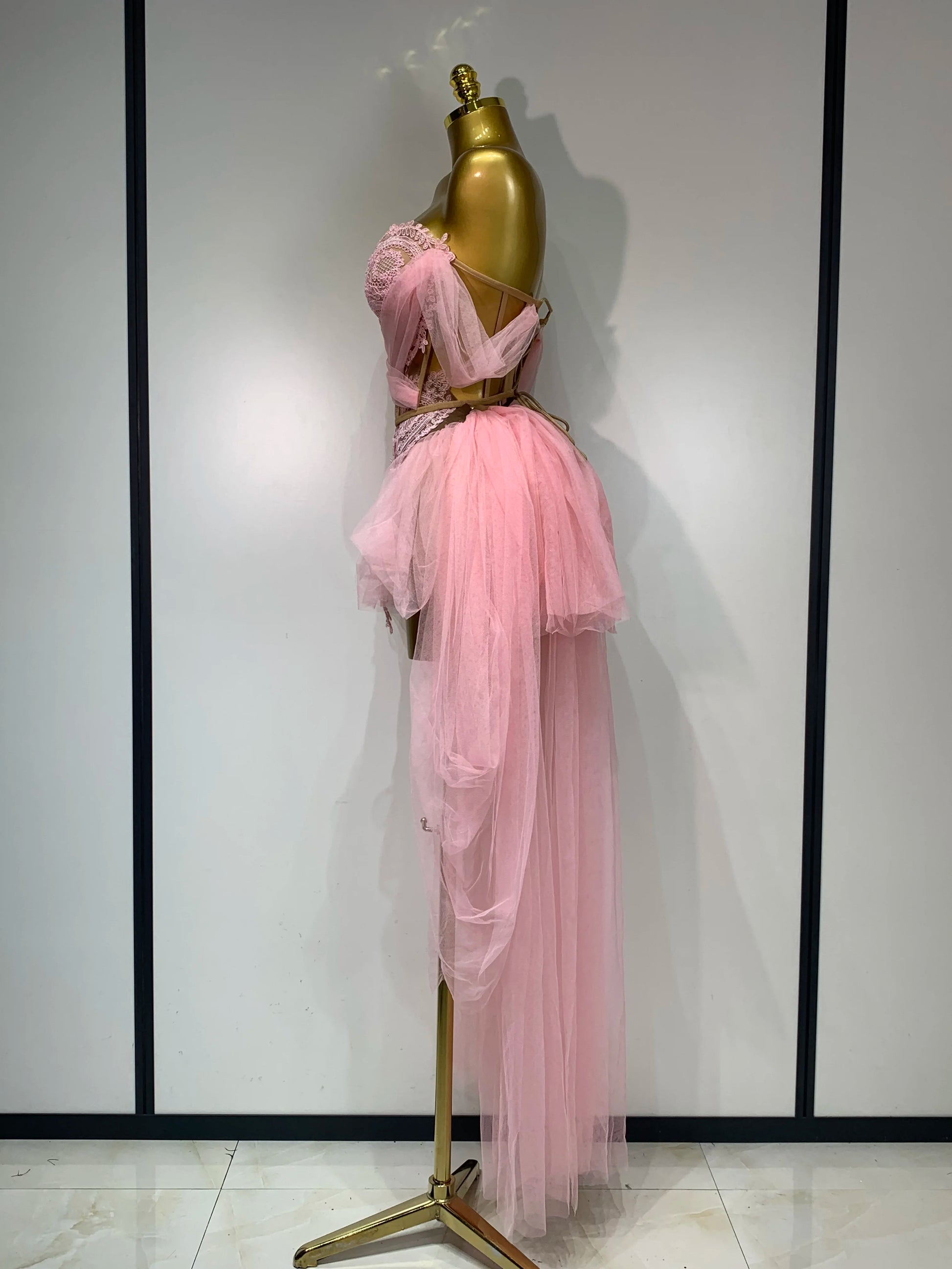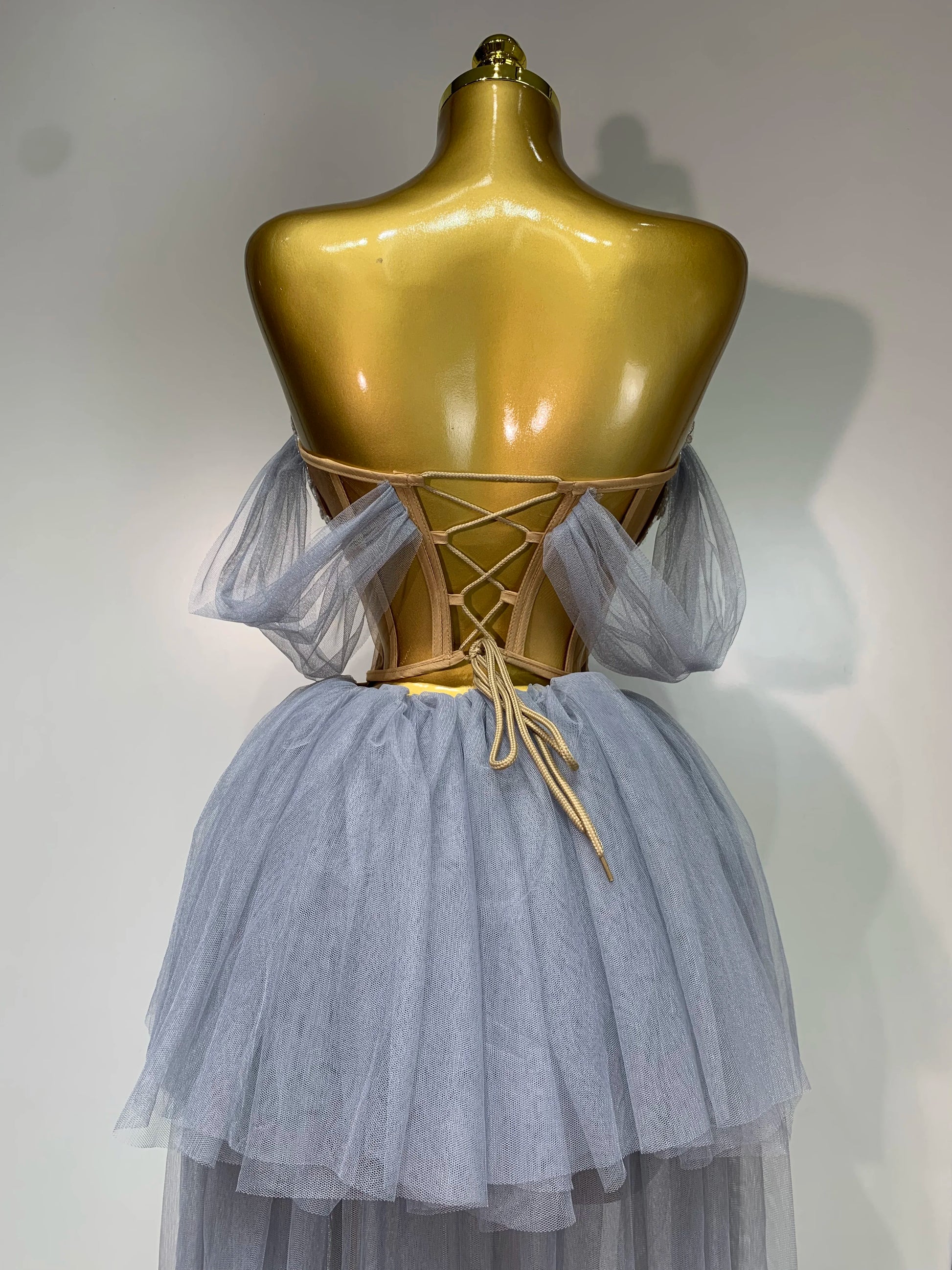2025 New Arrived Sexy Cute Mesh Tops Skirt 2 PCS Set Women Celebrate Party Birthday Nightclub Performance Stage Show Outfit