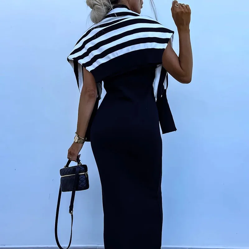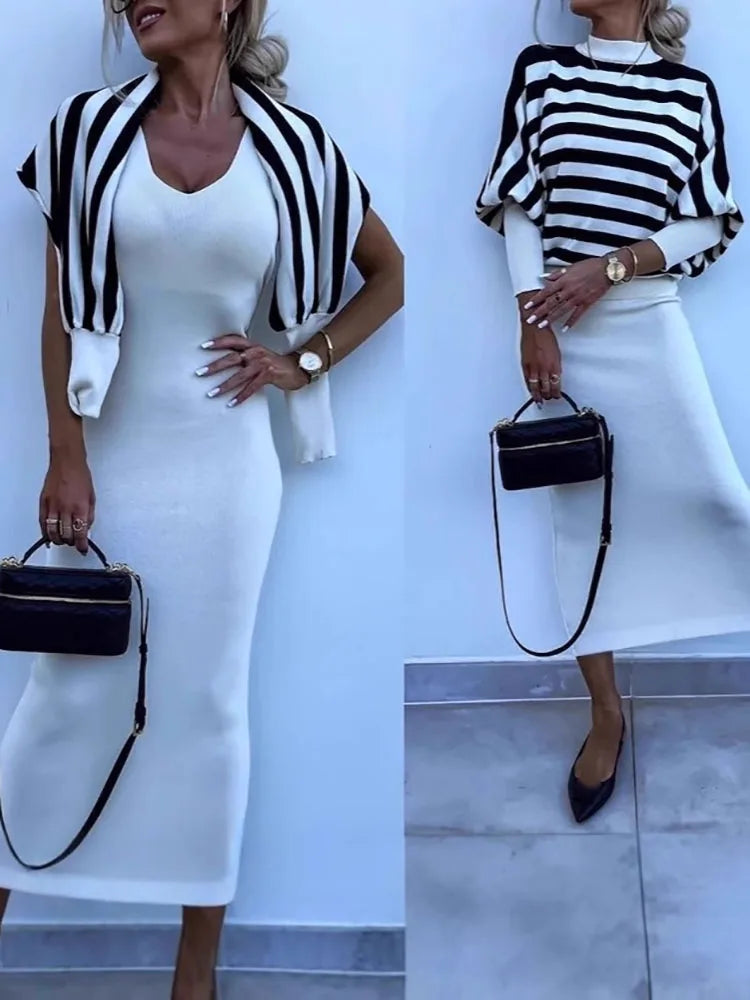 2025 New Autumn Striped Loose Pullover Women's Suit Sexy V-neck Sleeveless Dress Two-piece Set Casual Knitted Slim Fit Outfits