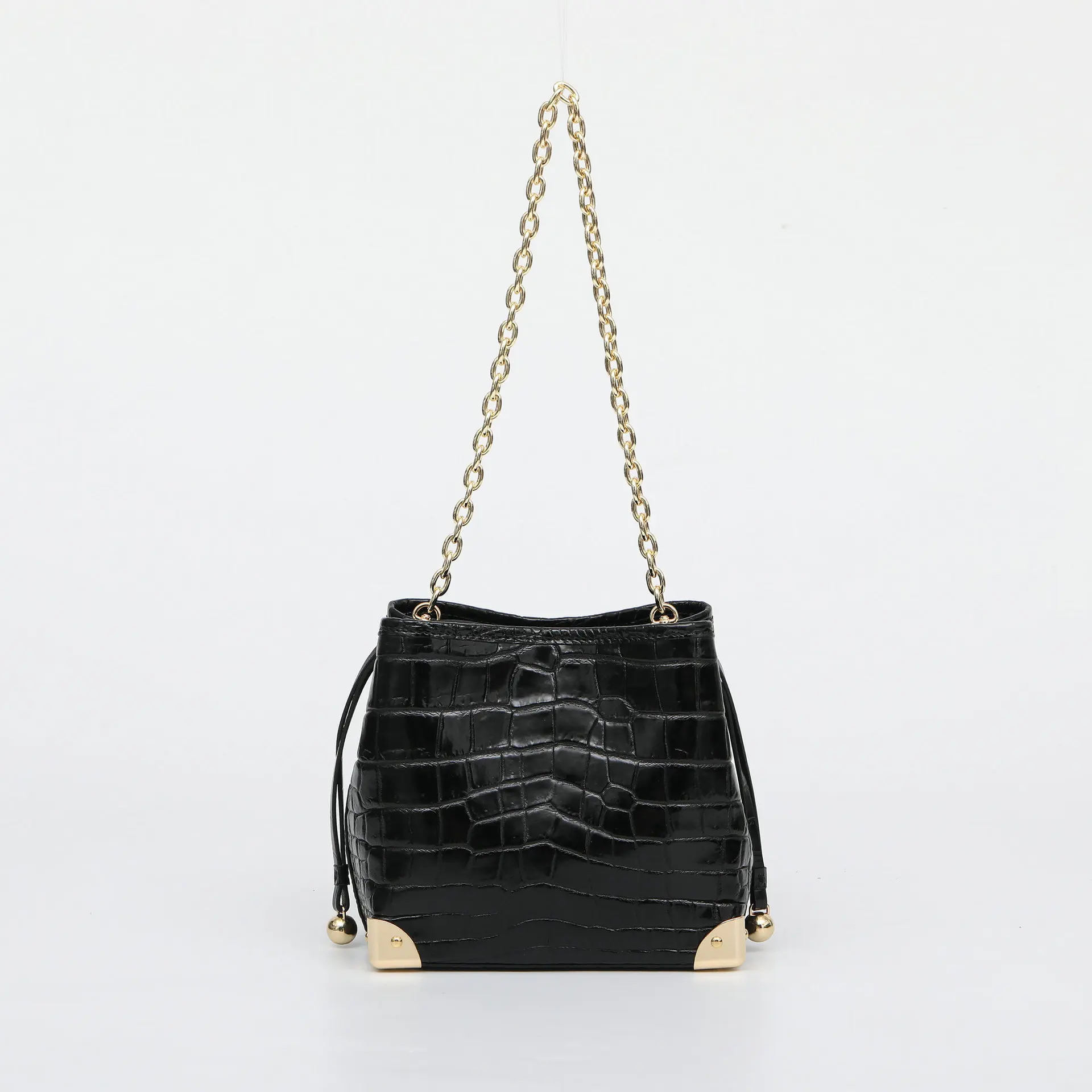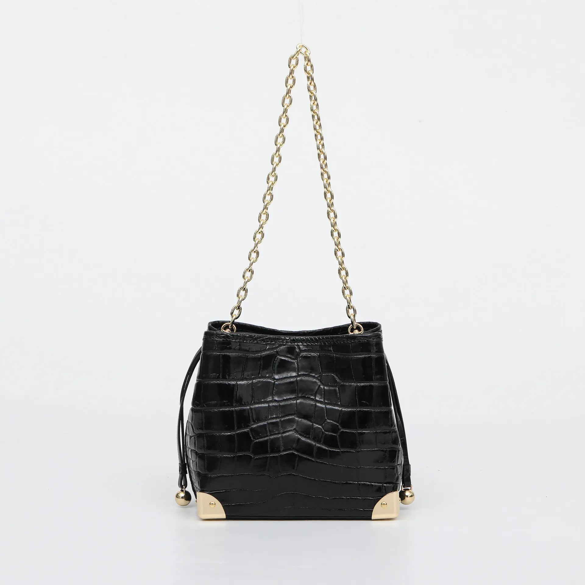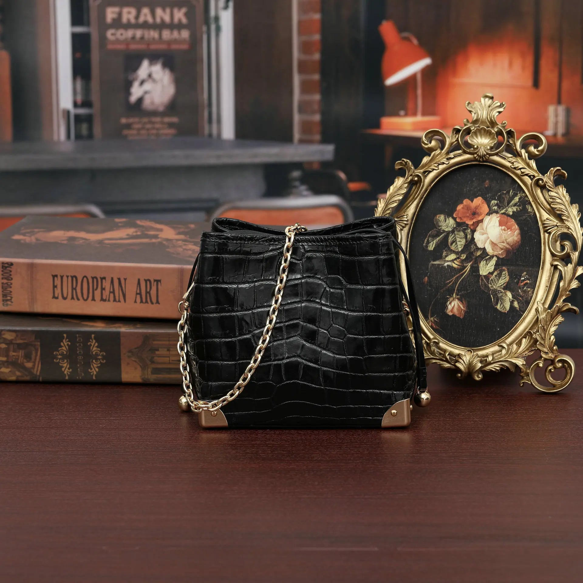 2025 New Designer Crocodile Leather Women Bucket Bag Fashion Genuine Leather Chain Lady Shoulder Bag Crossbody Bag For Woman 45