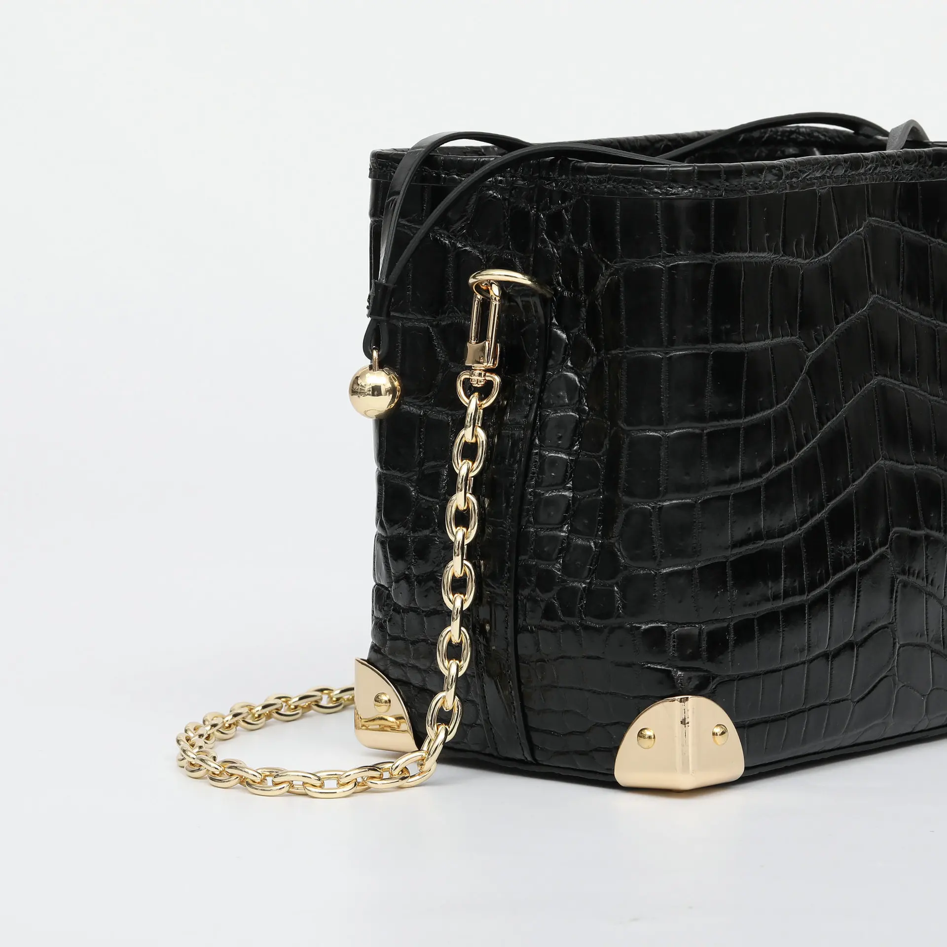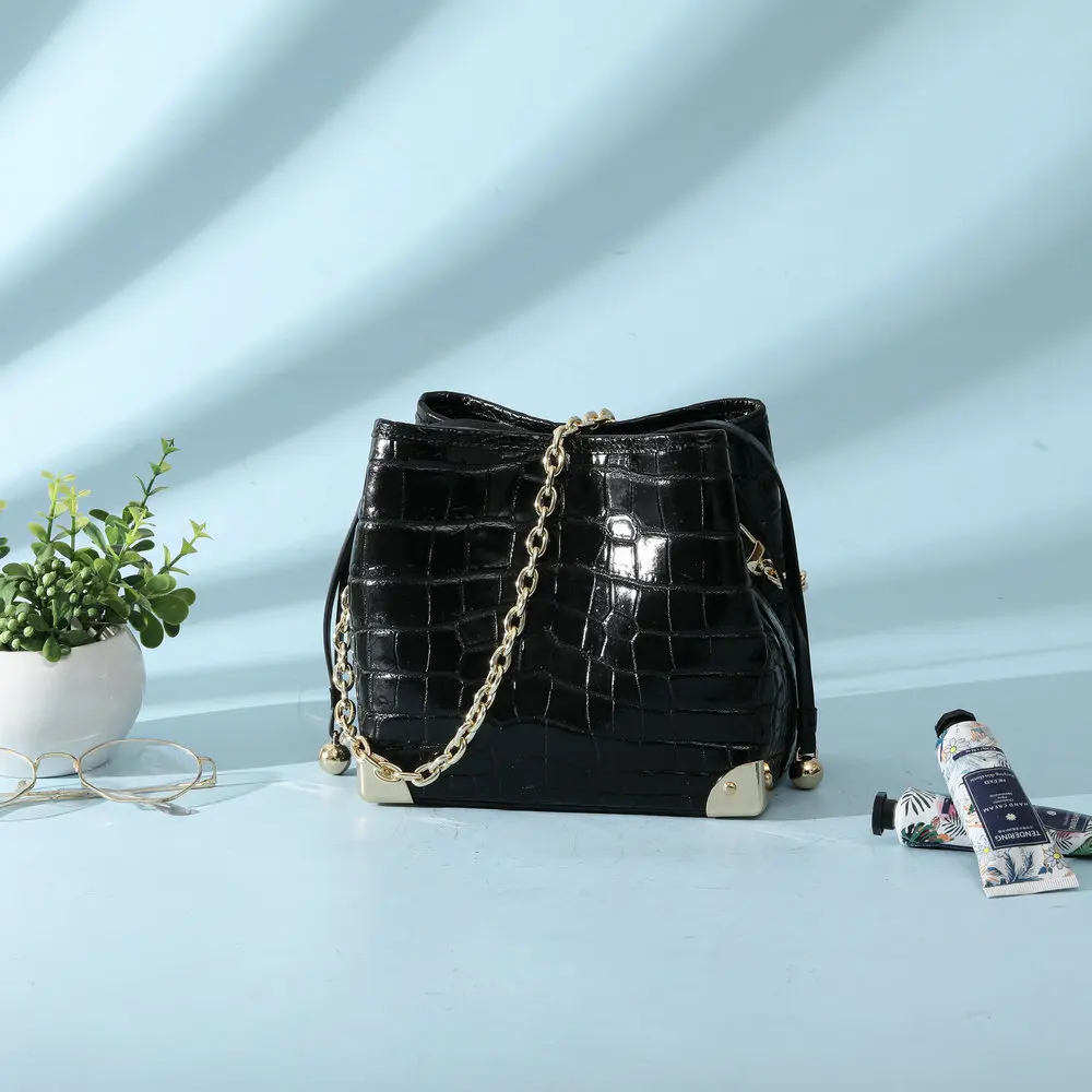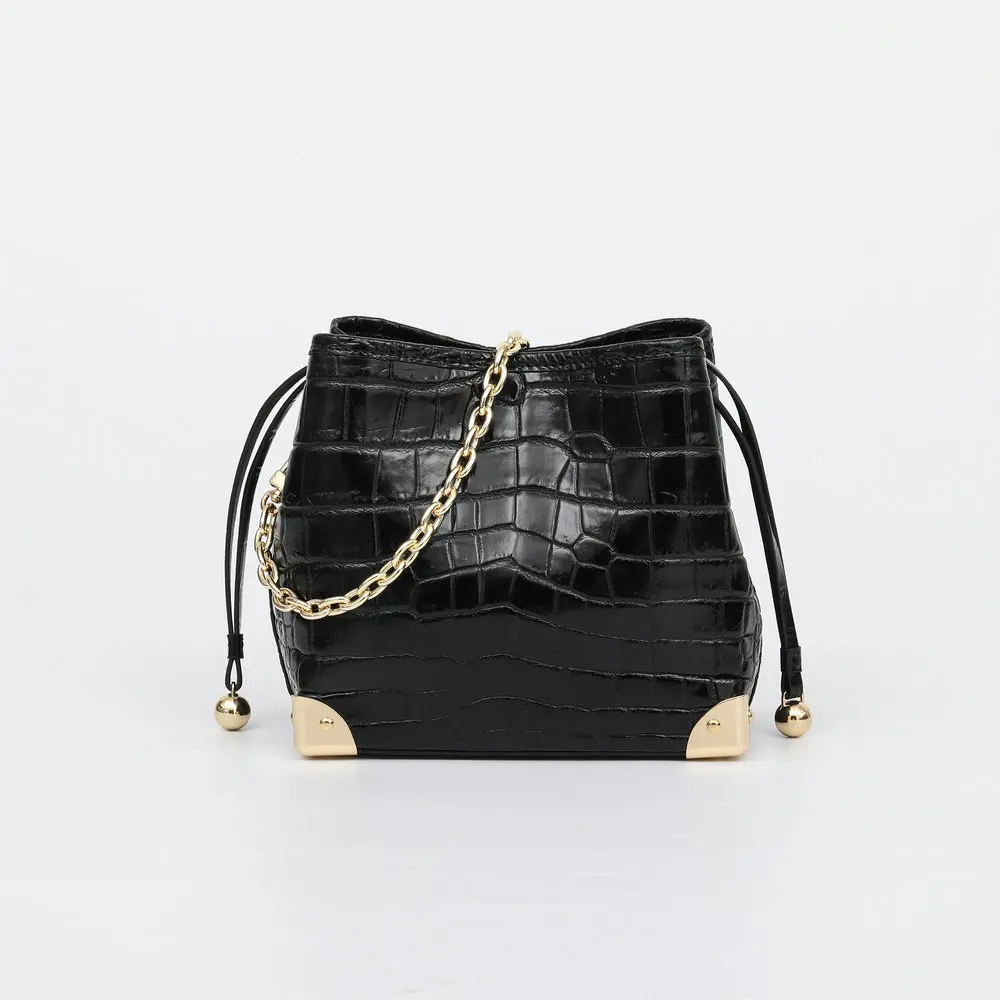 2025 New Designer Crocodile Leather Women Bucket Bag Fashion Genuine Leather Chain Lady Shoulder Bag Crossbody Bag For Woman 45