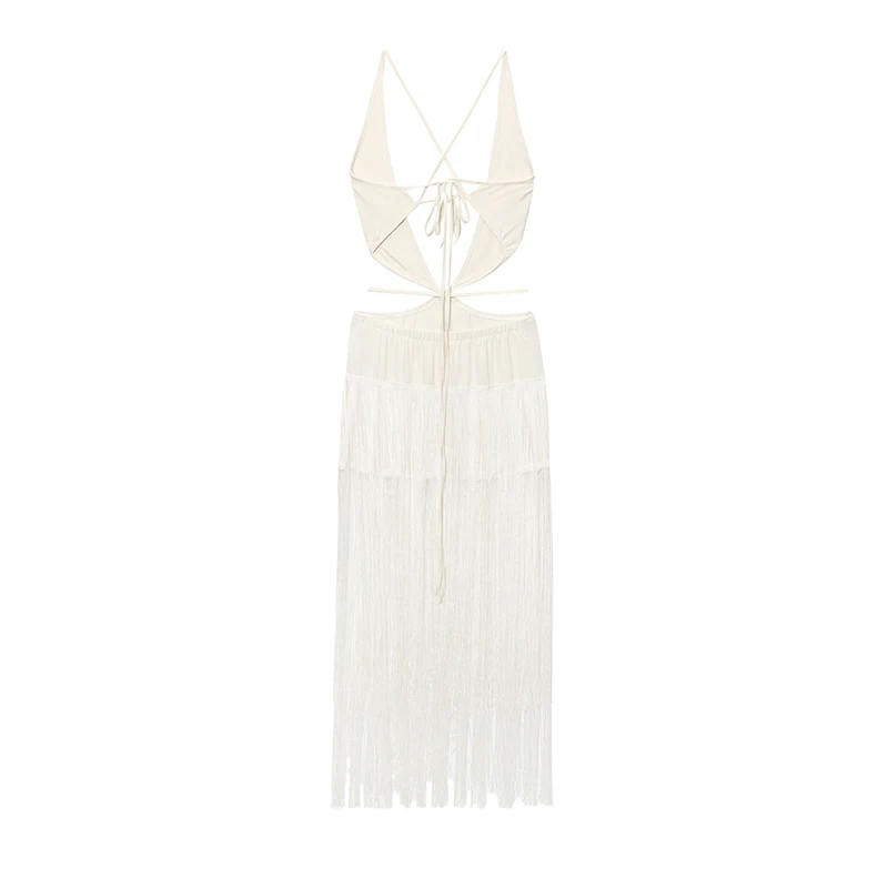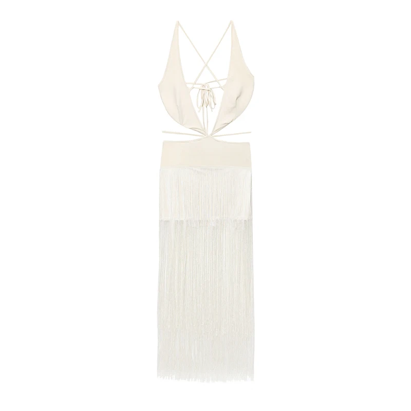 2025 New Tassel Sleeveless Sling Dress Sexy Deep V Low Cut Beach Long Dress Chic Fashion Women's Summer Holiday Dresses Vestidos