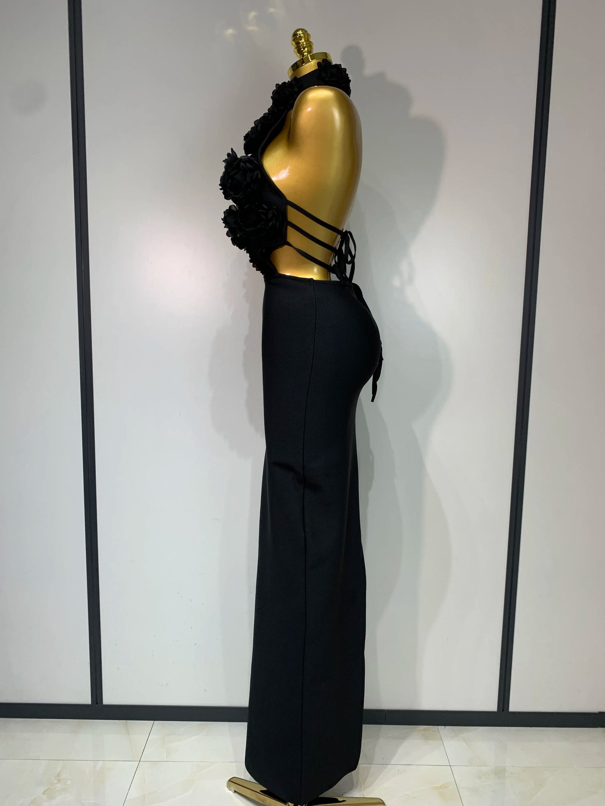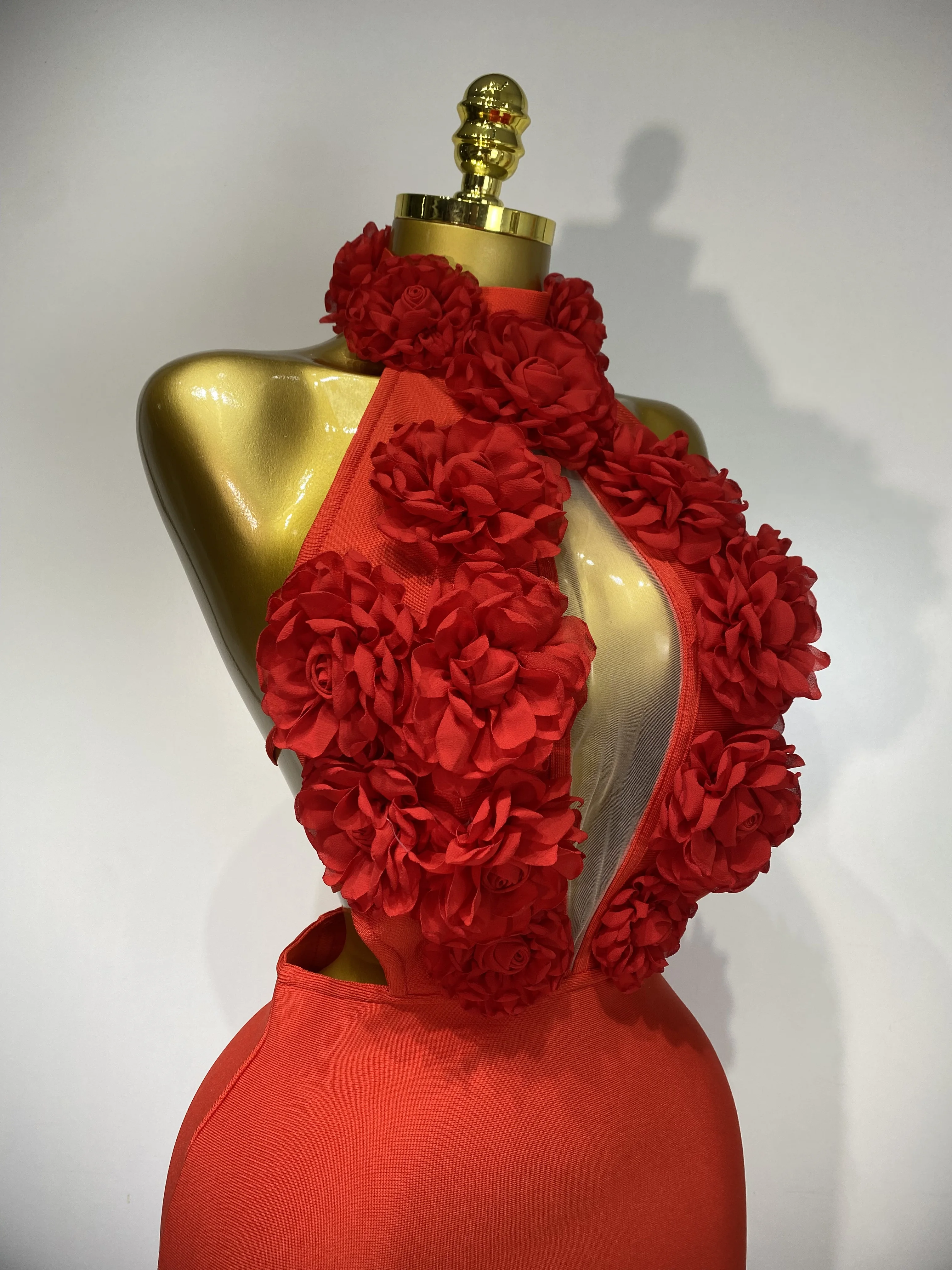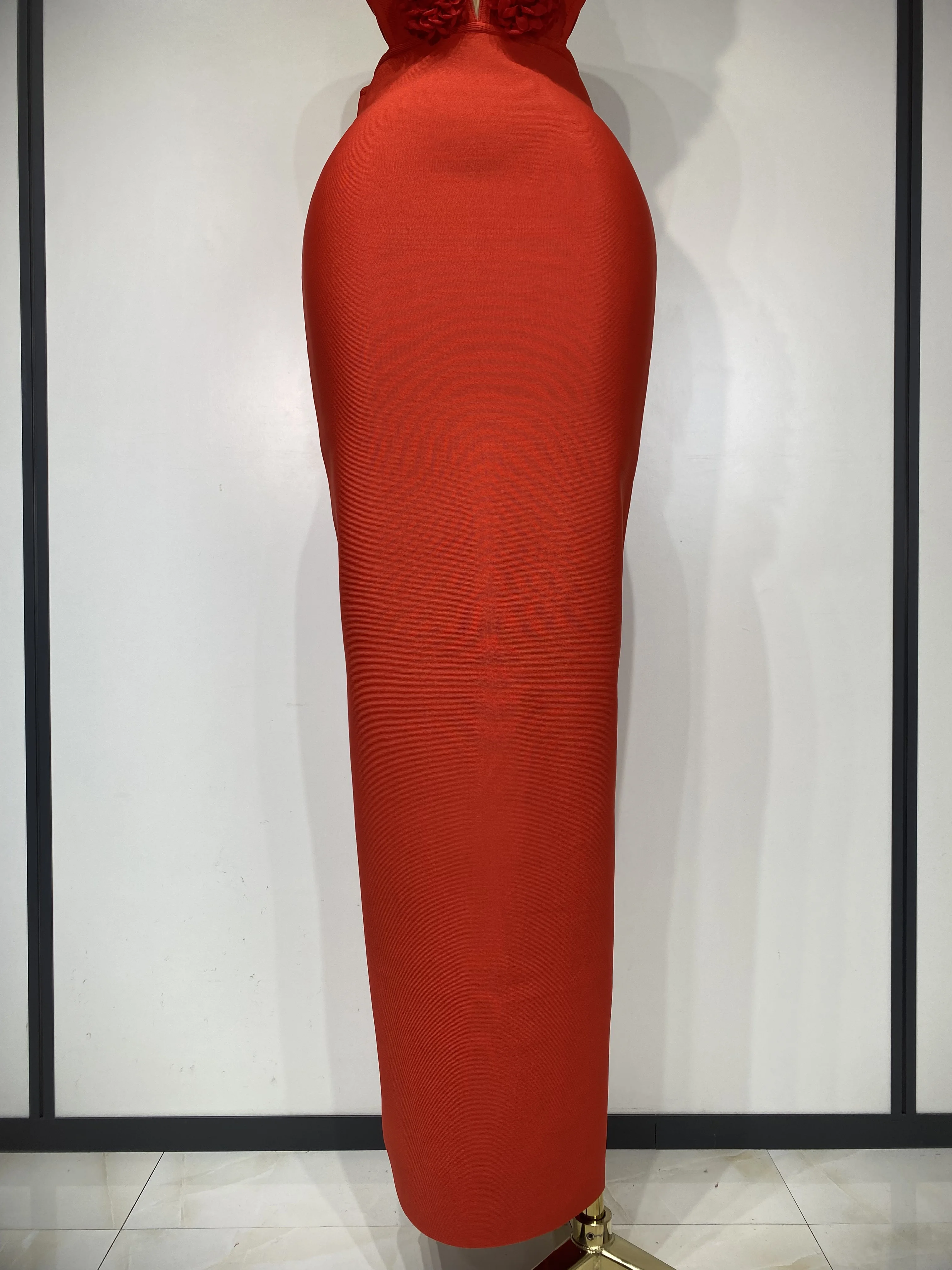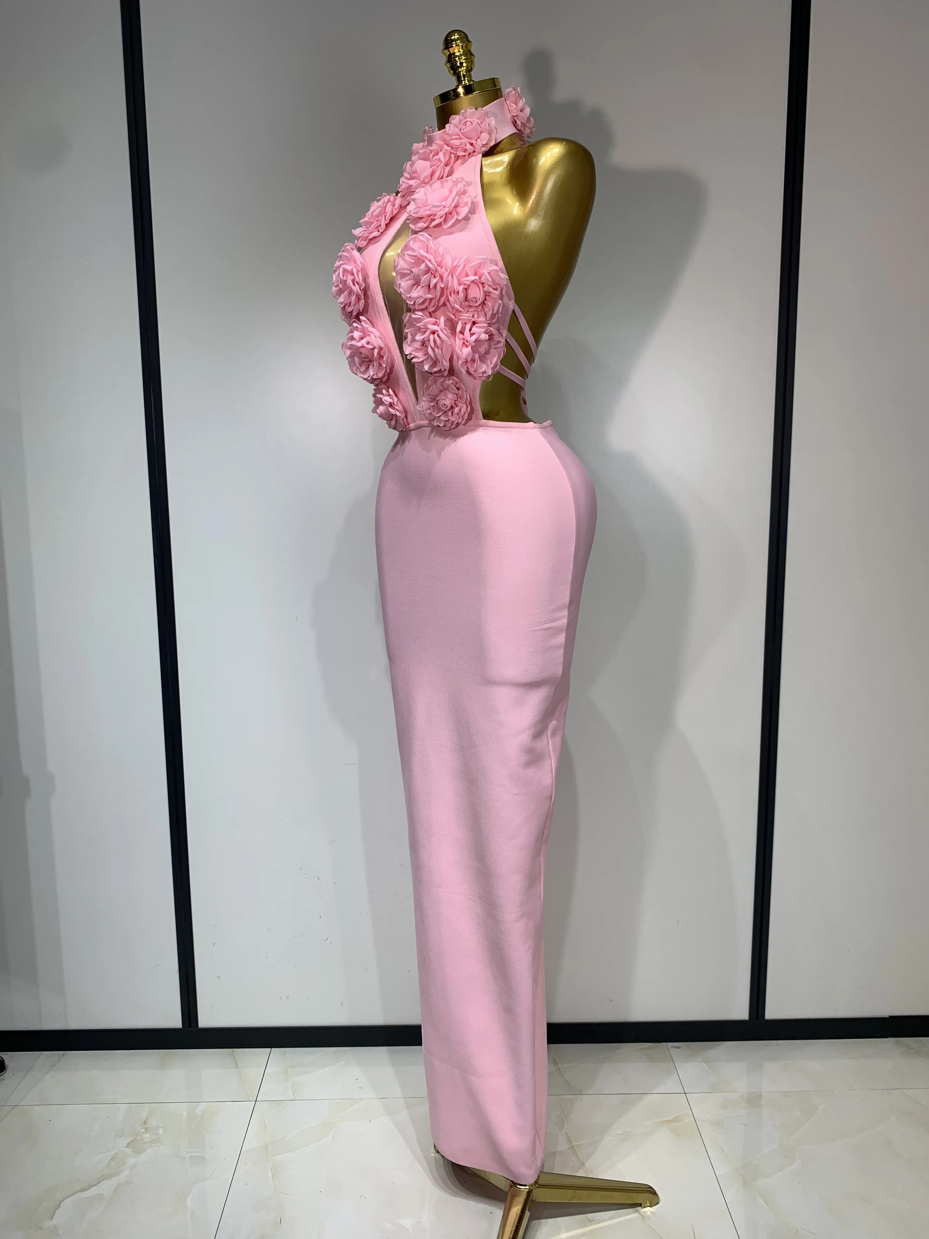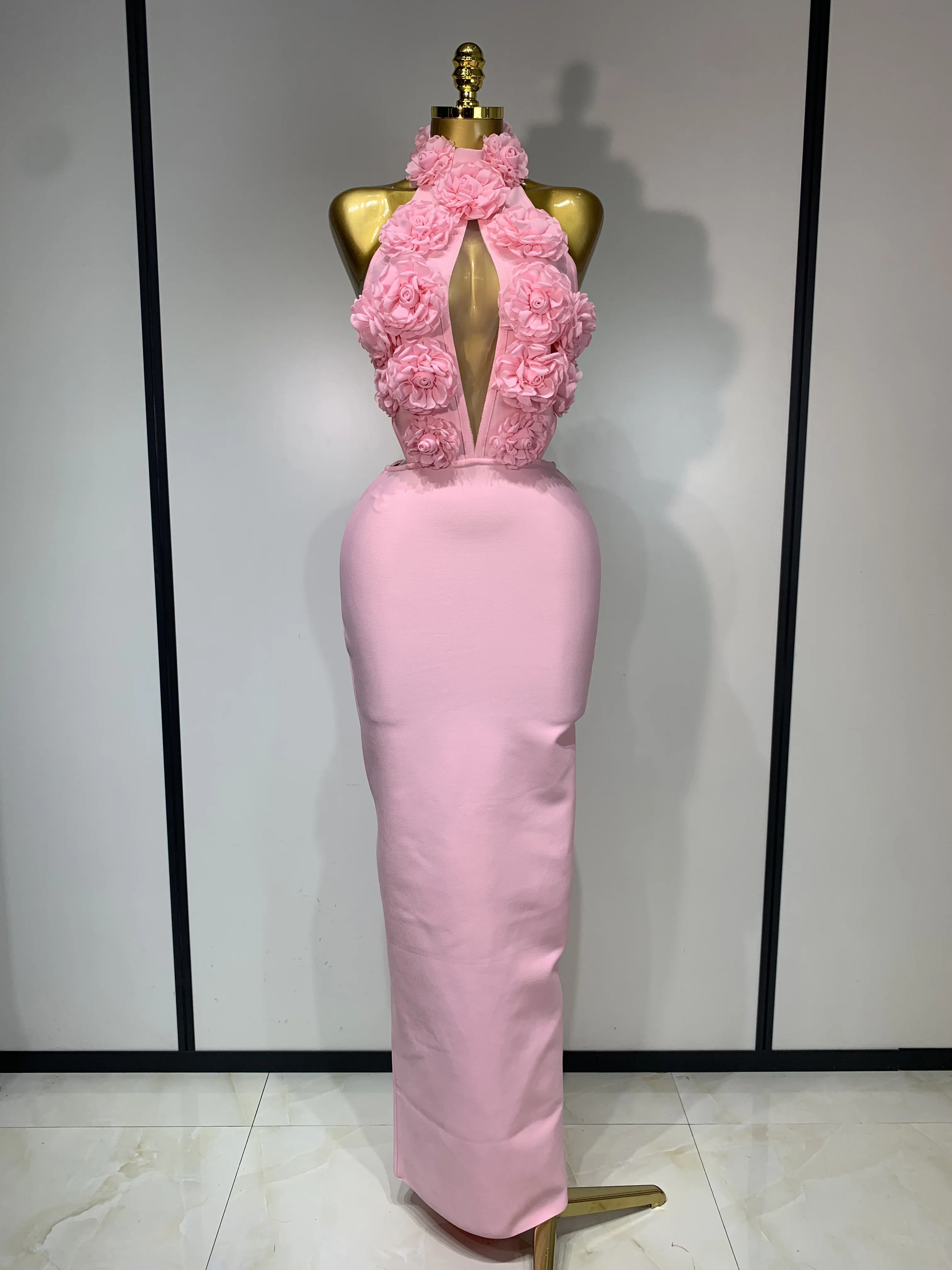 2025 New Women Sexy Halter Hollow Out Flowers Bodycon Bandage Dress Red Backless Elegant Party Luxury Birthday Wedding Dresses
