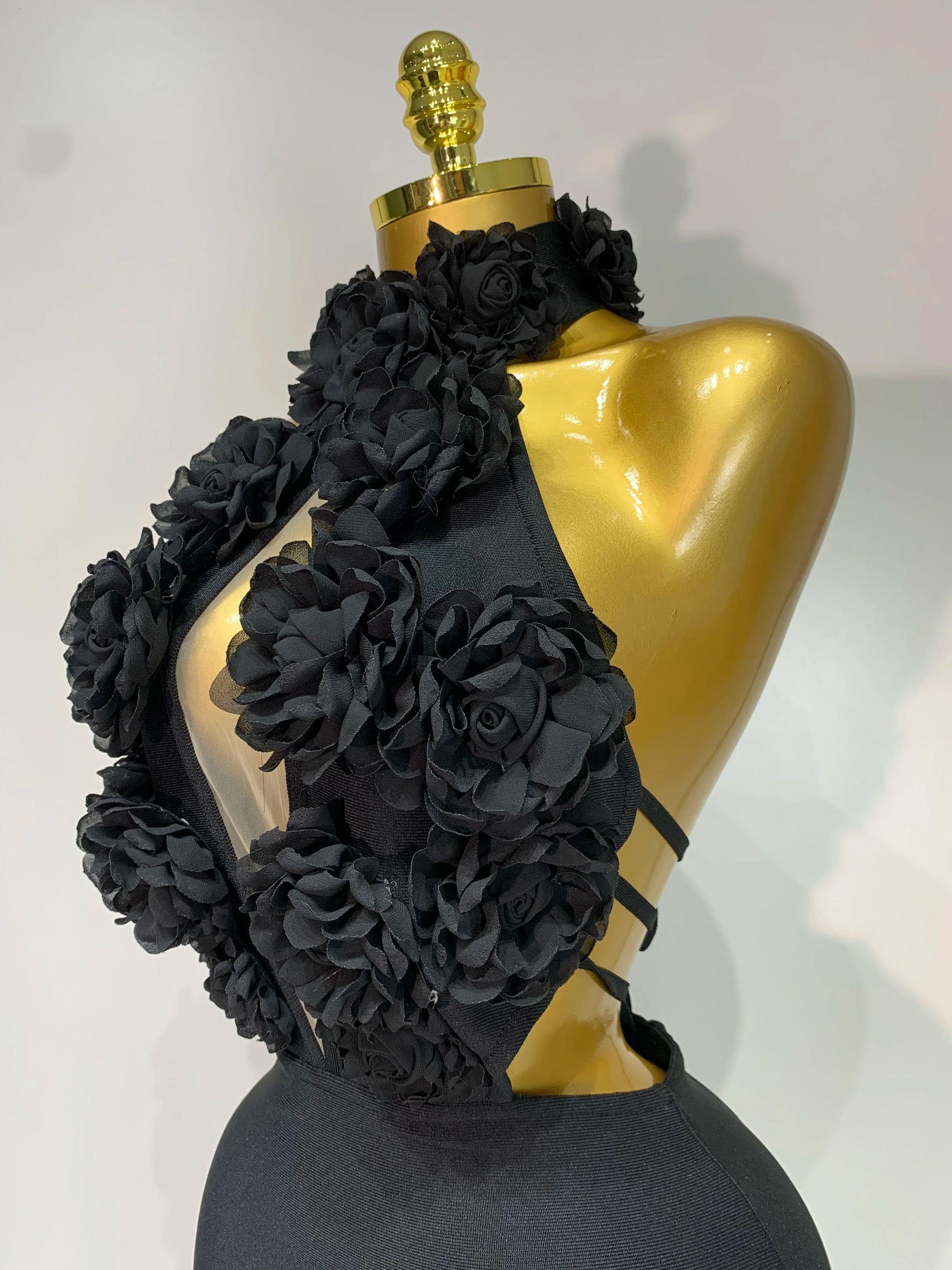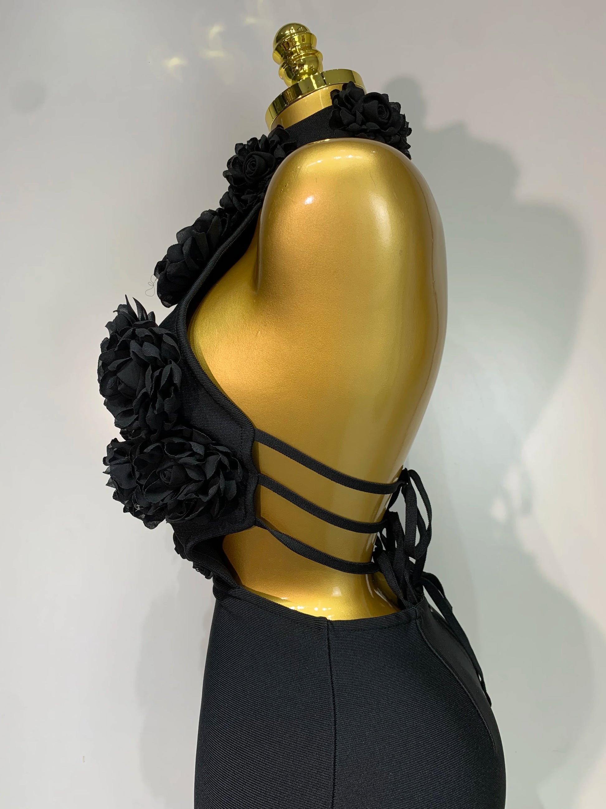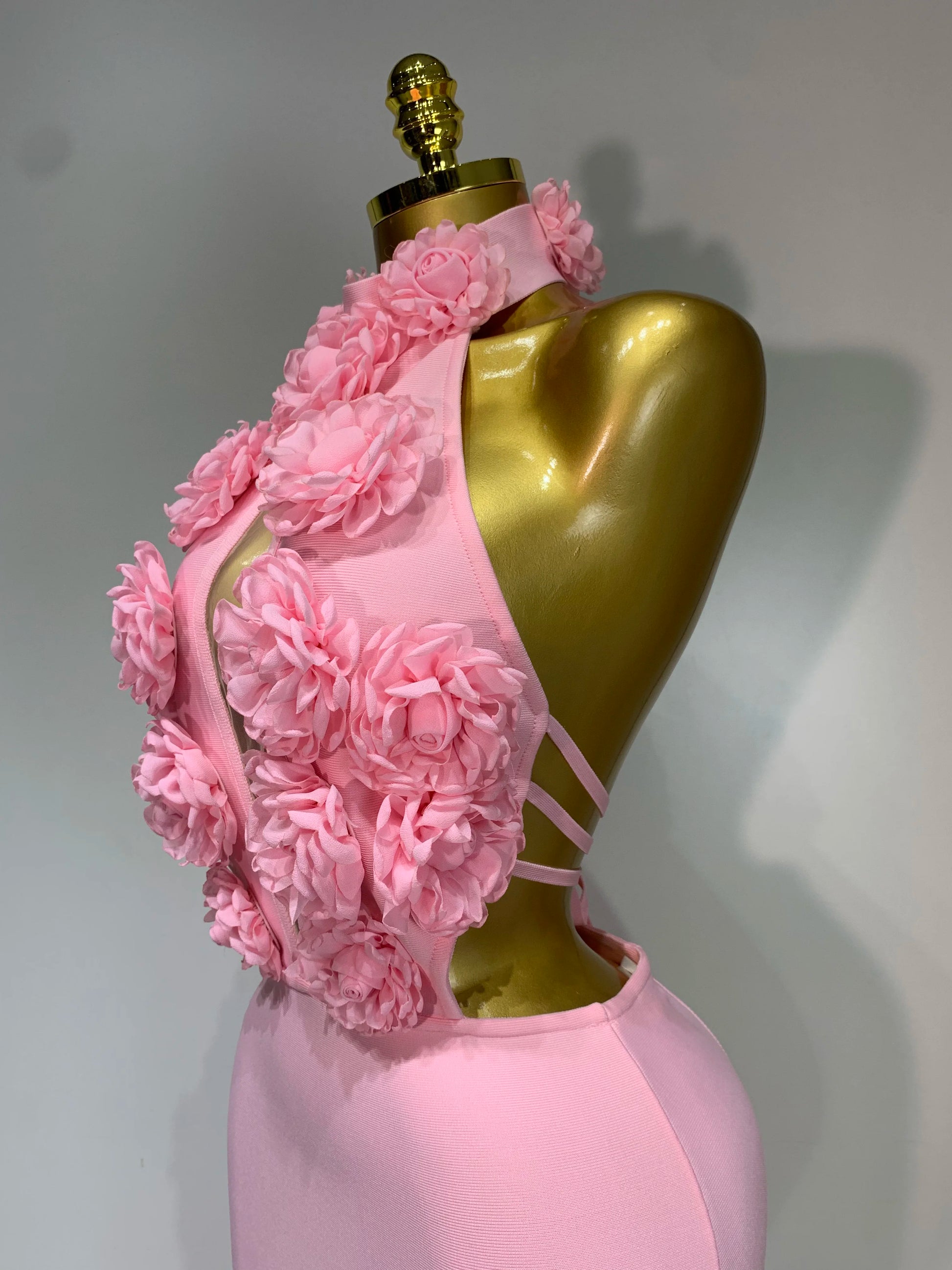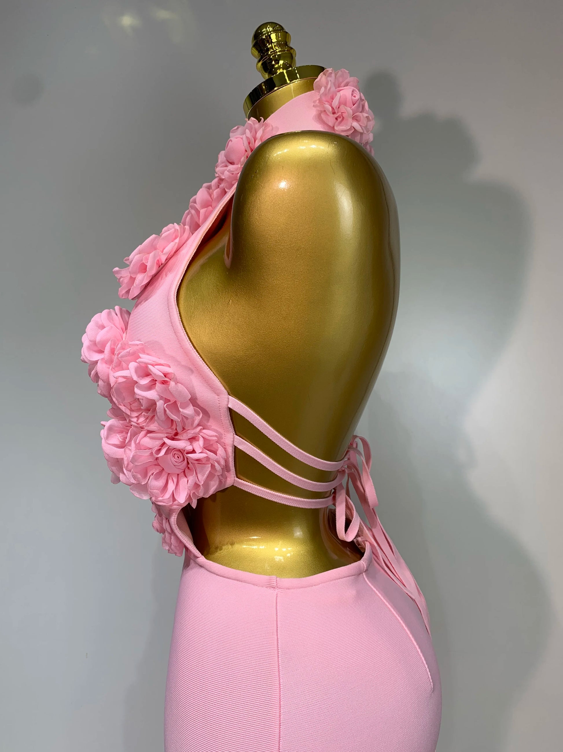 2025 New Women Sexy Halter Hollow Out Flowers Bodycon Bandage Dress Red Backless Elegant Party Luxury Birthday Wedding Dresses