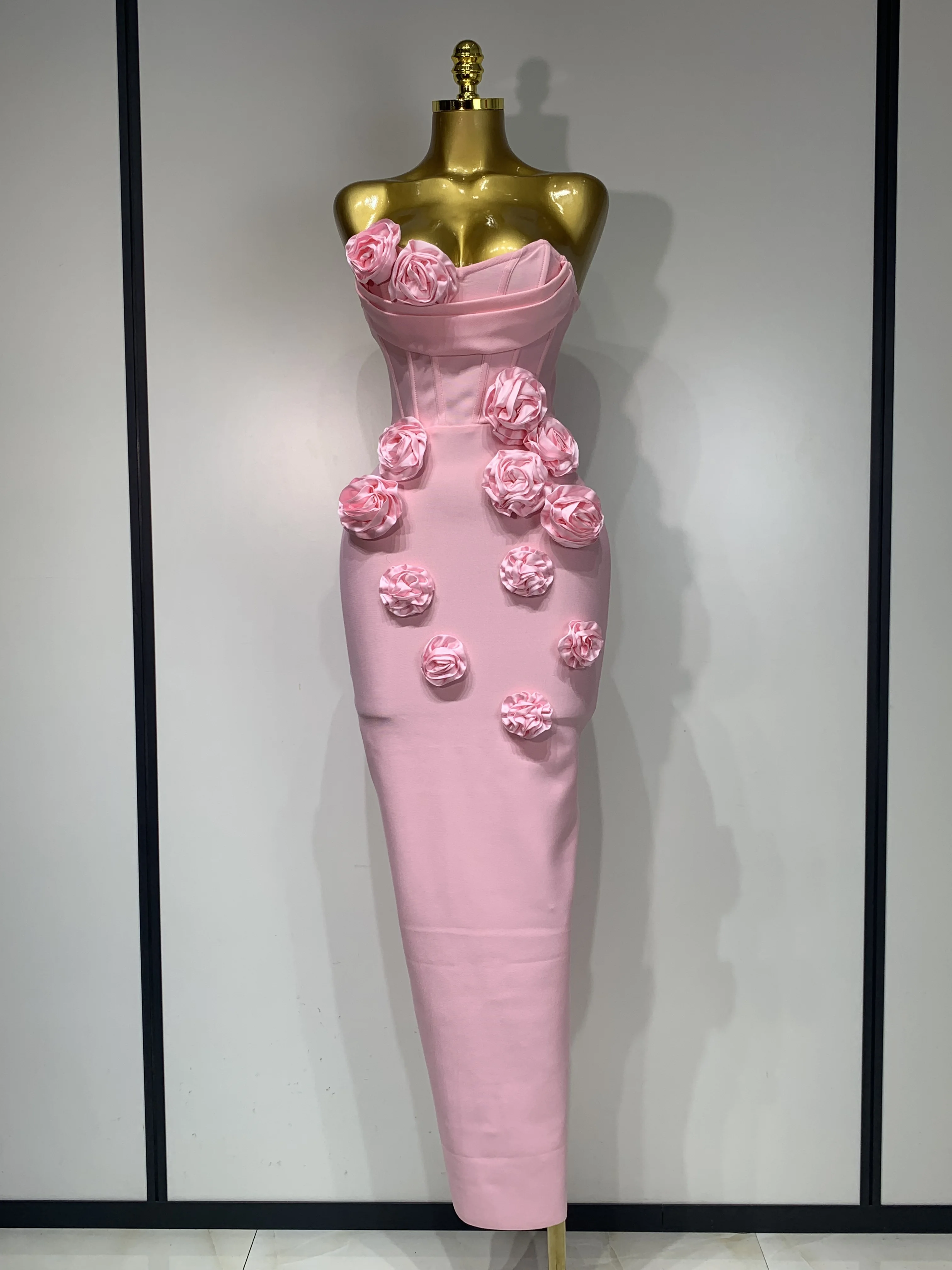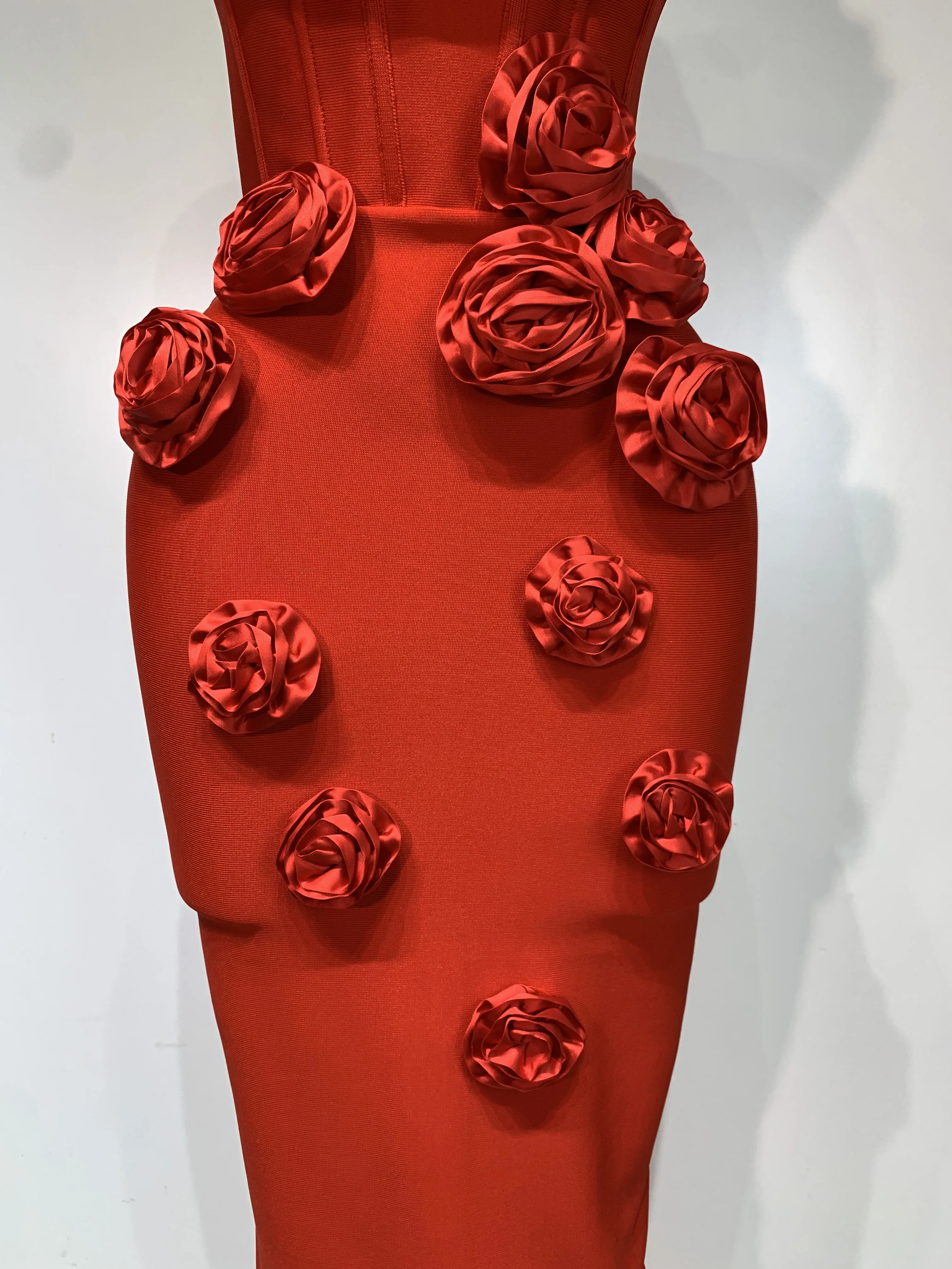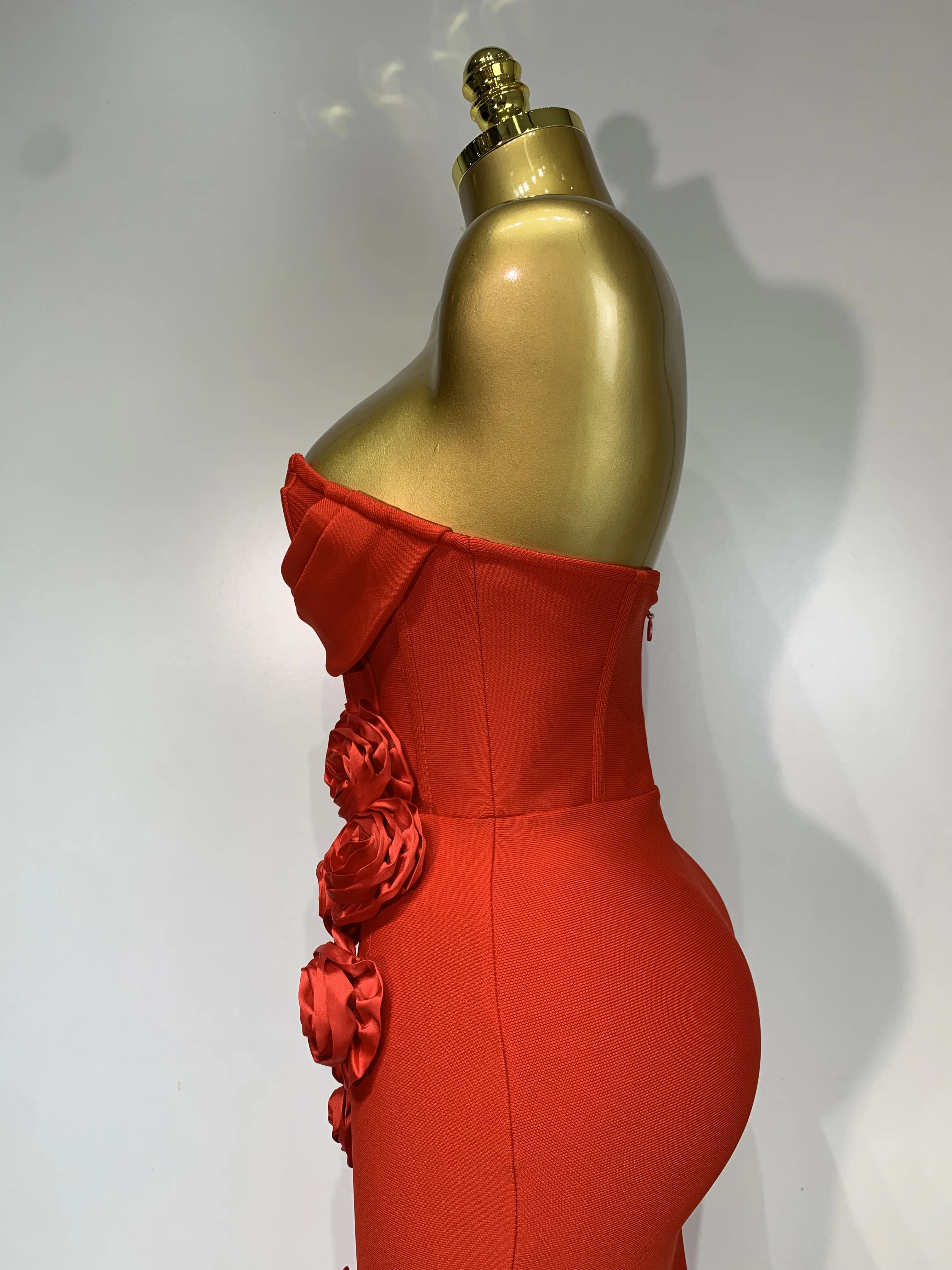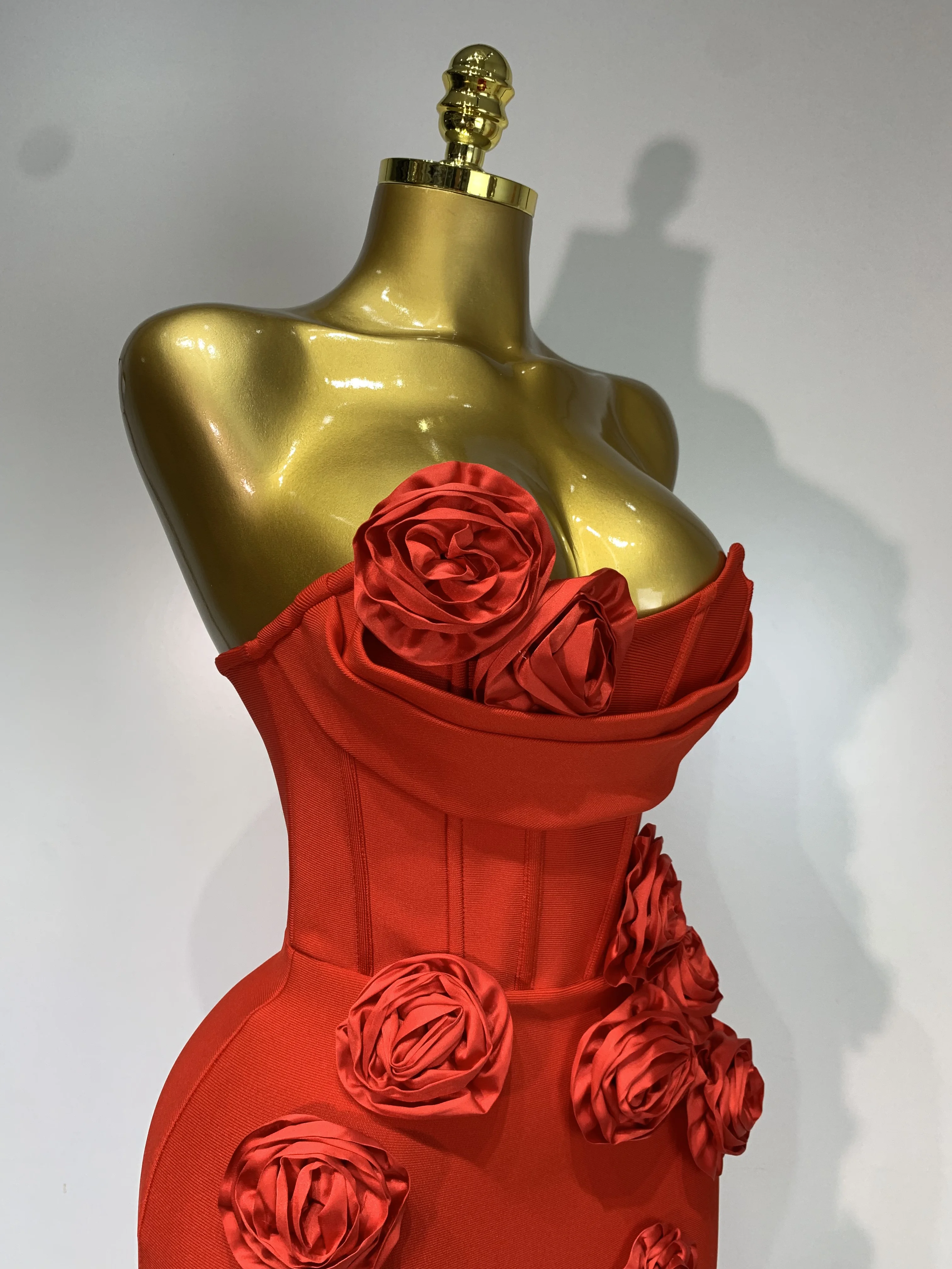 2025 Newest Women Sexy Strapless Backless Red Flower Midi Bandage Dress Celebirty Elegant Evening Club Party Birthday Dresses