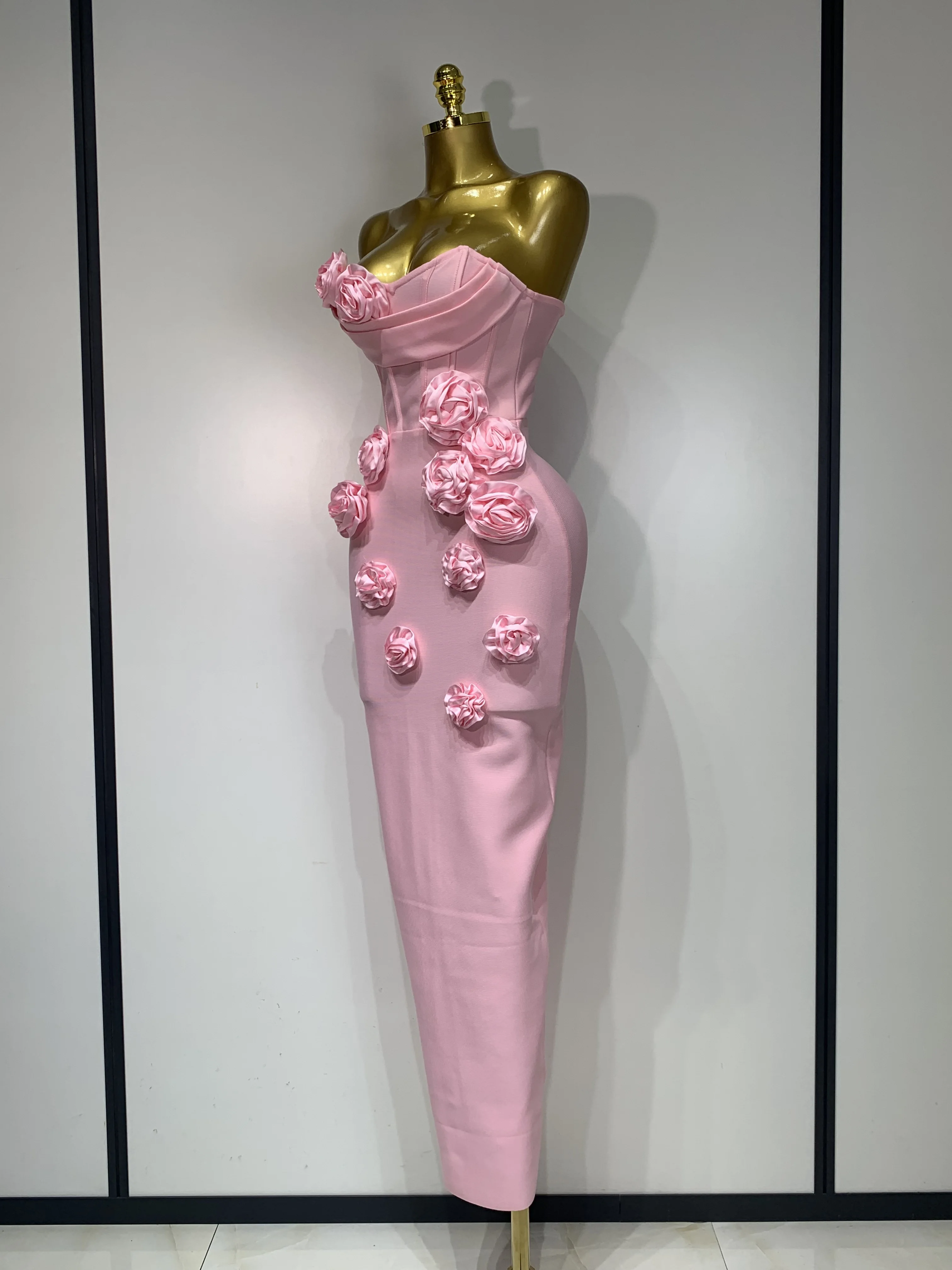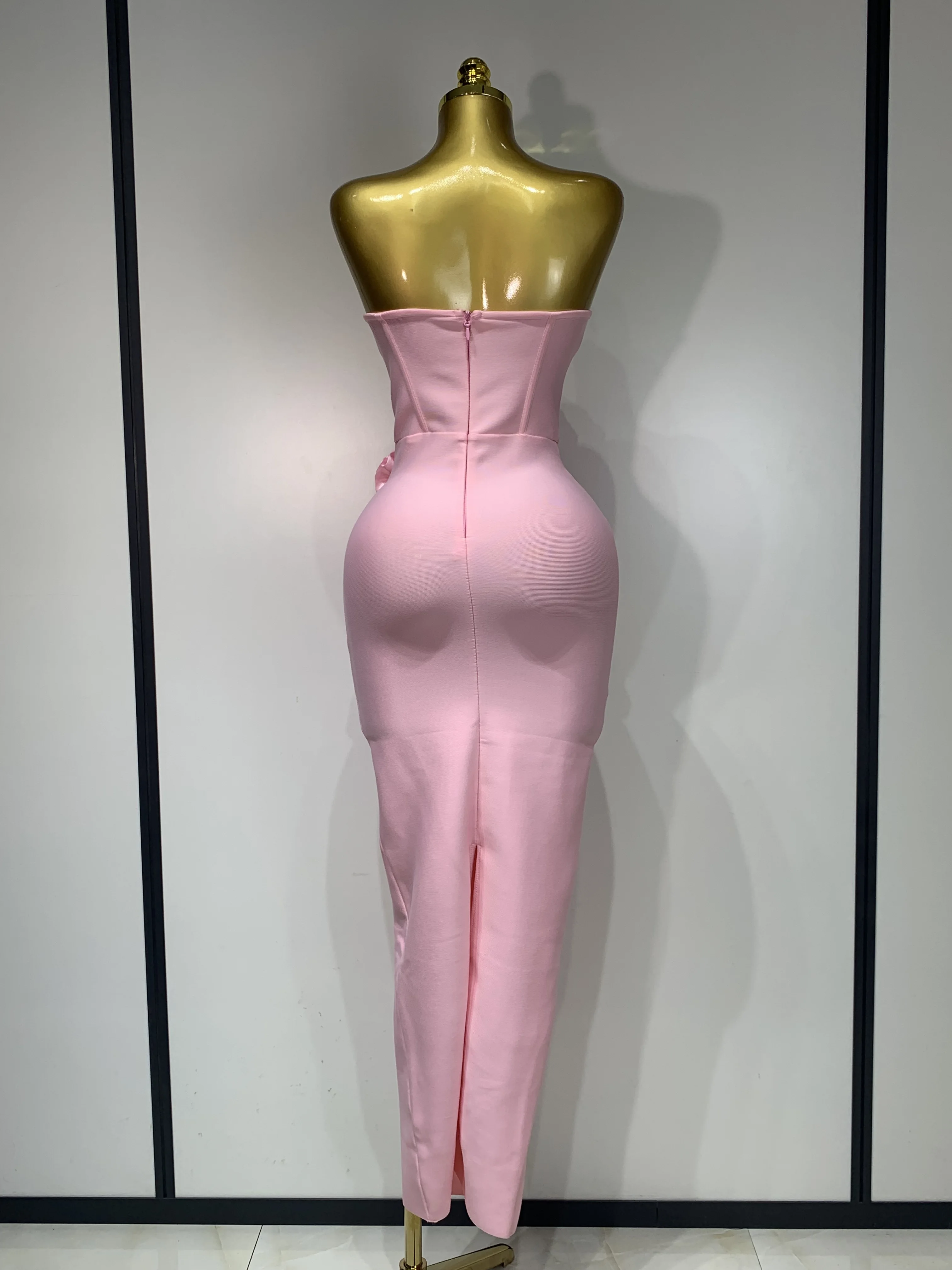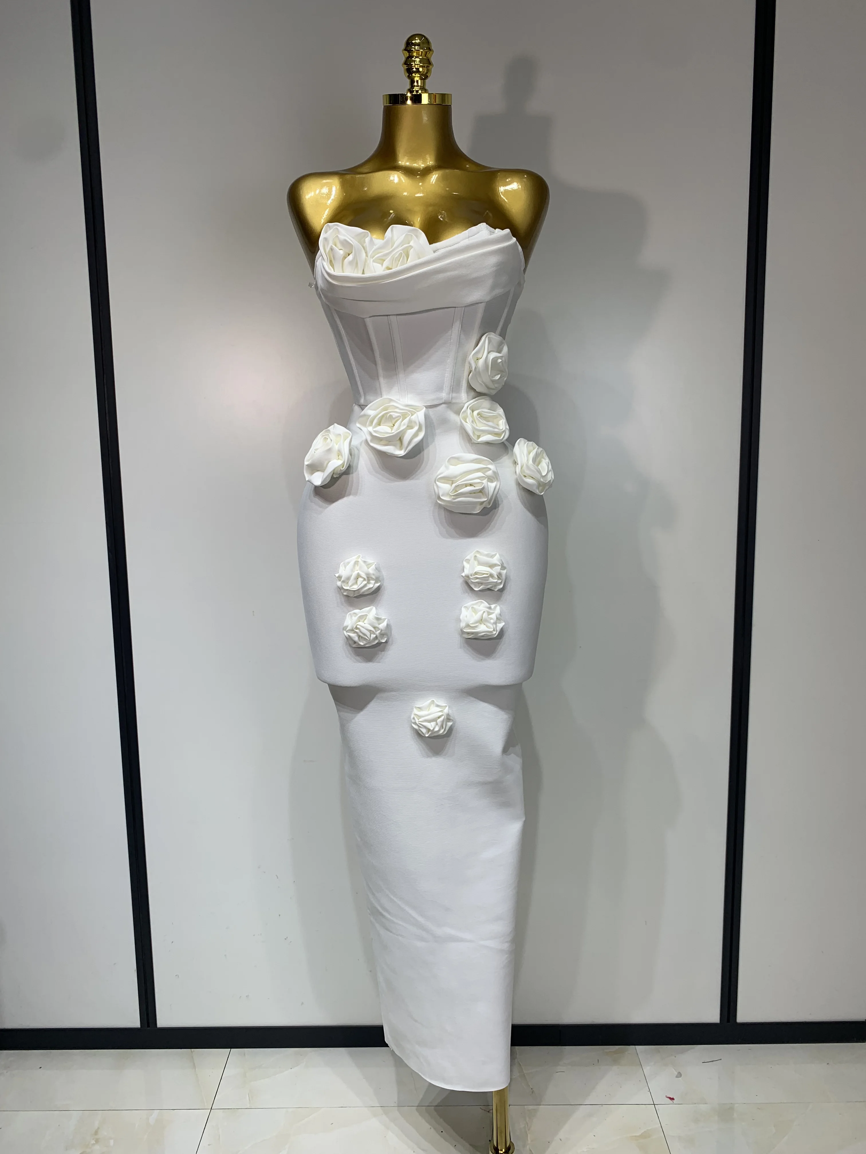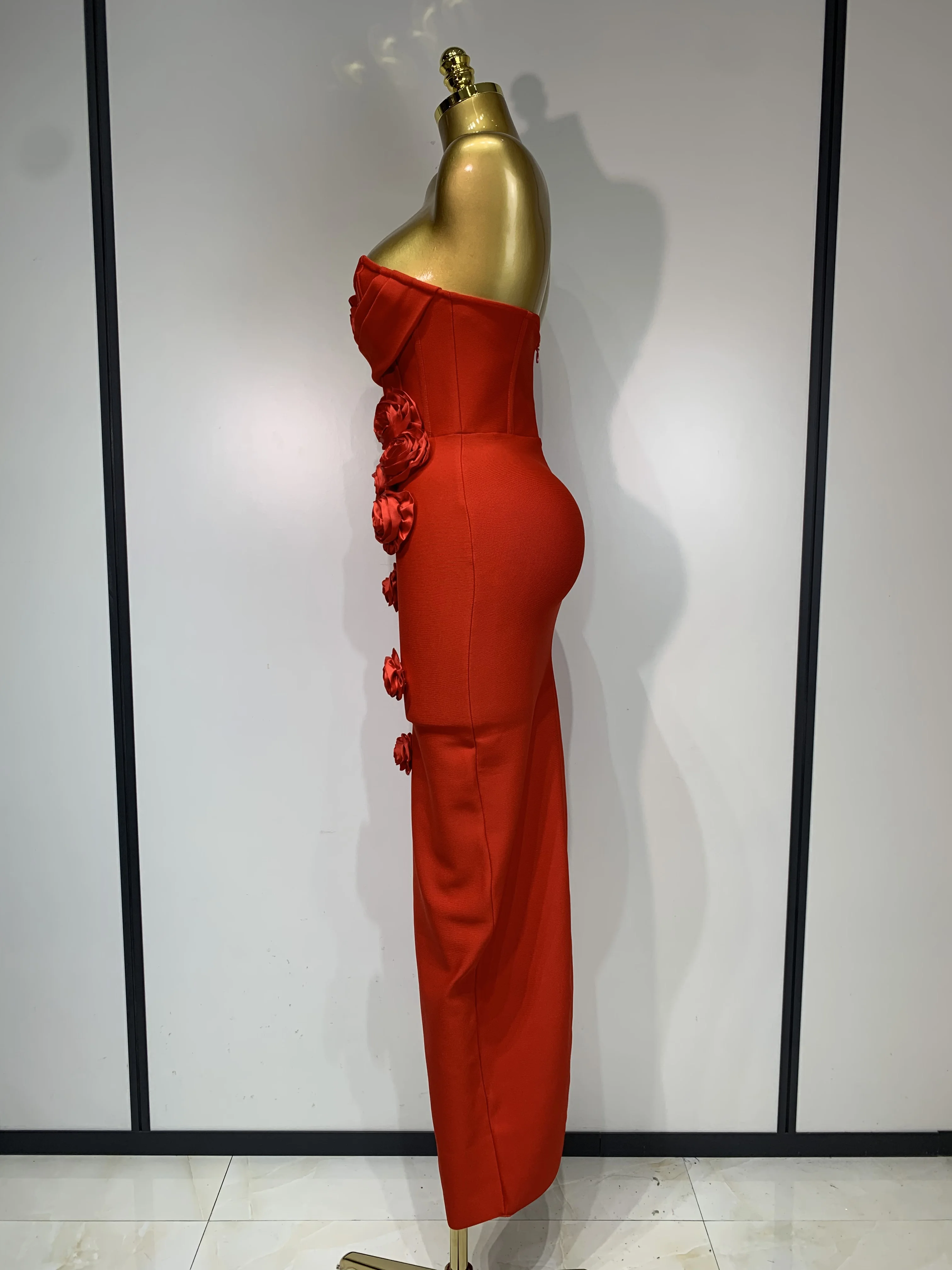 2025 Newest Women Sexy Strapless Backless Red Flower Midi Bandage Dress Celebirty Elegant Evening Club Party Birthday Dresses