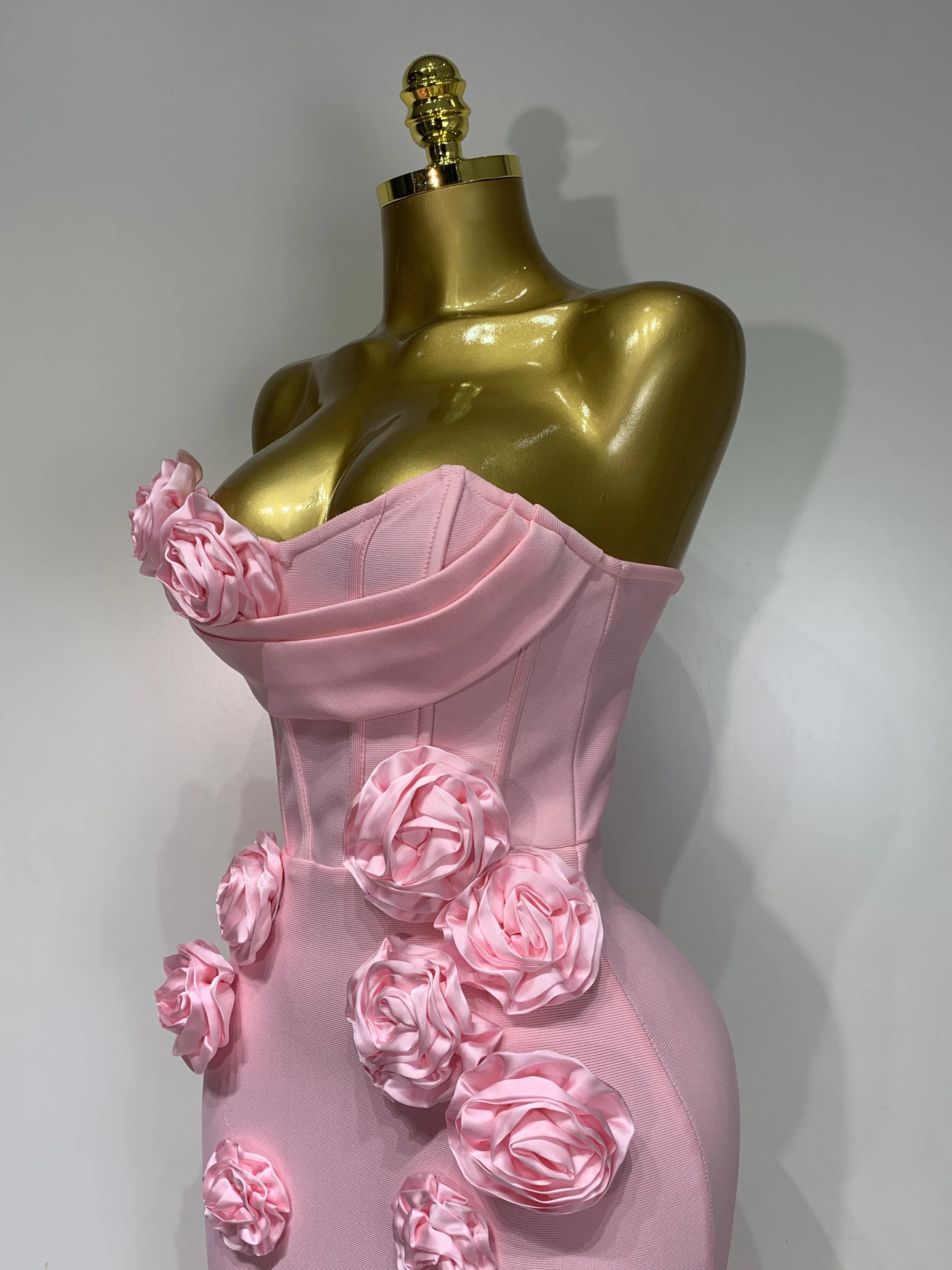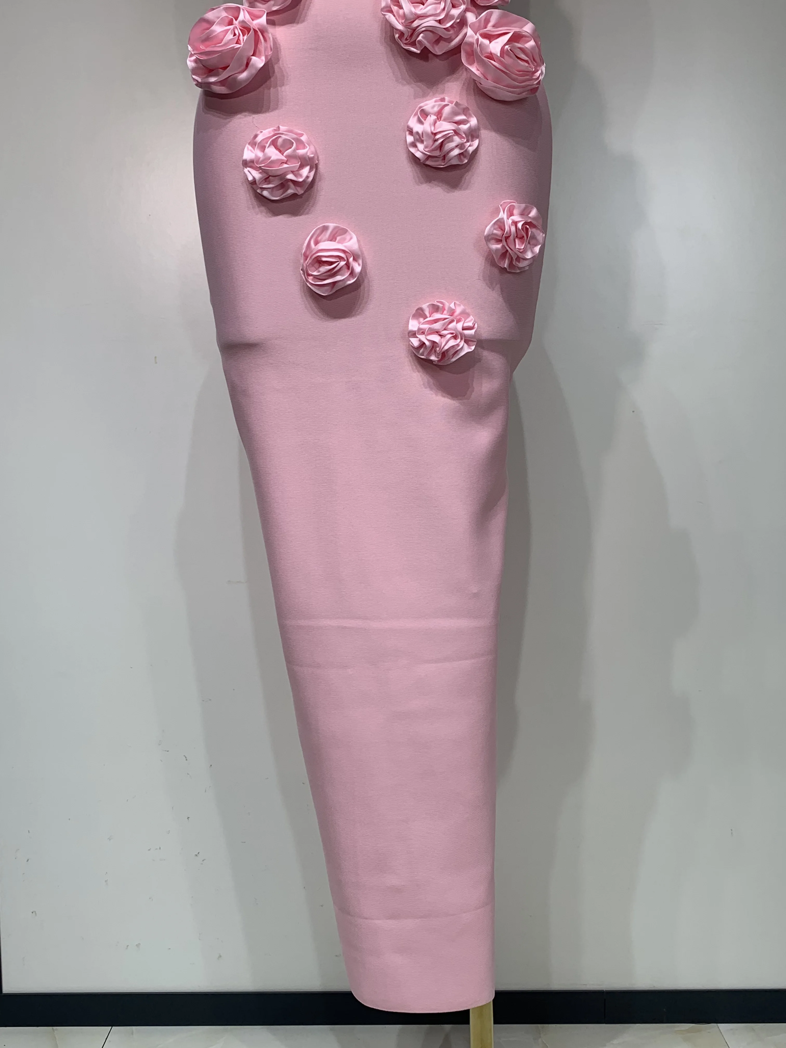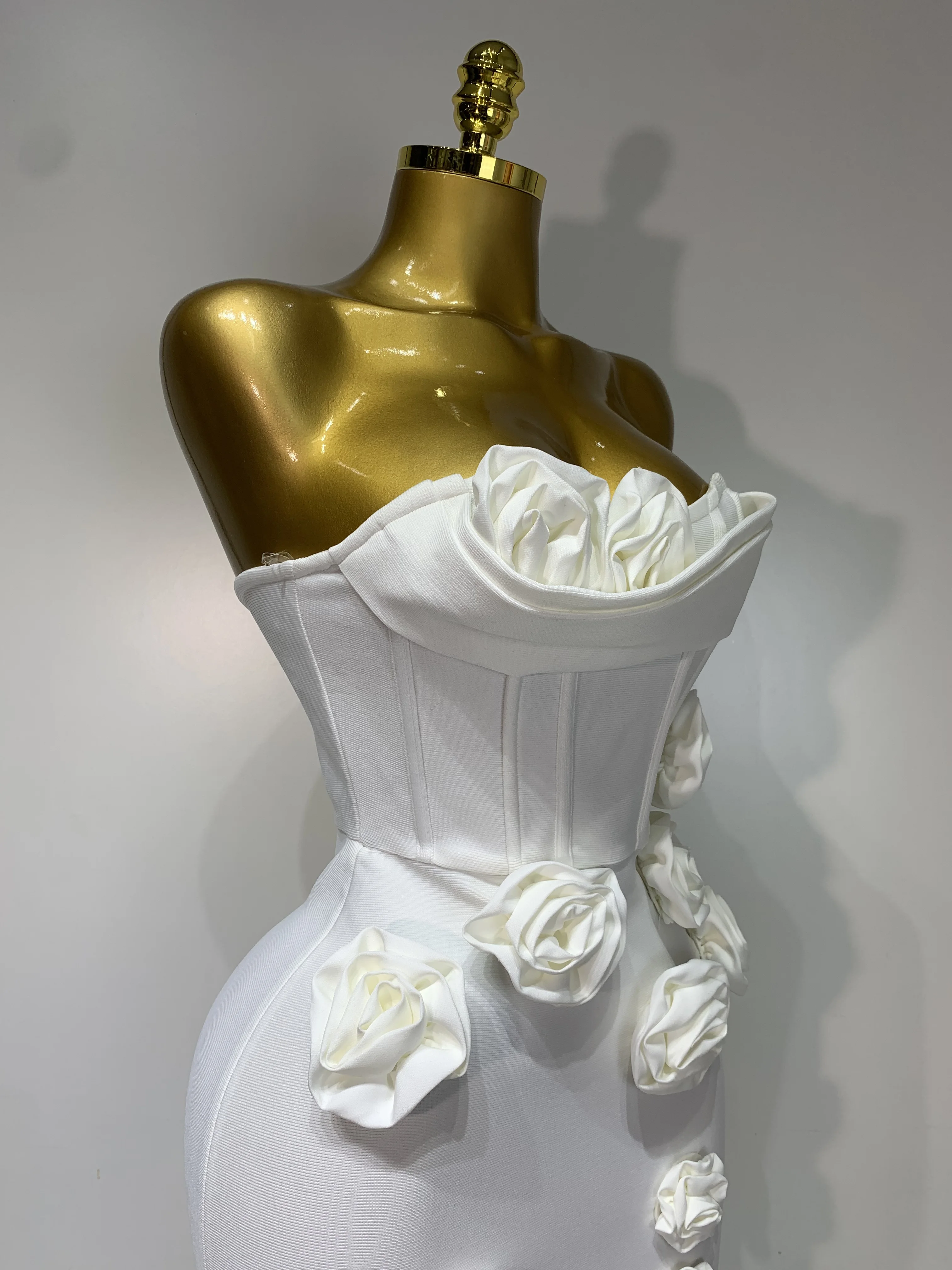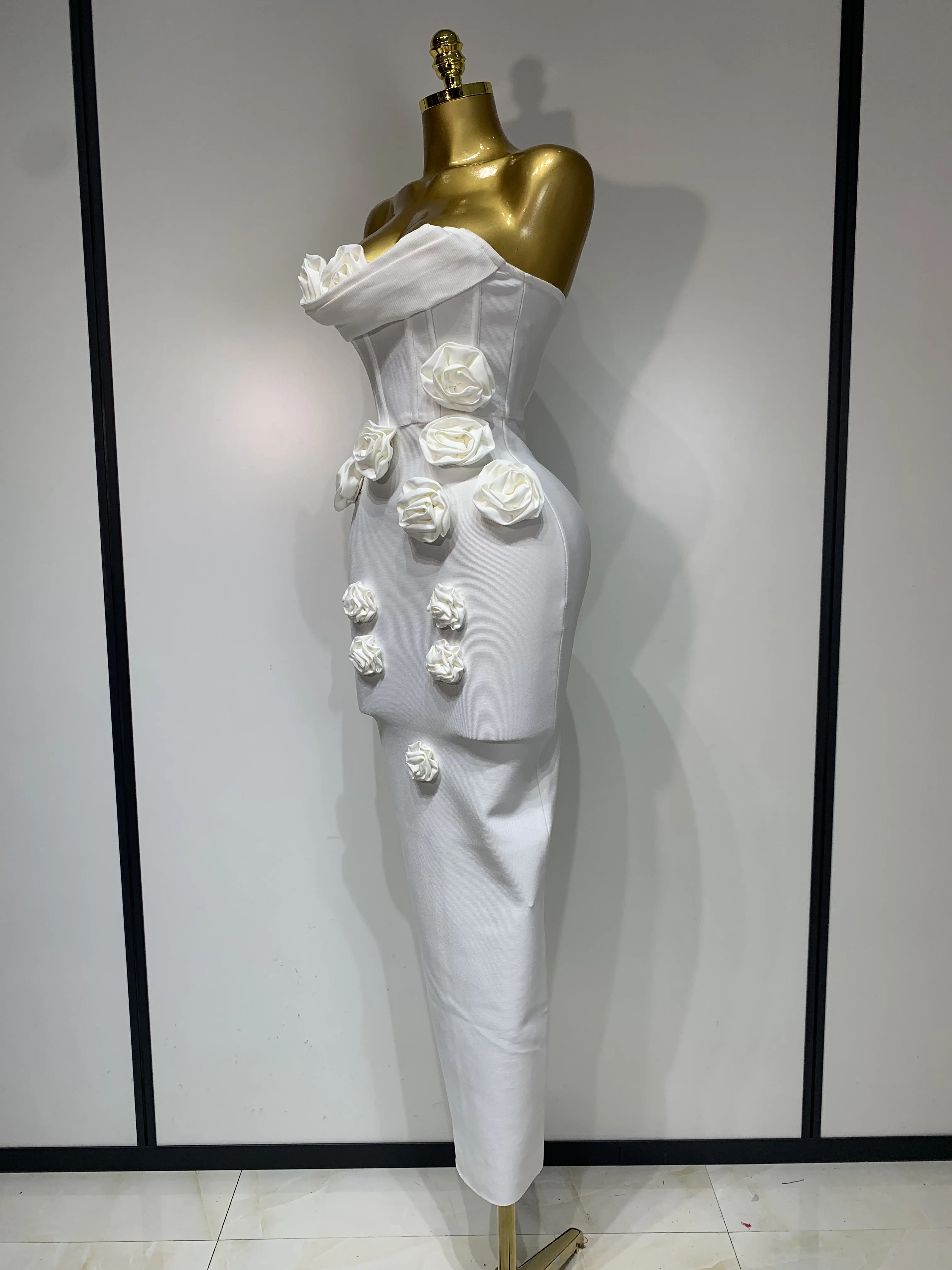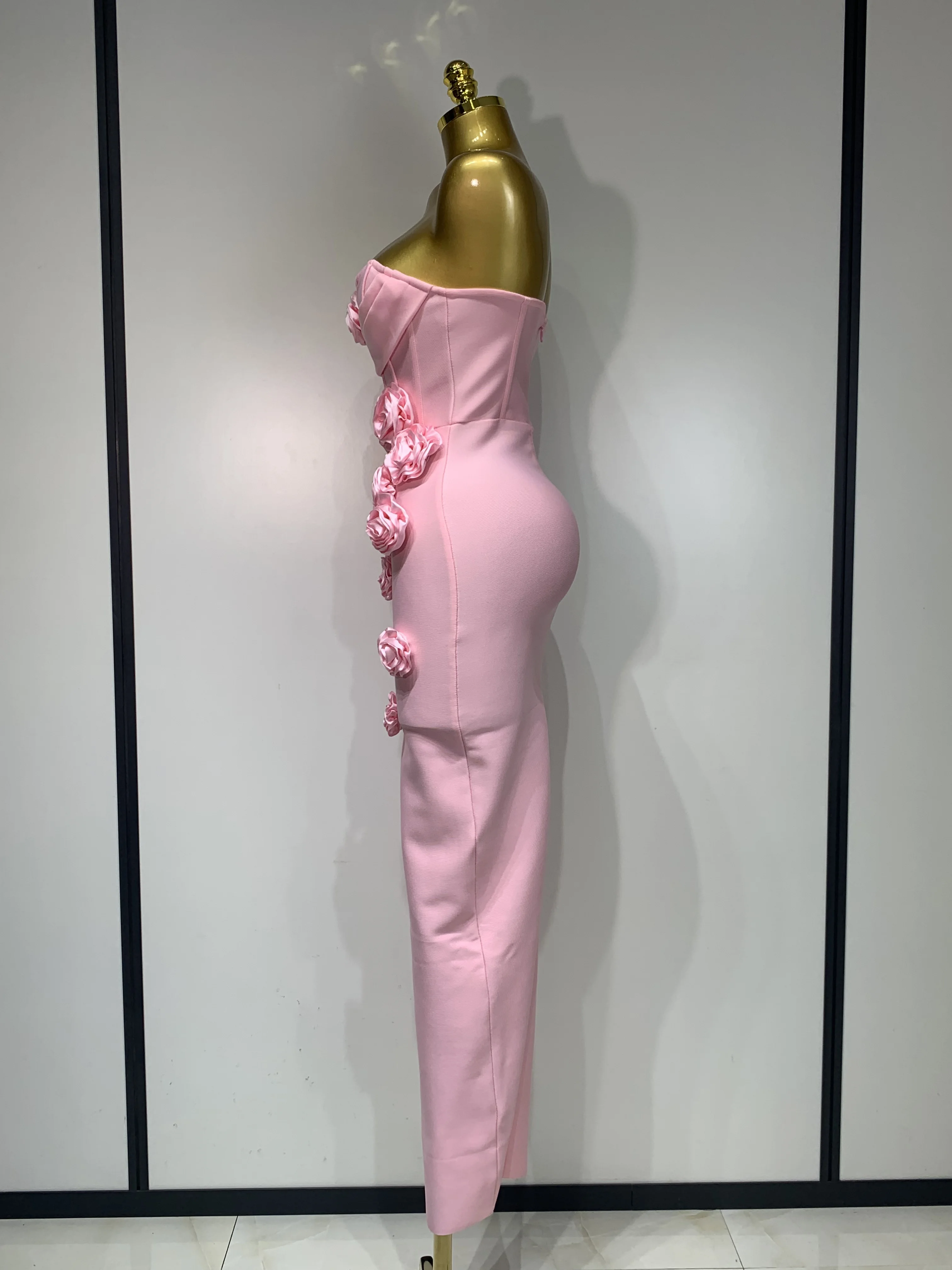 2025 Newest Women Sexy Strapless Backless Red Flower Midi Bandage Dress Celebirty Elegant Evening Club Party Birthday Dresses