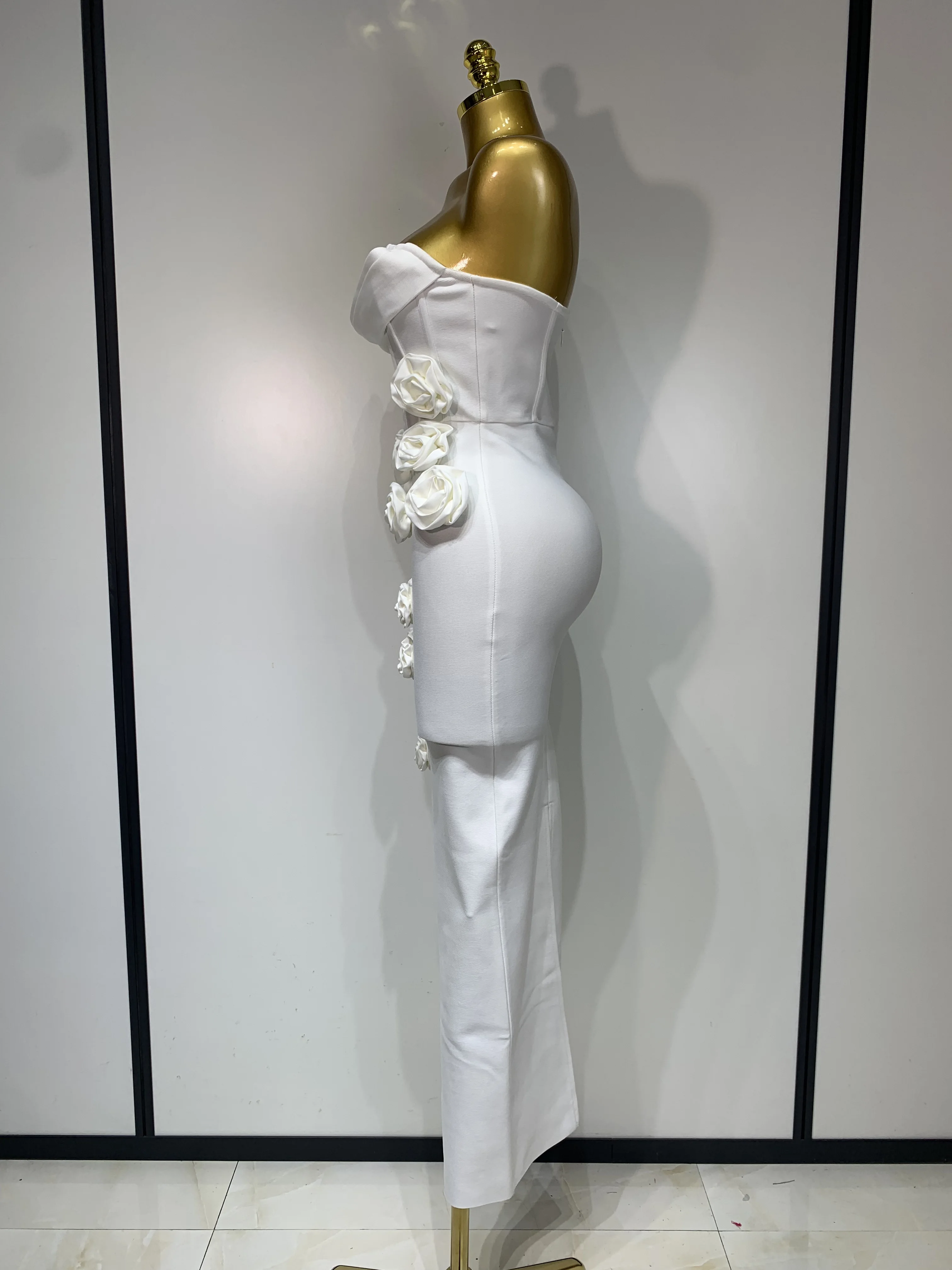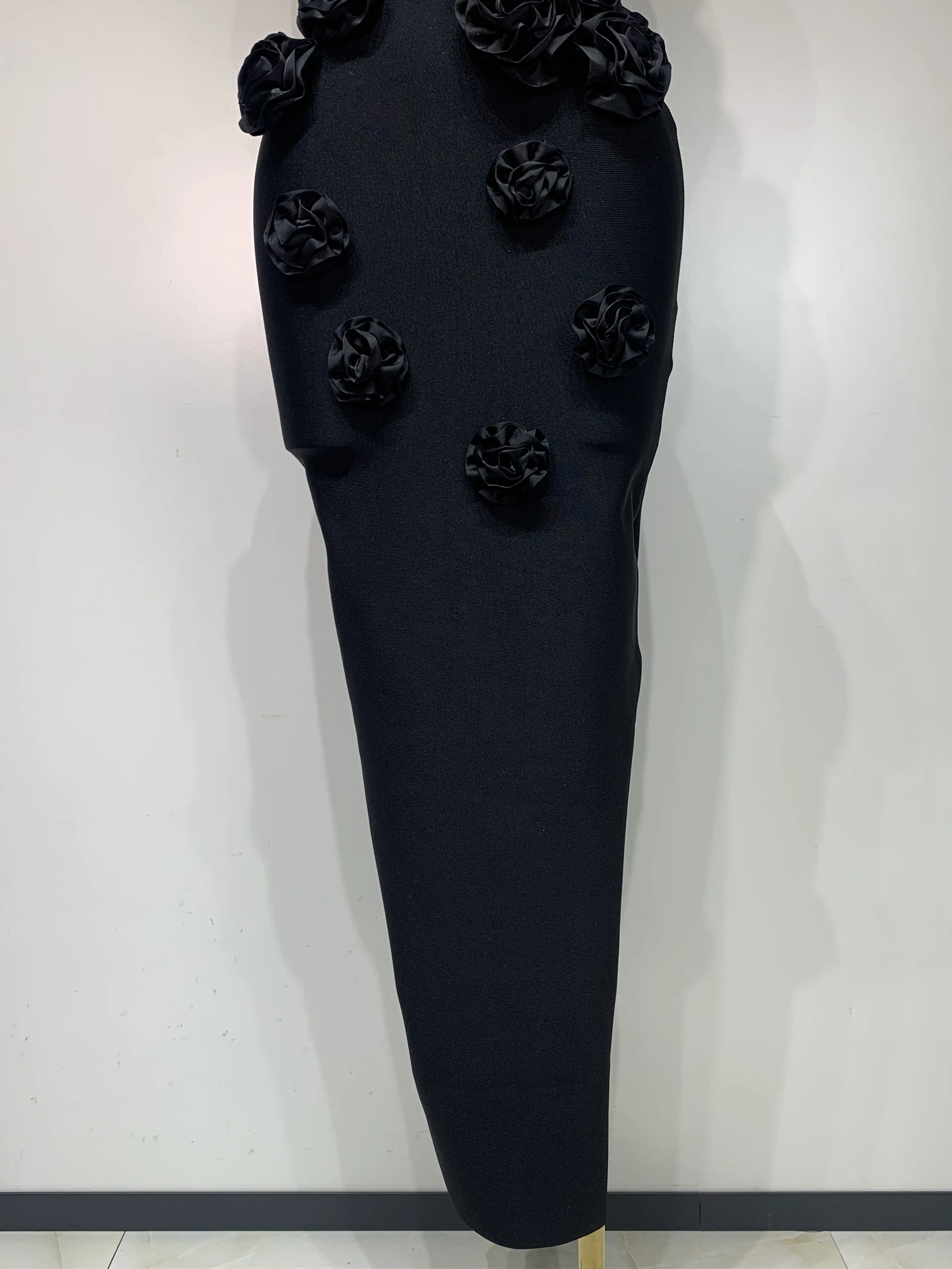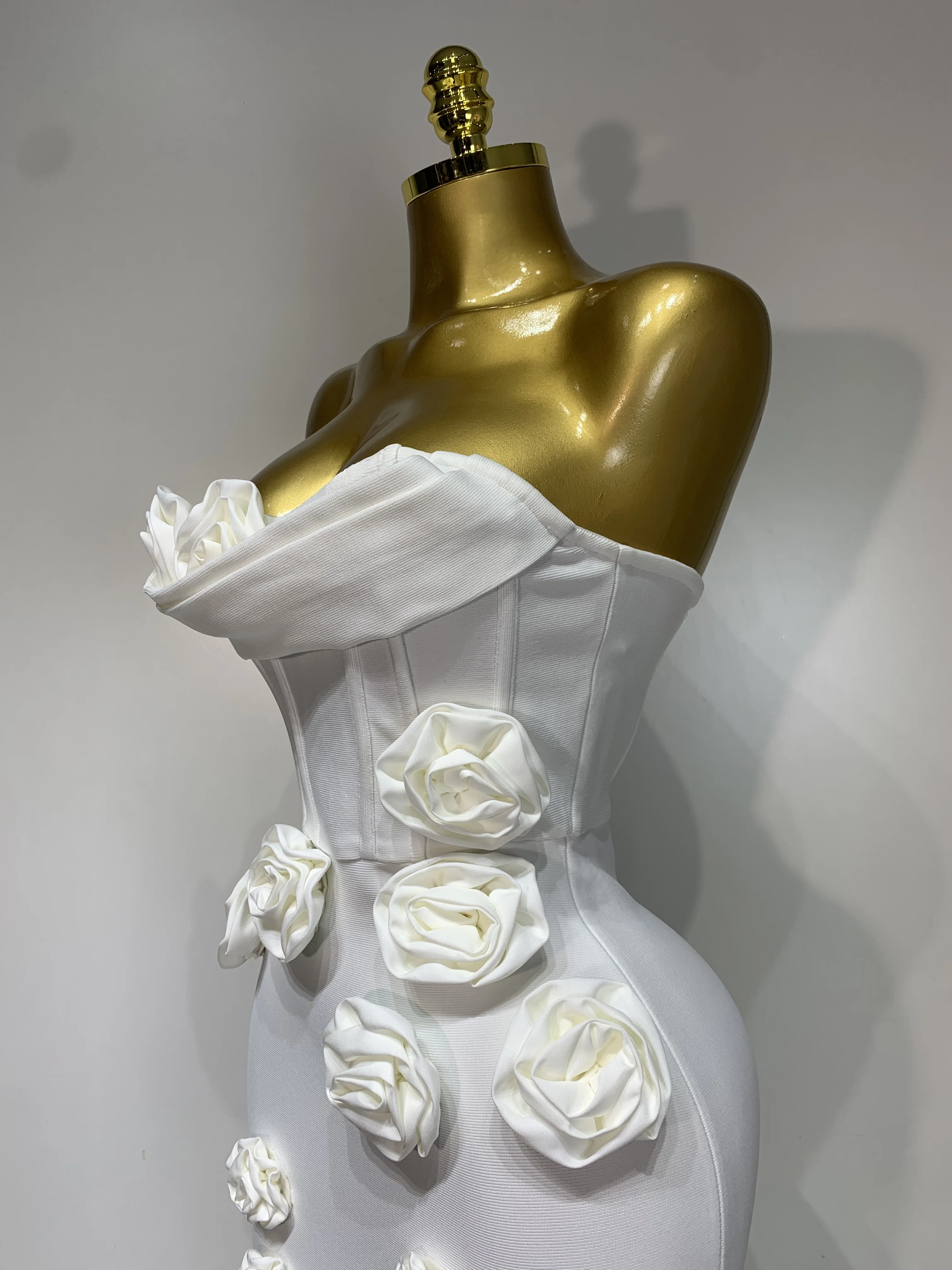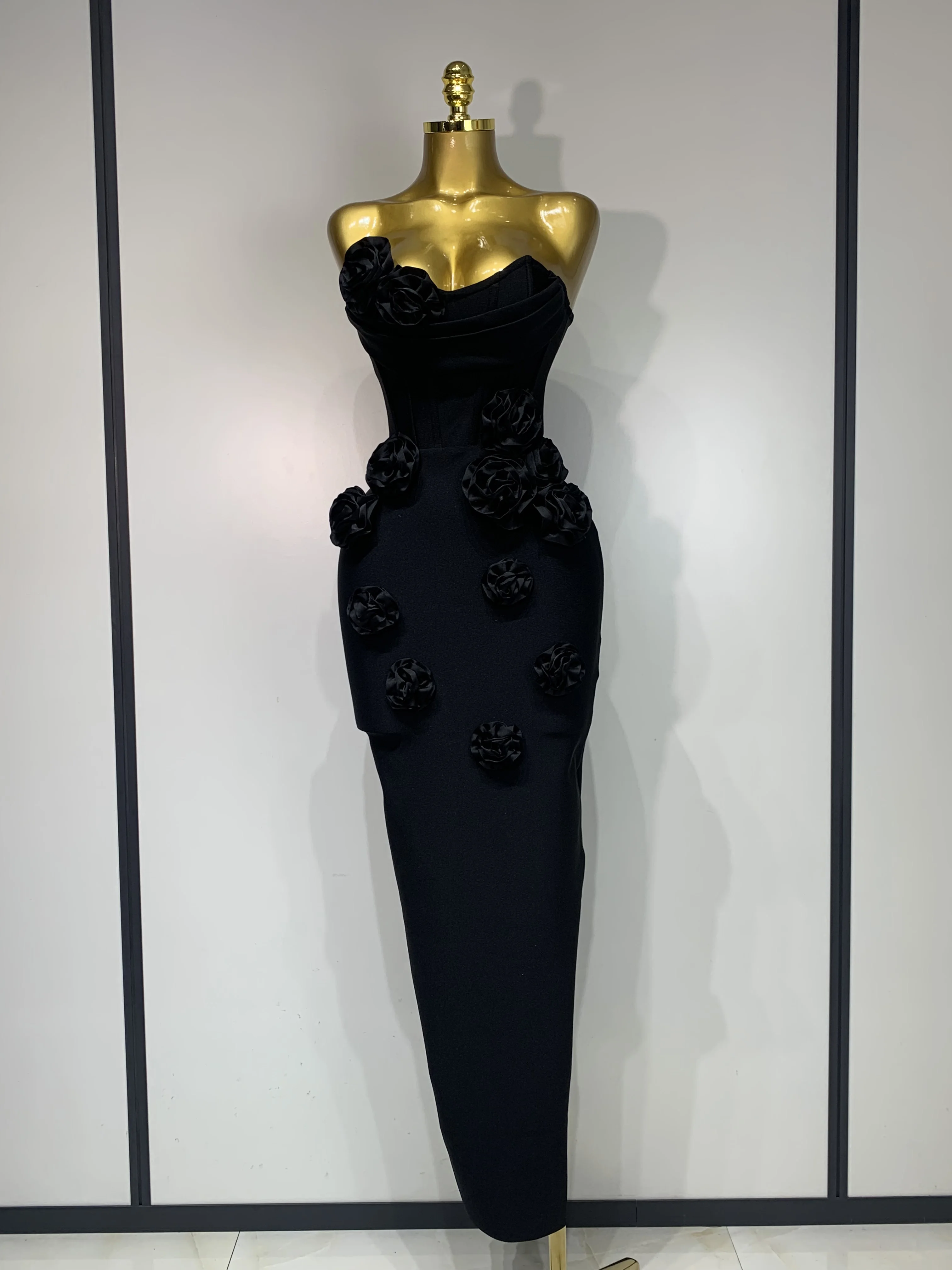 2025 Newest Women Sexy Strapless Backless Red Flower Midi Bandage Dress Celebirty Elegant Evening Club Party Birthday Dresses
