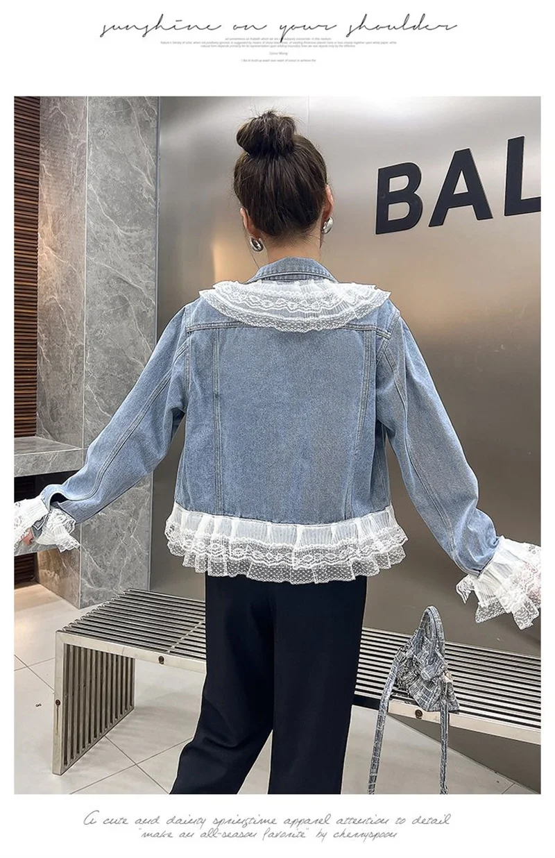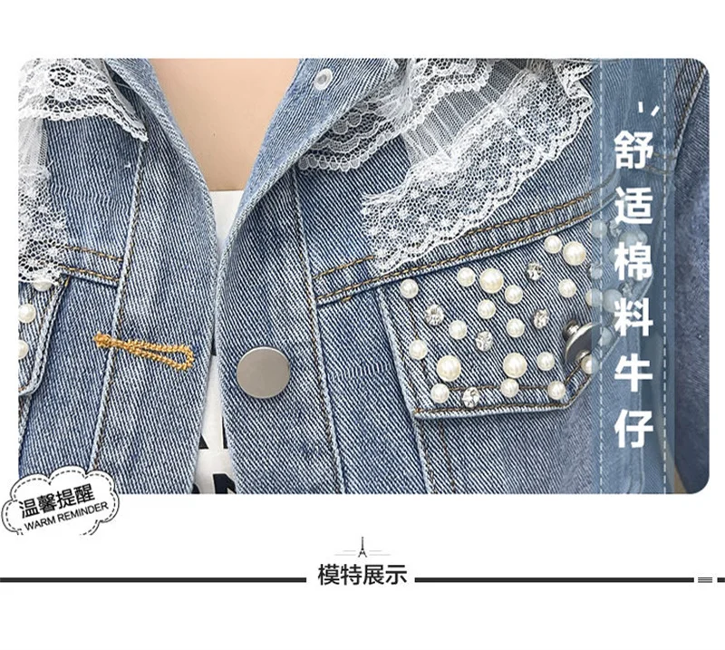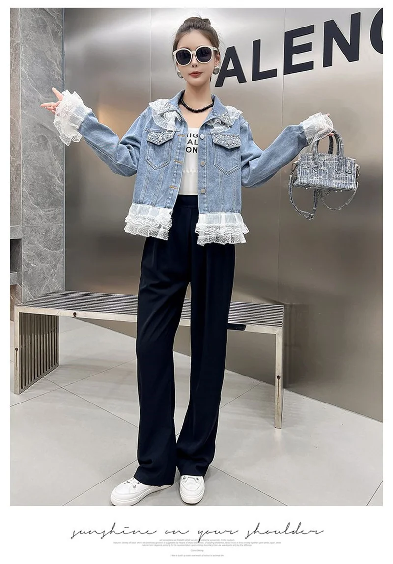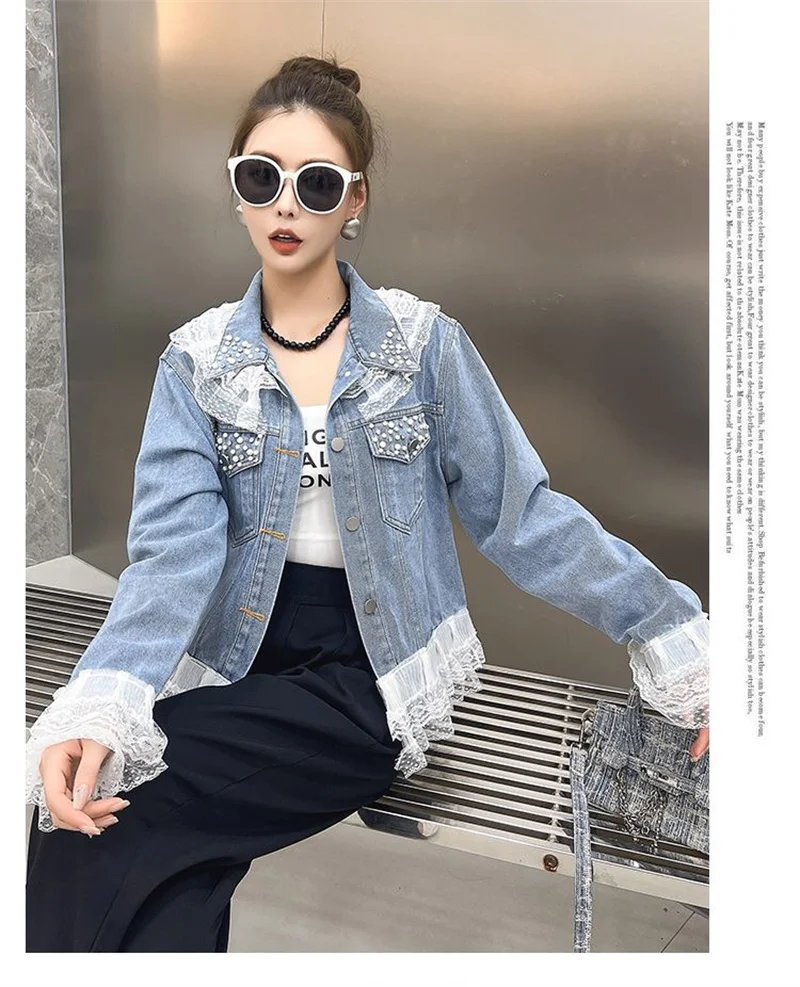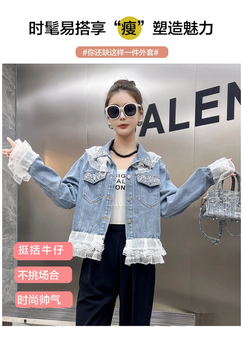 2025 Spring Autumn Women's Nail Bead Short Denim Jacket Female New Korean Version Design Sense Fashionable Lace Edge Jacket Top