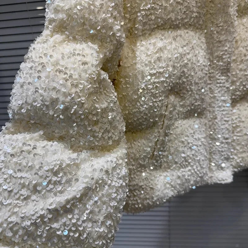 2025 Winter New Sweet And Cool Hot Girls Sparkling Beads Heavy Industry Warm Bread Jacket Down Coat Women's Solid Color Parkas