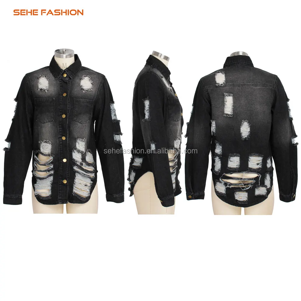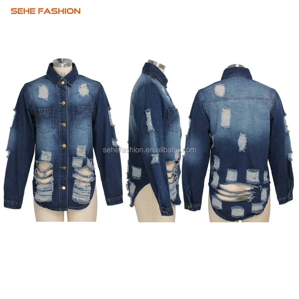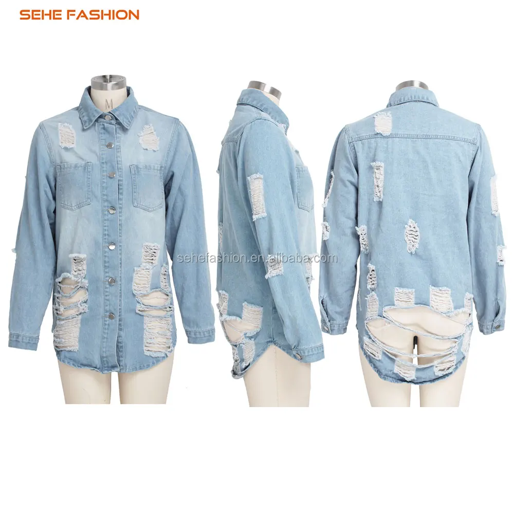 ripped design denim long women coats sehe fashion