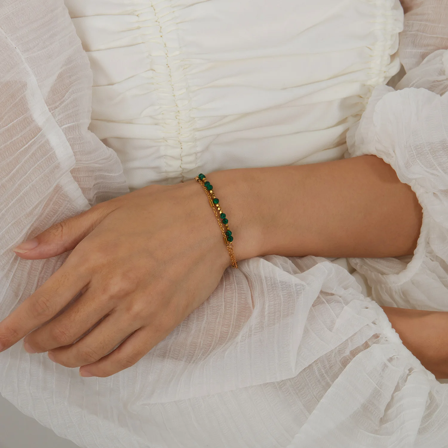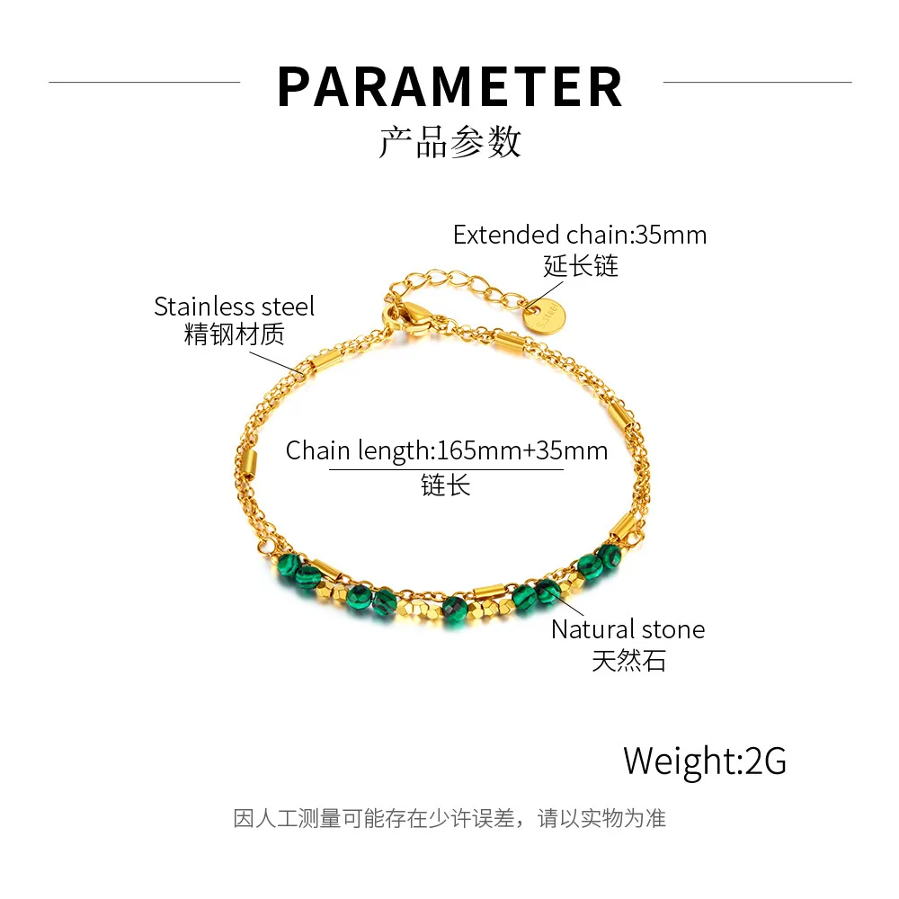 20cm Stainless Steel Natural Stone Bead Bracelet with Gold Plating Fashionable Charm Bracelets for Women Wedding Party Gift Idea