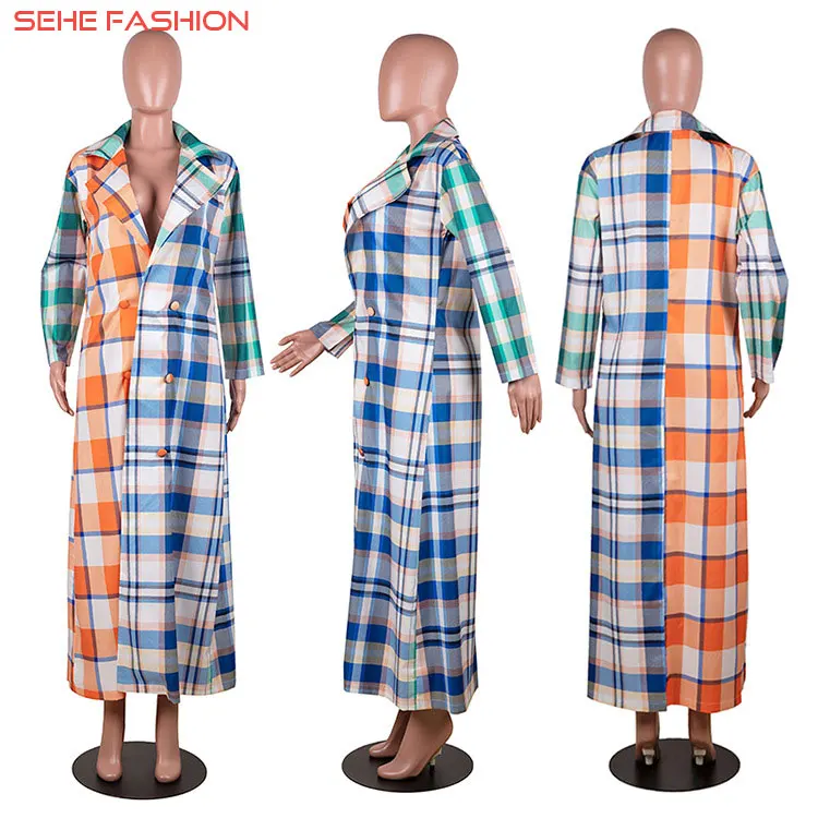 21009-MX29 casual contrast colorful plaid suit long coat women sehe fashion