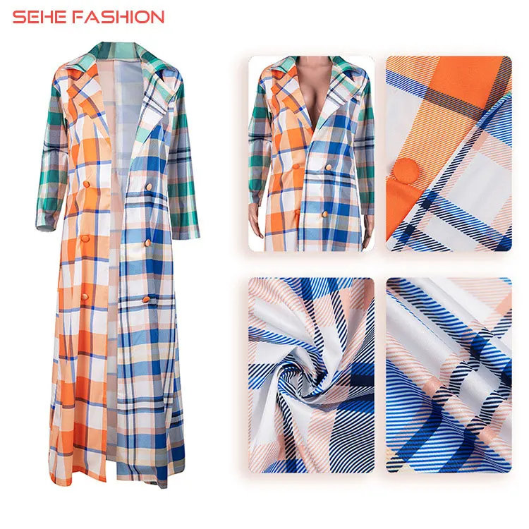 21009-MX29 casual contrast colorful glaid suit long coat women sehe fashion