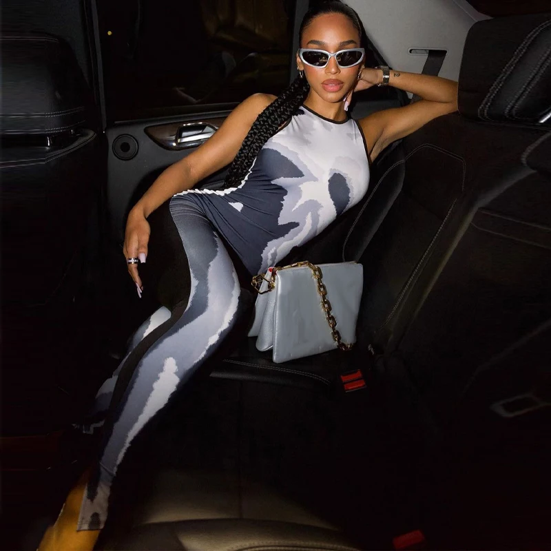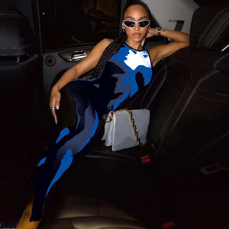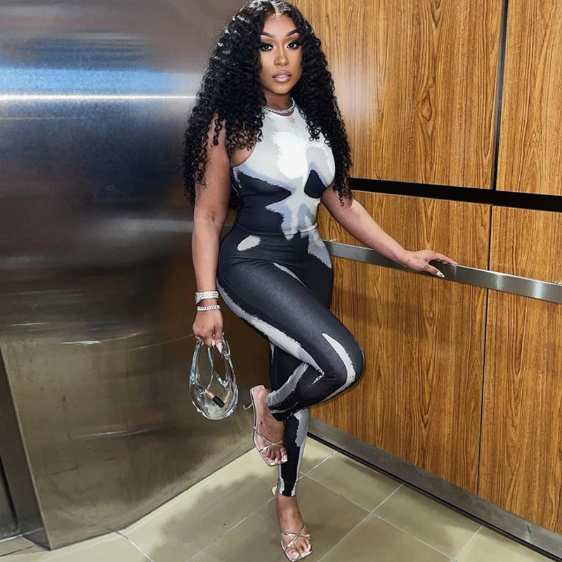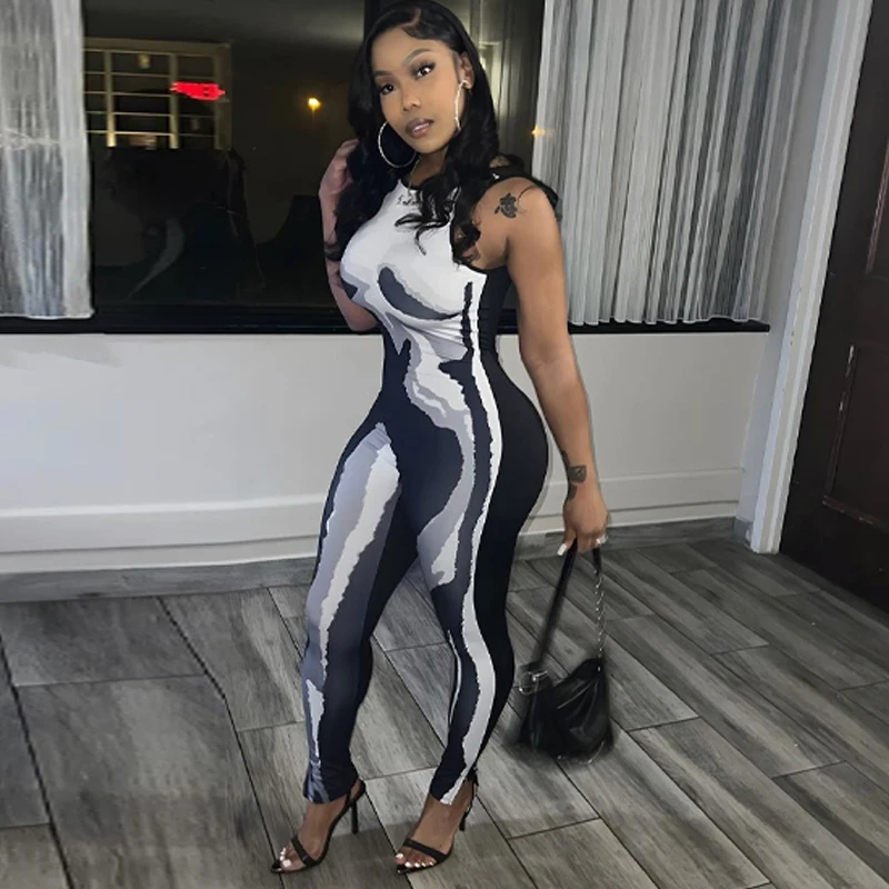 2232 O Neck Tie Dye Print Sleeveless One Piece Jumpsuit Bodysuit 2023 New Casual Summer Streetwear Gym Outfit Wholesale Clothes