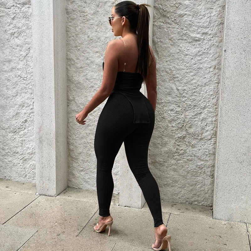 2669 Y2K Rib Knitted Sexy Stretchy Crop Top Long Pants Womne'S Sets 2023 Lady Club Summer Casual Streetwear American Clothing