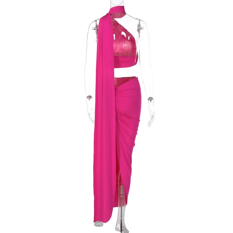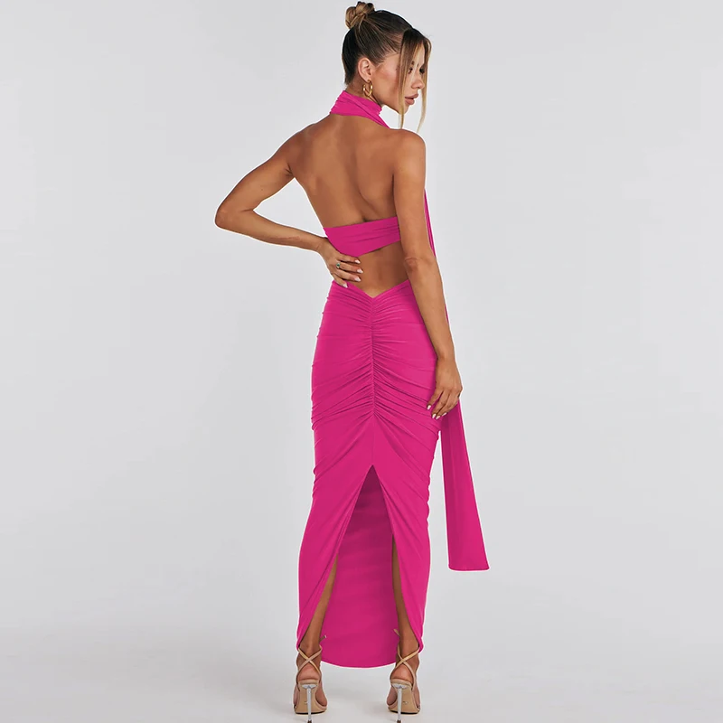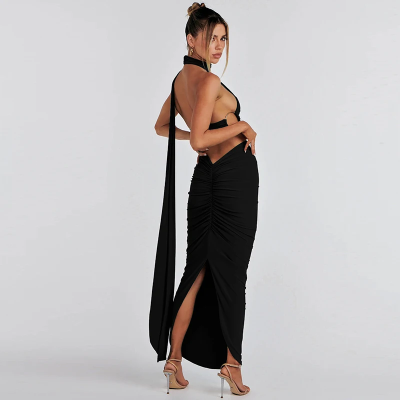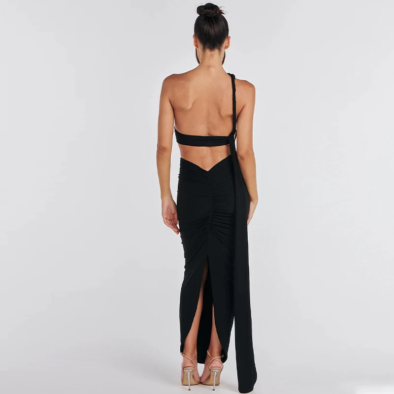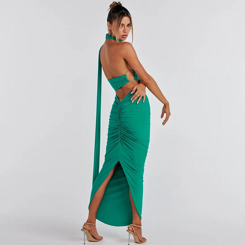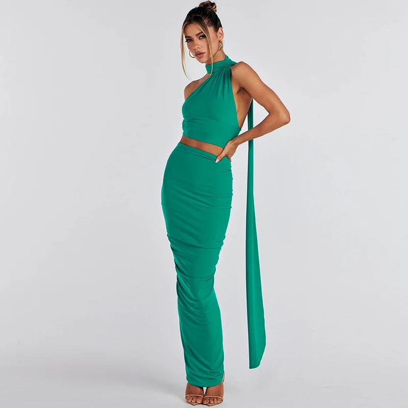2866 Halter Backless High Waist Crop Top Ruched Slit Tube Skirt Women'S Sets Summer Evening Elegant Party Prom Casual Clothes