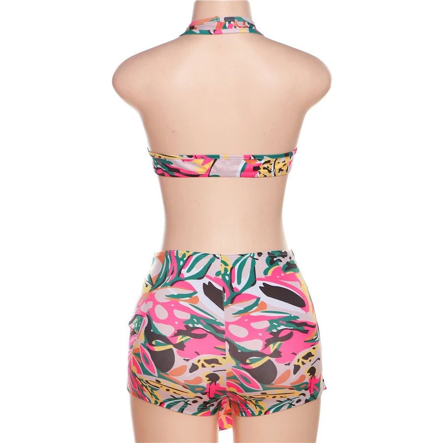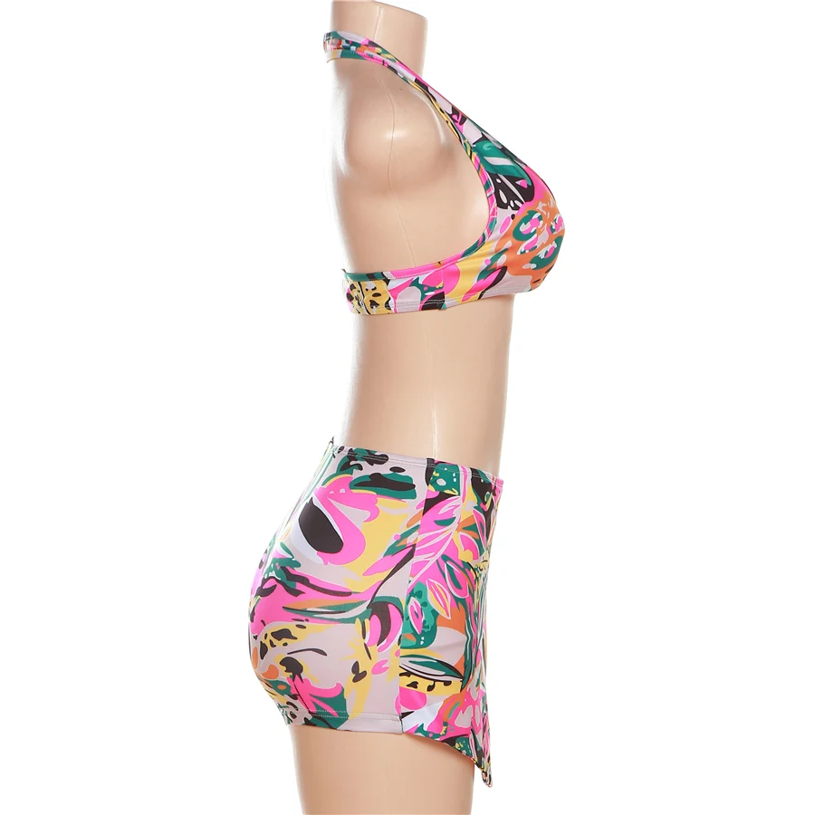 29478 Trend 2023 Block Color Knitted Short 2 Piece Outfit Lounge Wear Women Two Piece Short Set