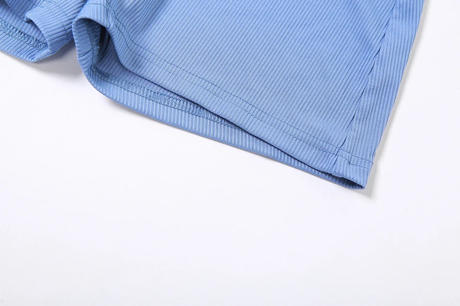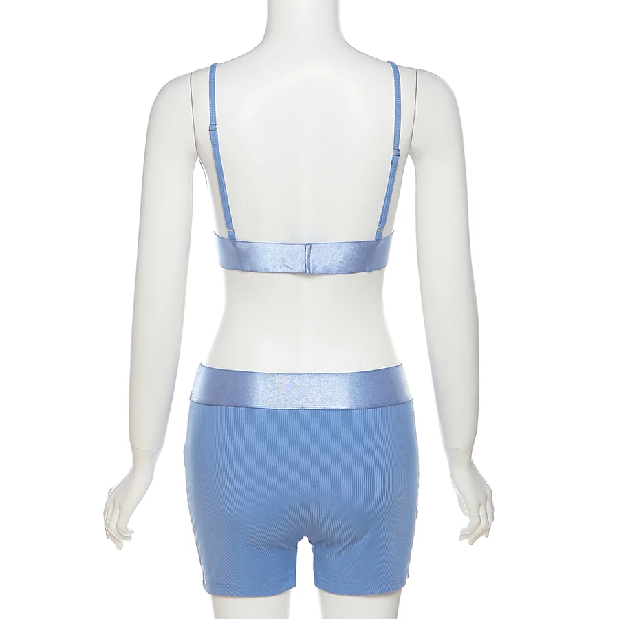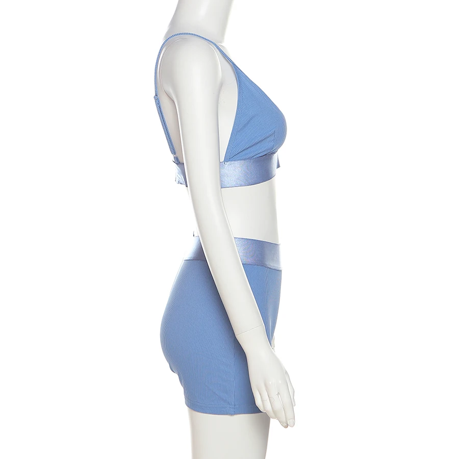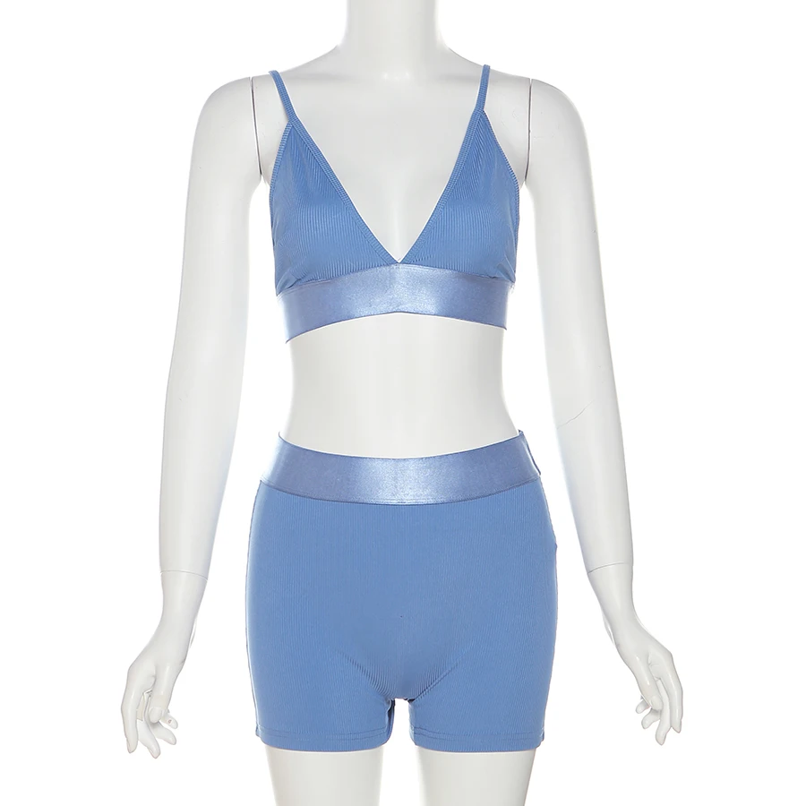29495 Summer Ribbed Fit Short 2 Piece Outfit Sport Lounge Wear Biker Short Set Women