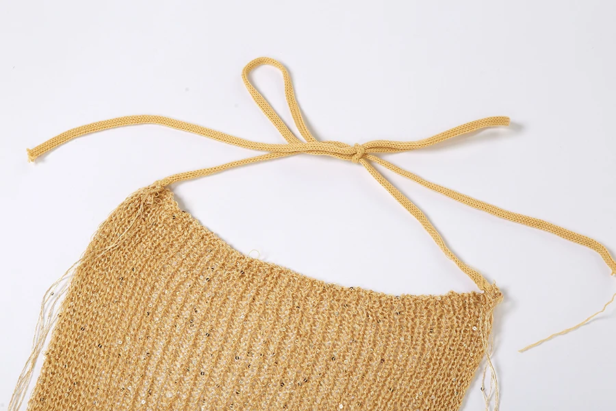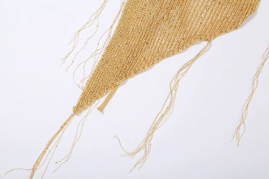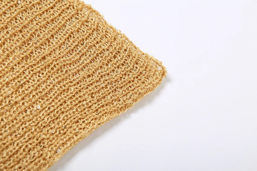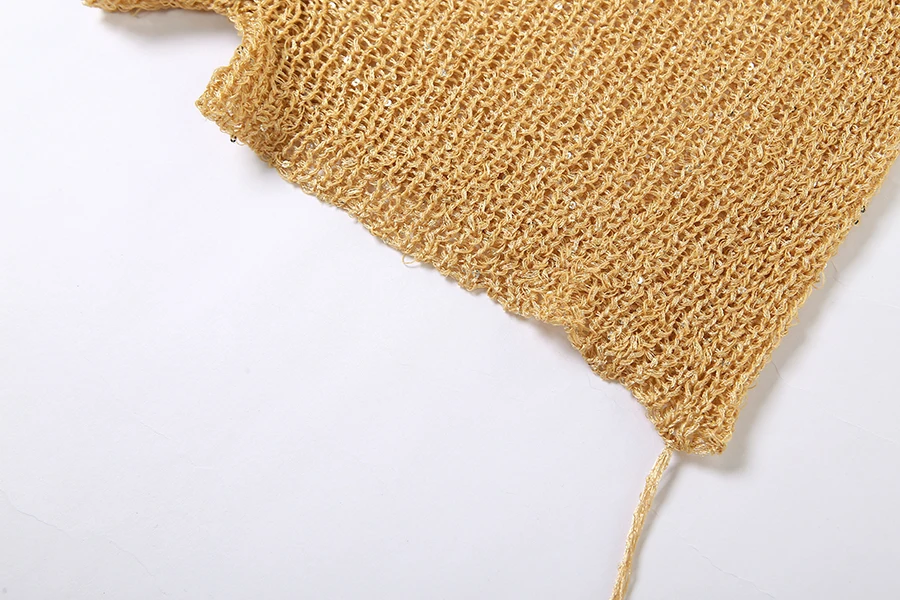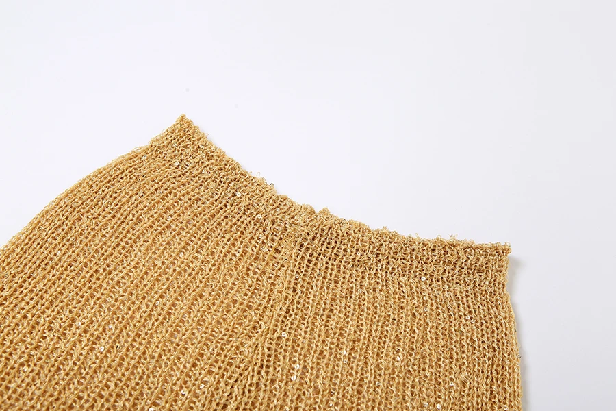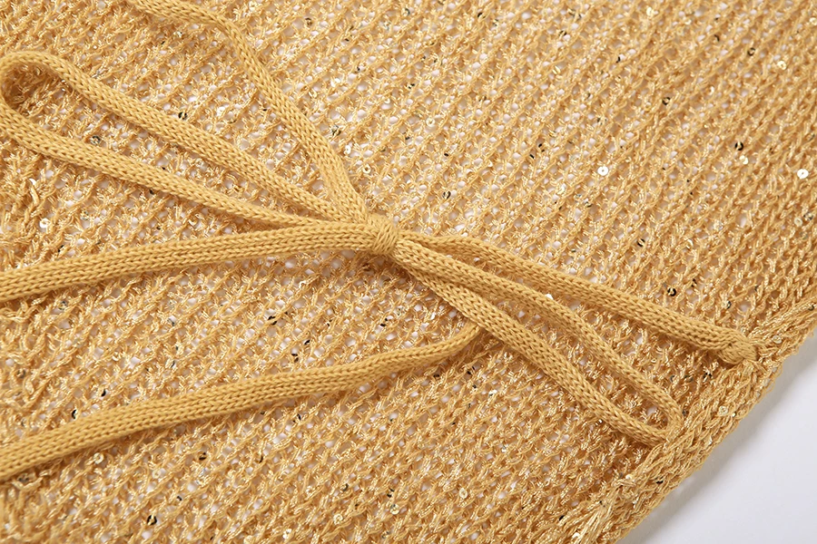 29585 Summer 2023 Hood Knit Short 2 Piece Outfit Golden Sequins Women Two Piece Short Set