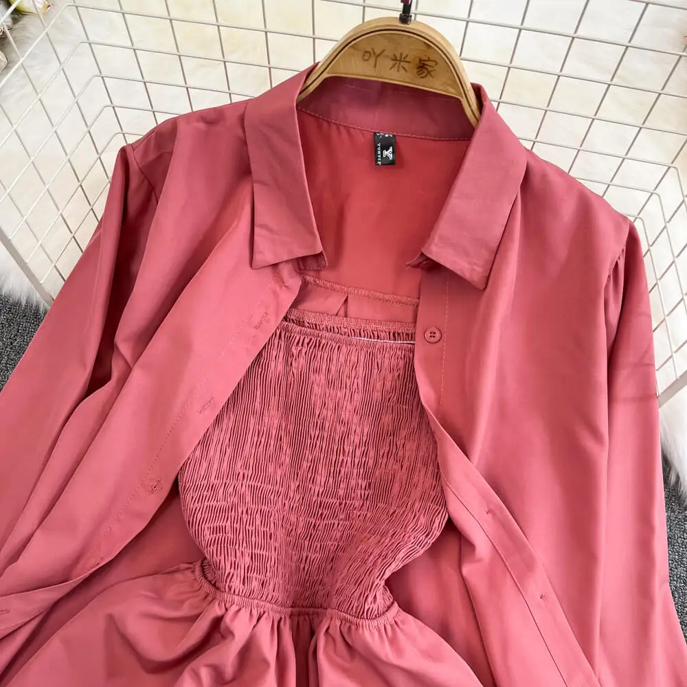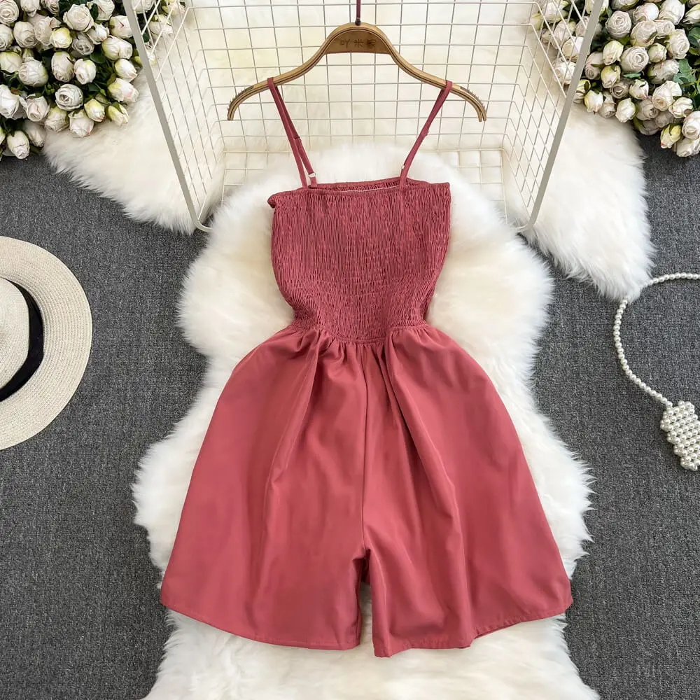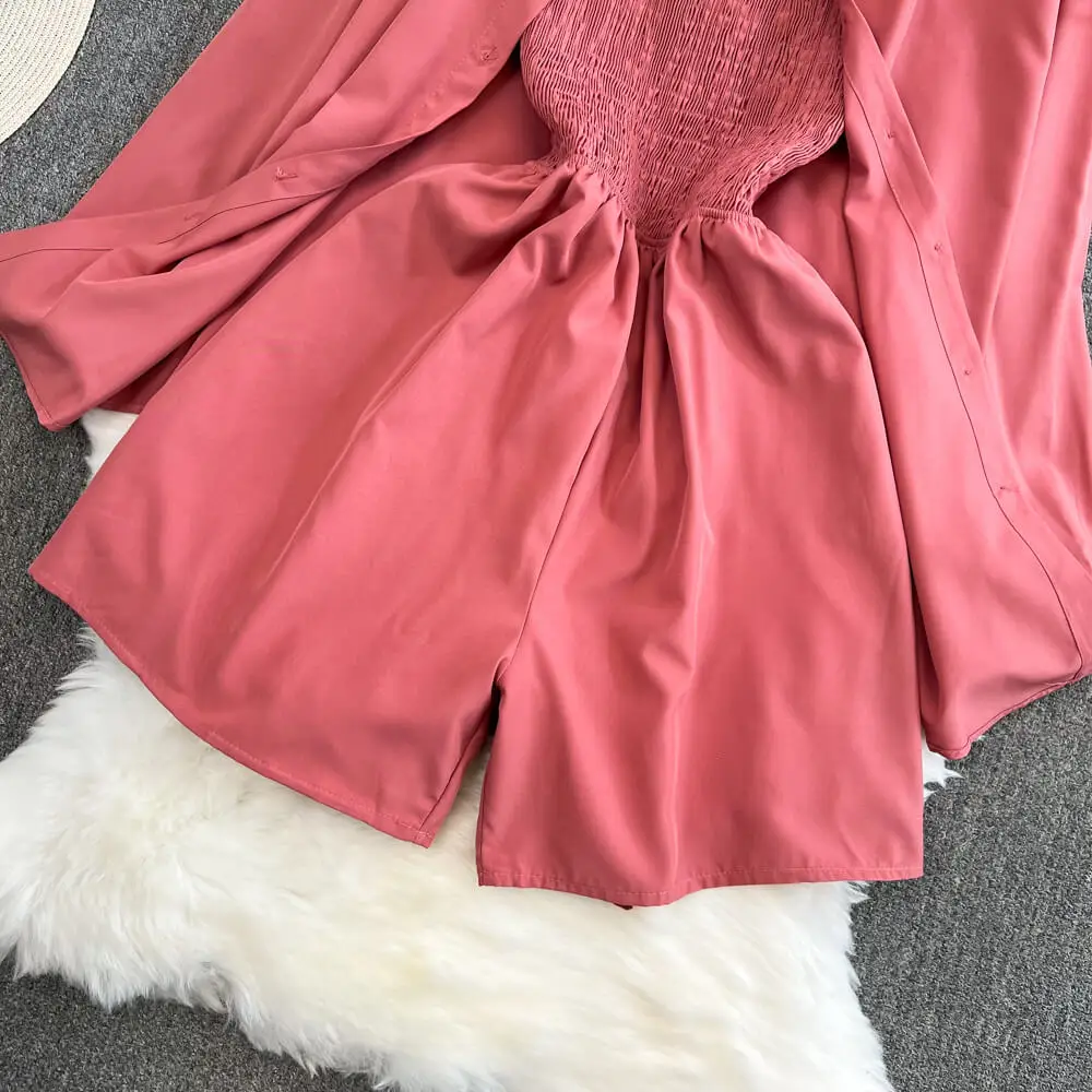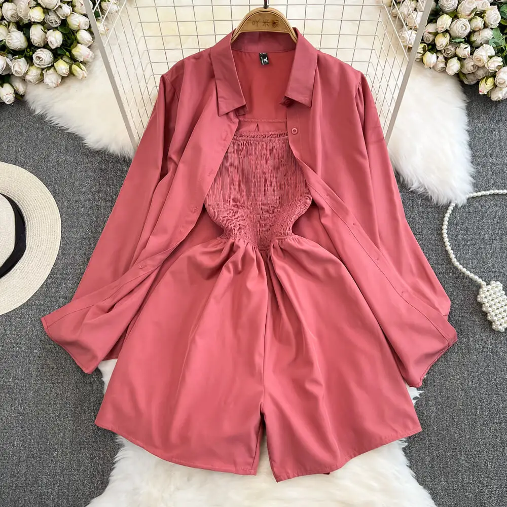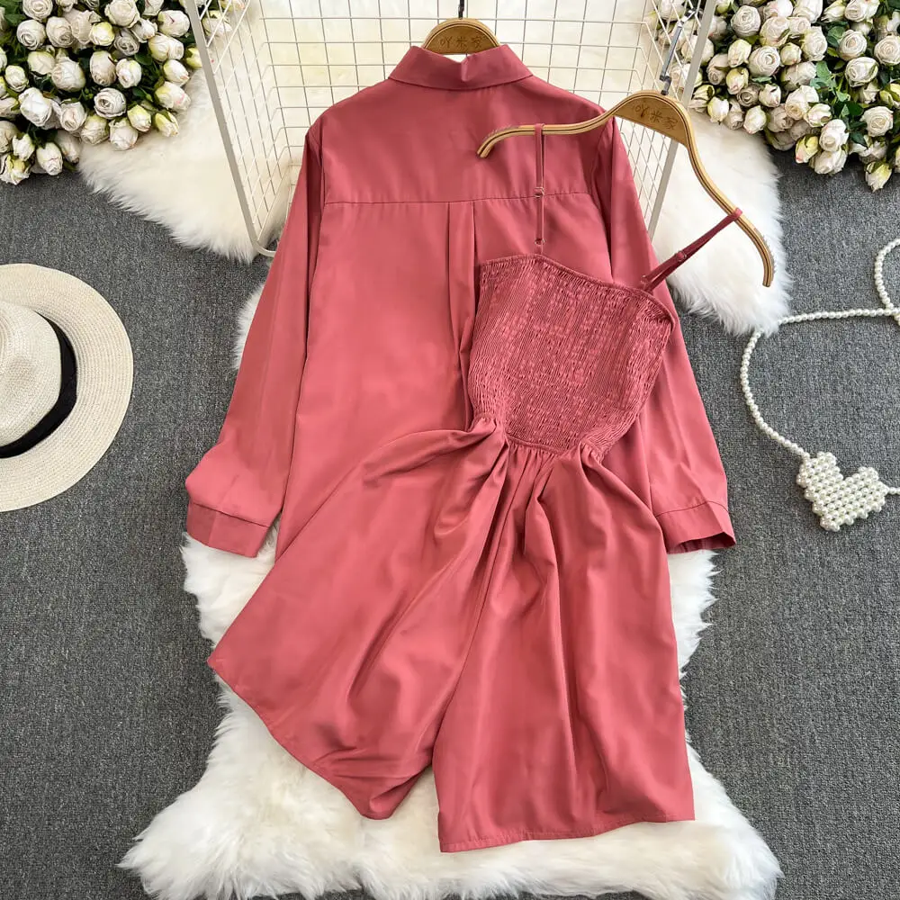 2Pcs Set Woman Lazy Fashion Suit Women'S Summer Niche Design High-Class Loose Sunscreen Shirt+Wide Leg Suspenders Culottes Set