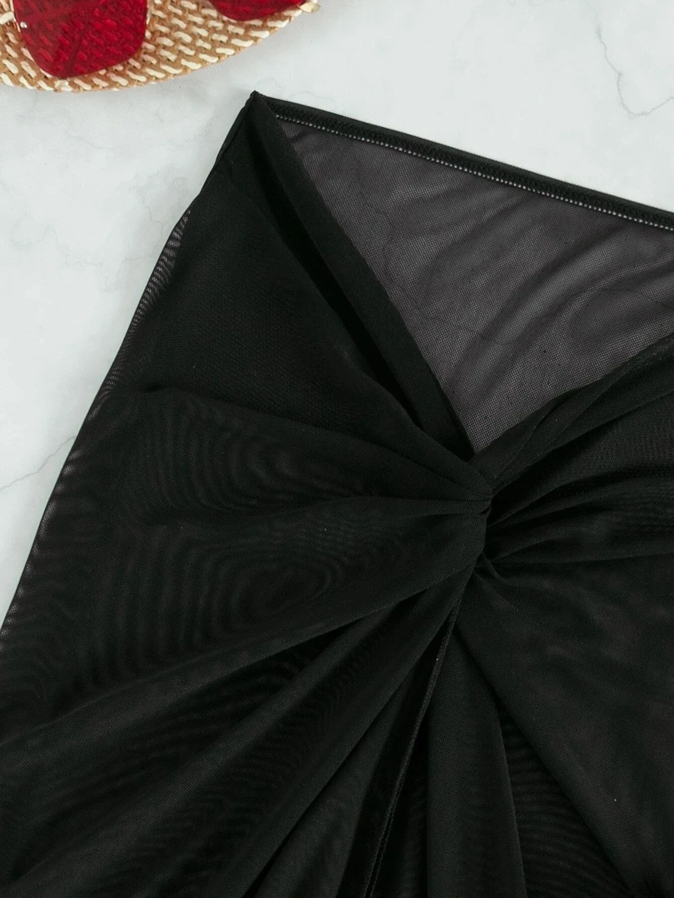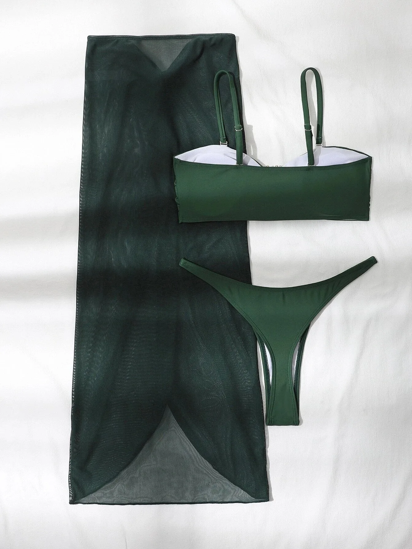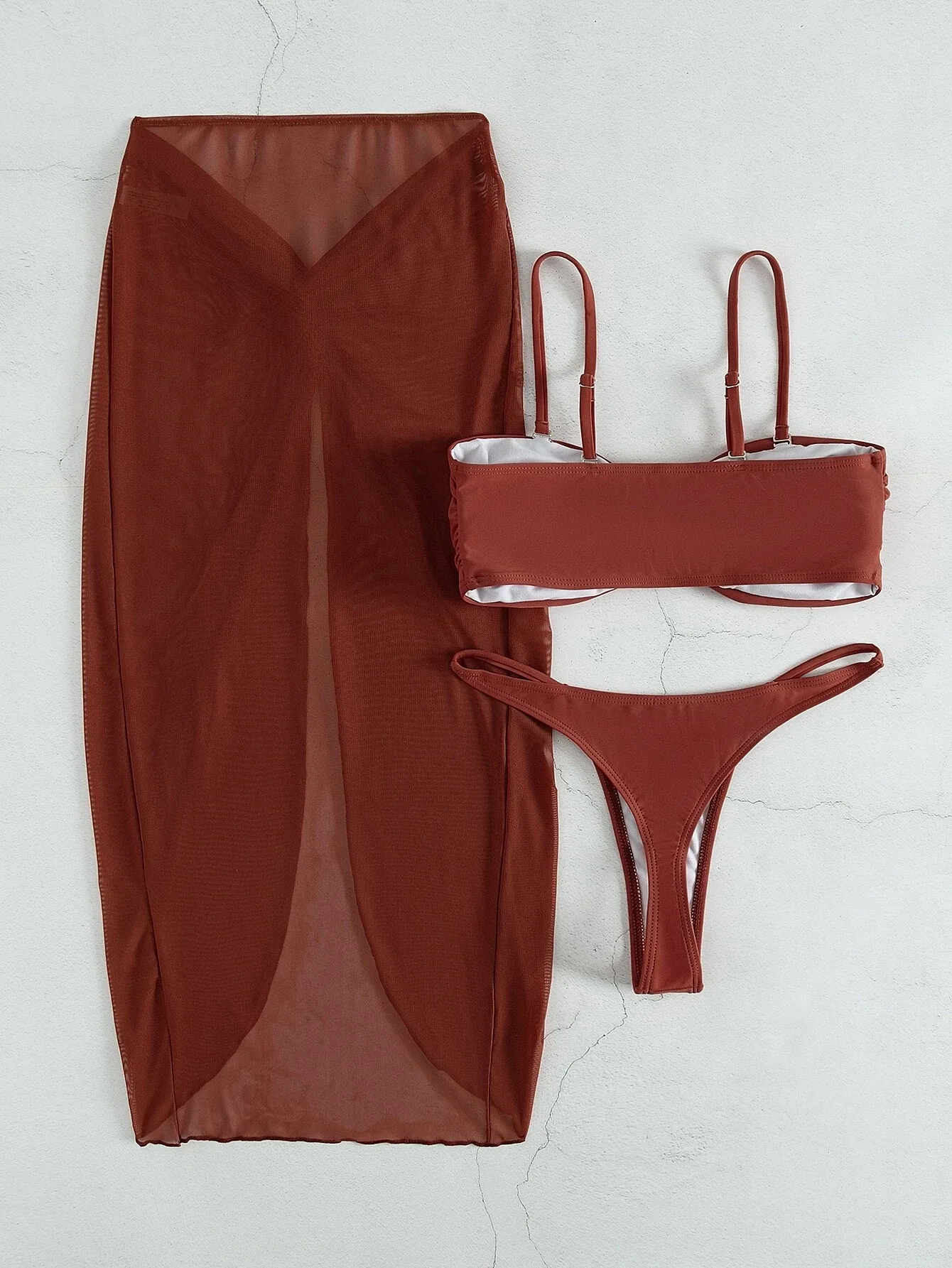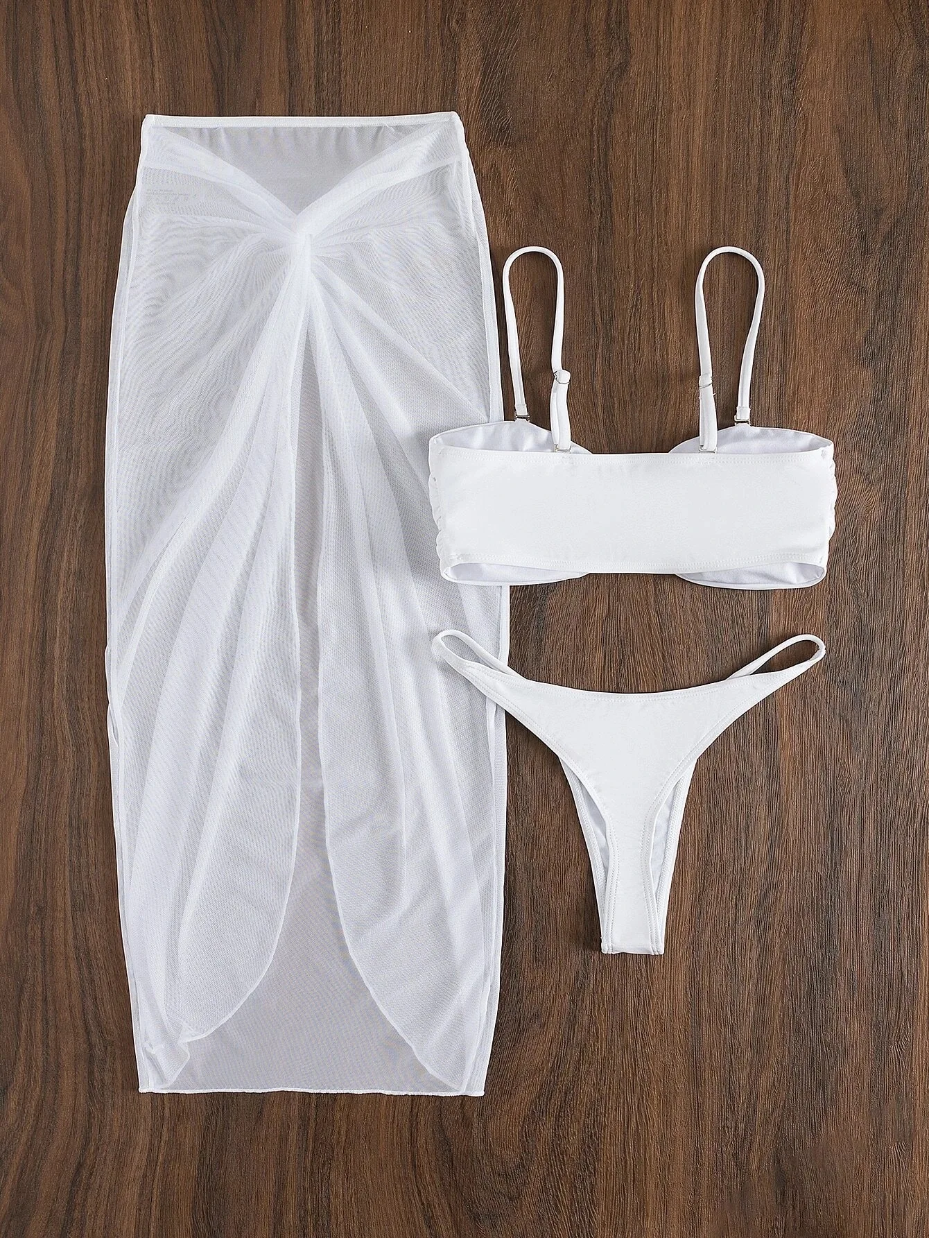 3 PCS With Sarong Micro Thong Halter Bikini Set Female Buckle Swimsuit Women Swimwear Three-piece Bather Bathing Suit Swim