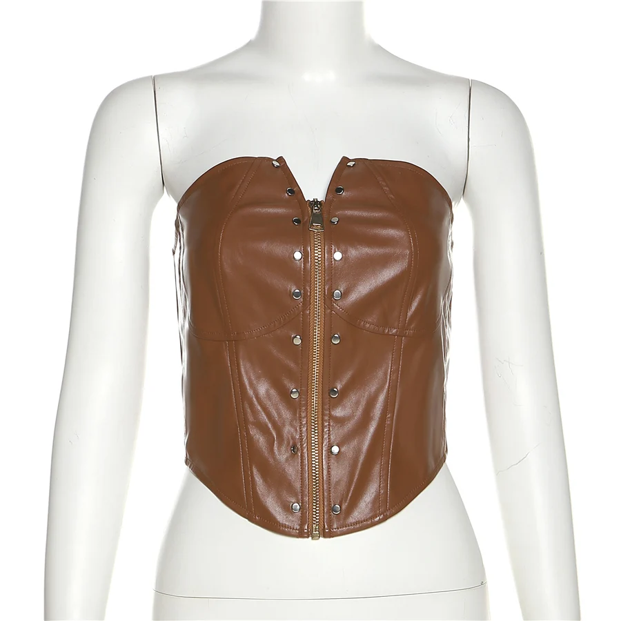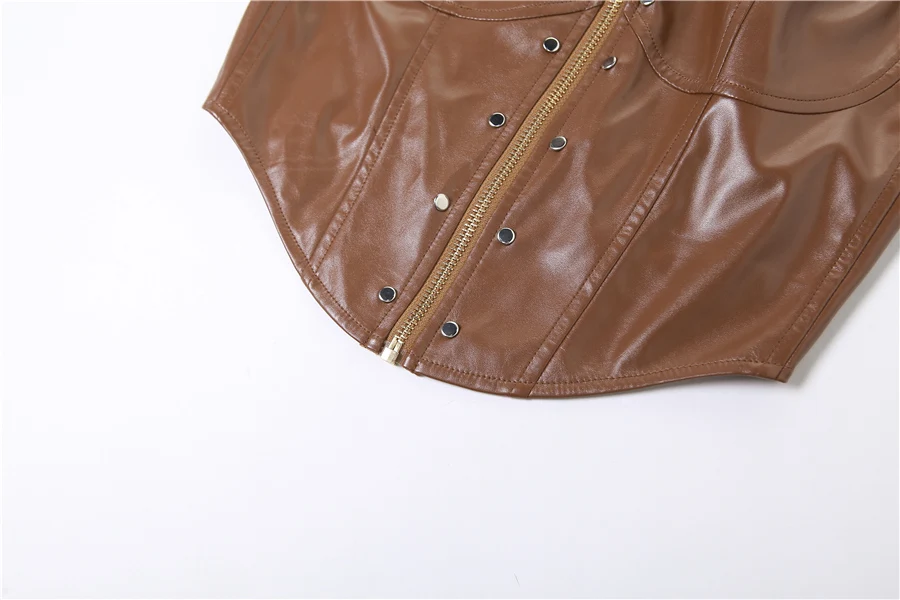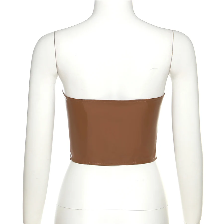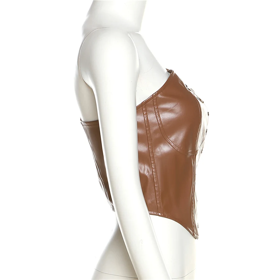 30286 Summer 2023 Leather Corset Sexy Wrapped Shirt Women Crop Top