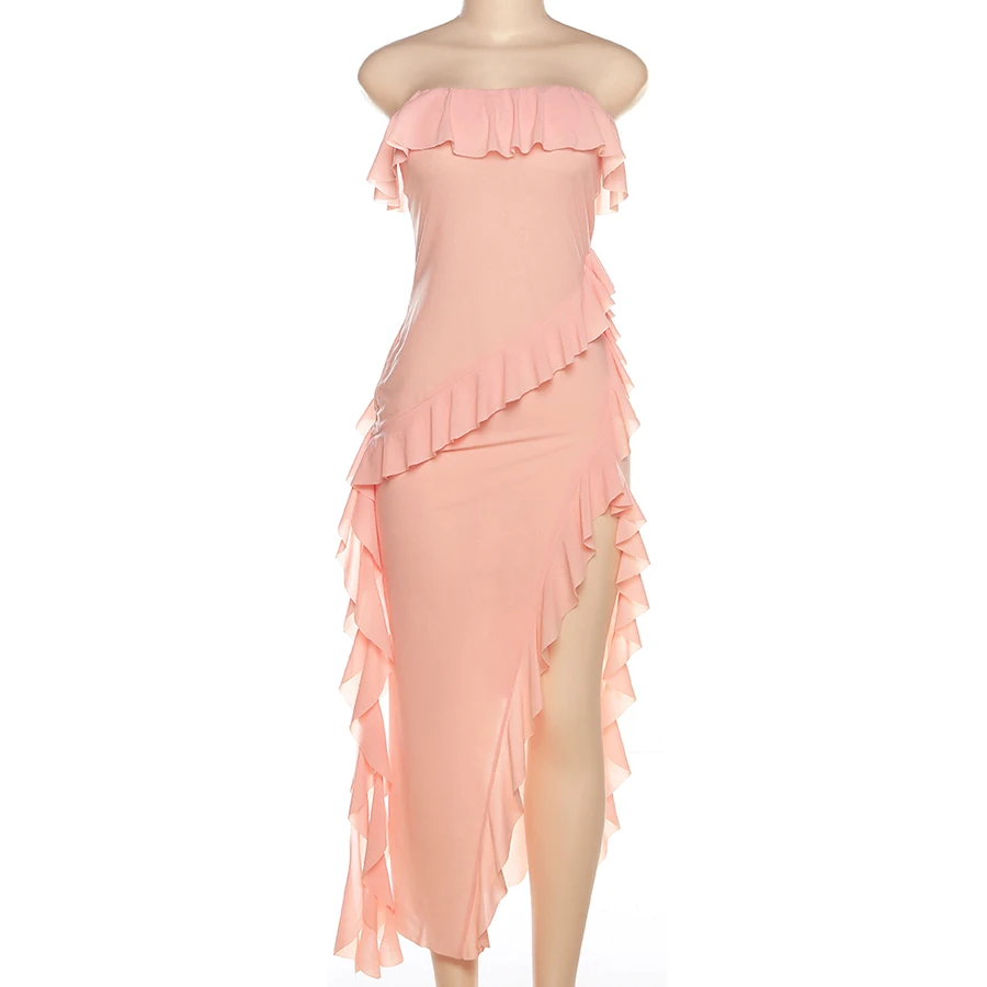 30444 Summer 2023 Wrapped Chest Ruffles Vestido Party Club Wear Dresses Women Sexy