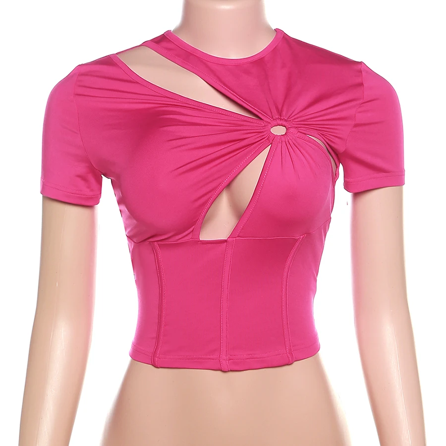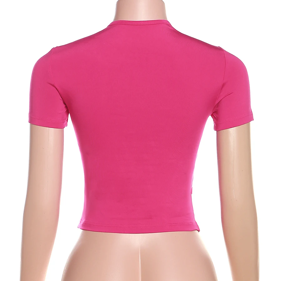 31706 Summer Asymmetrical Short T Shirt Street Wear Casual Women Tees