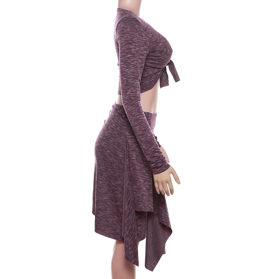 31975 Asymmetrical Skirt Low Collar Women's Set Elegant Ladies 2 Piece Skirt Set