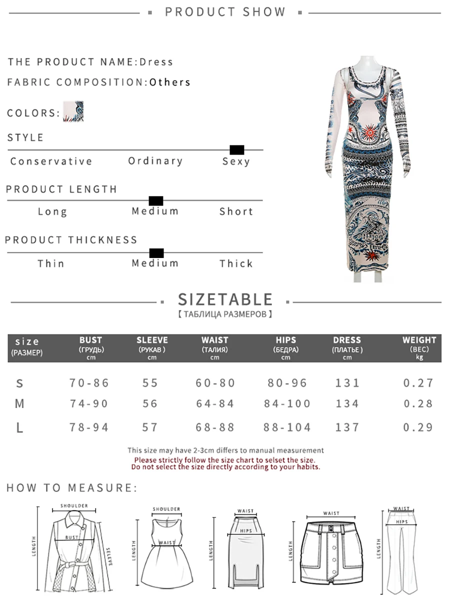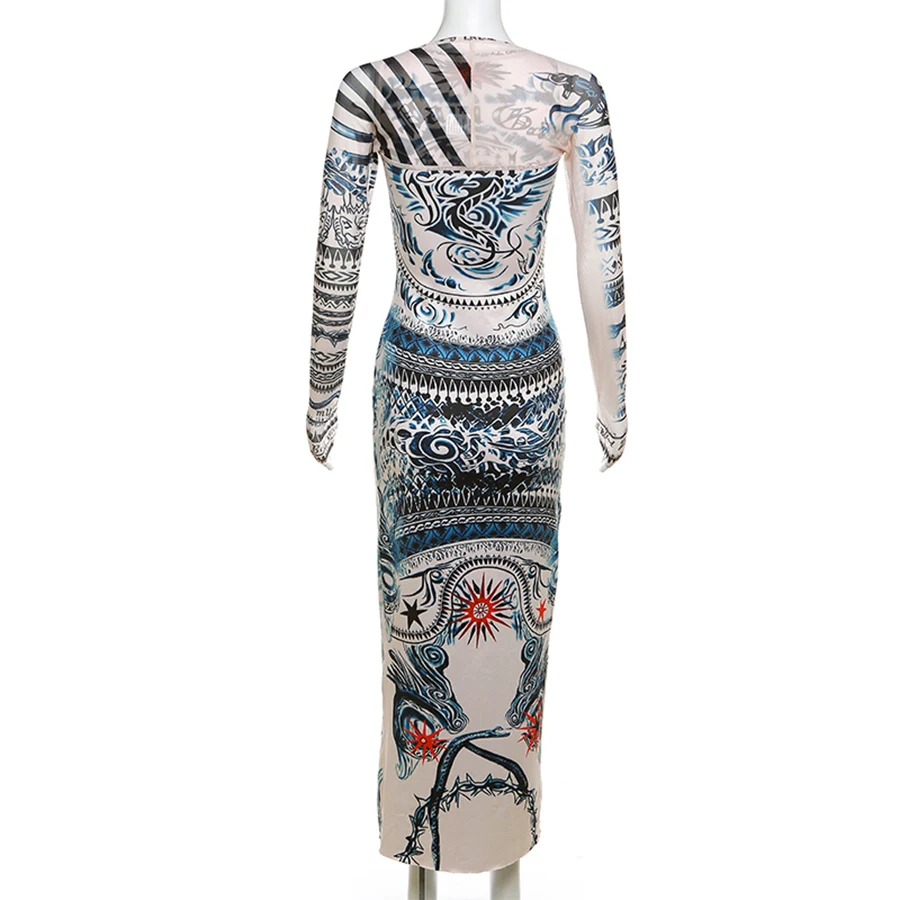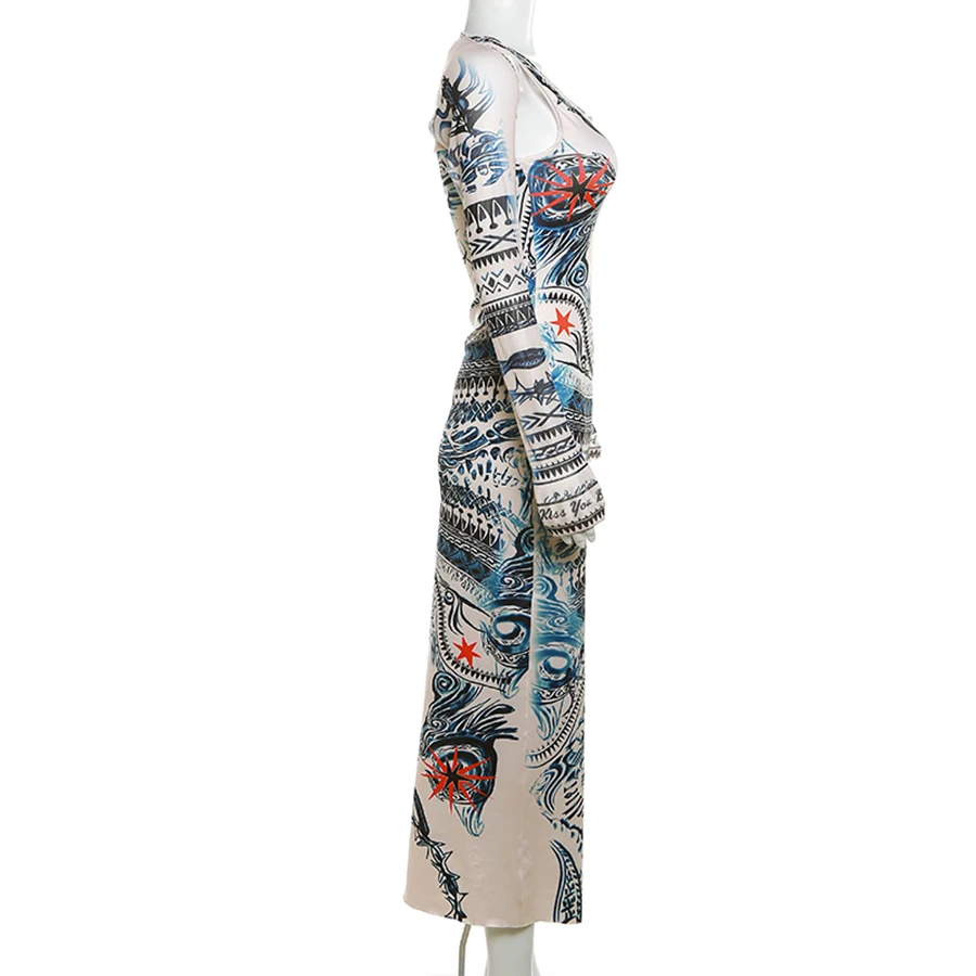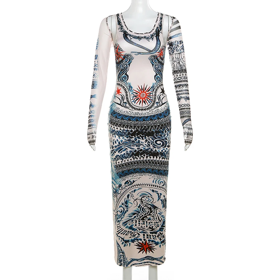 31986 Digital Print Long Sleeve Dress Vintage Street Wear Dresses Ladies Elegant