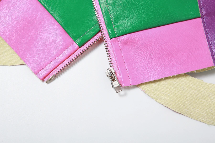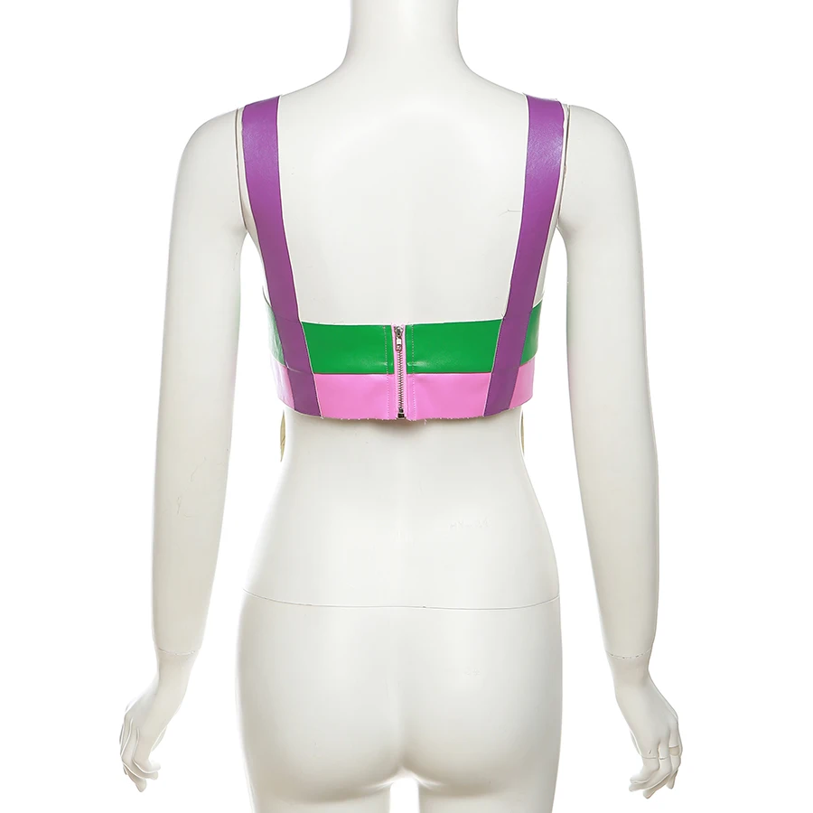 32425 Summer Leather Shirt Patchwork Color Tank Top Women