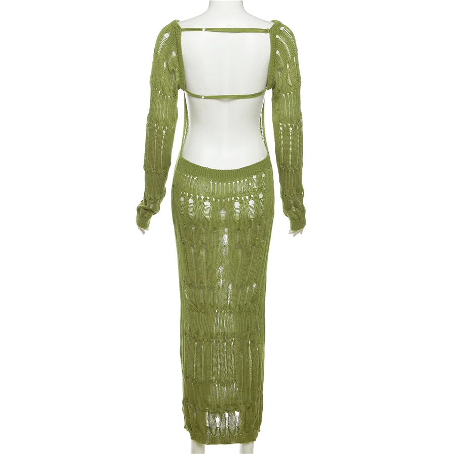 32662 Knit Backless Dress Elegant Ladies Dresses Women Casual