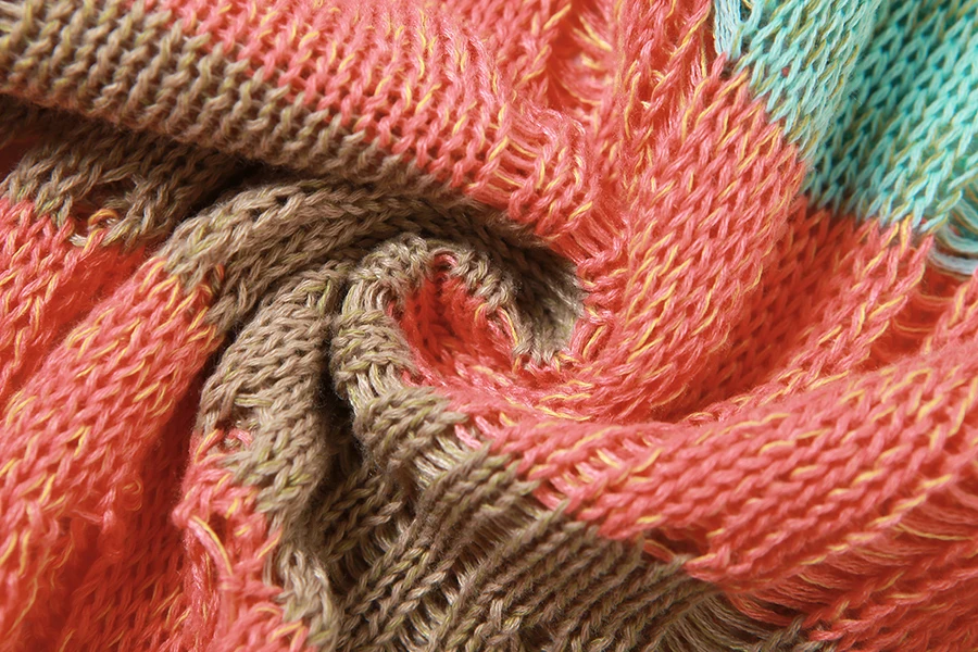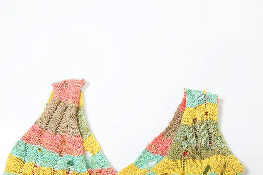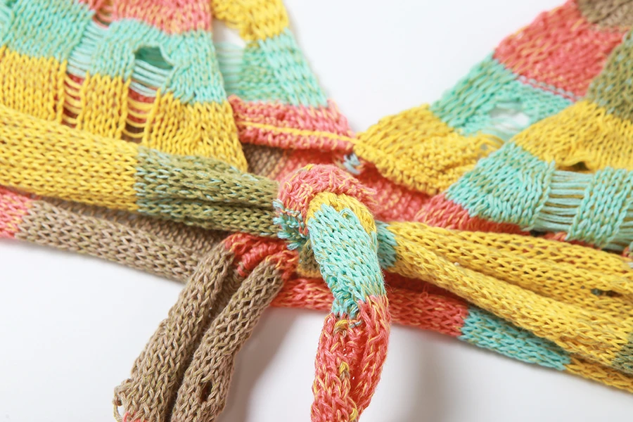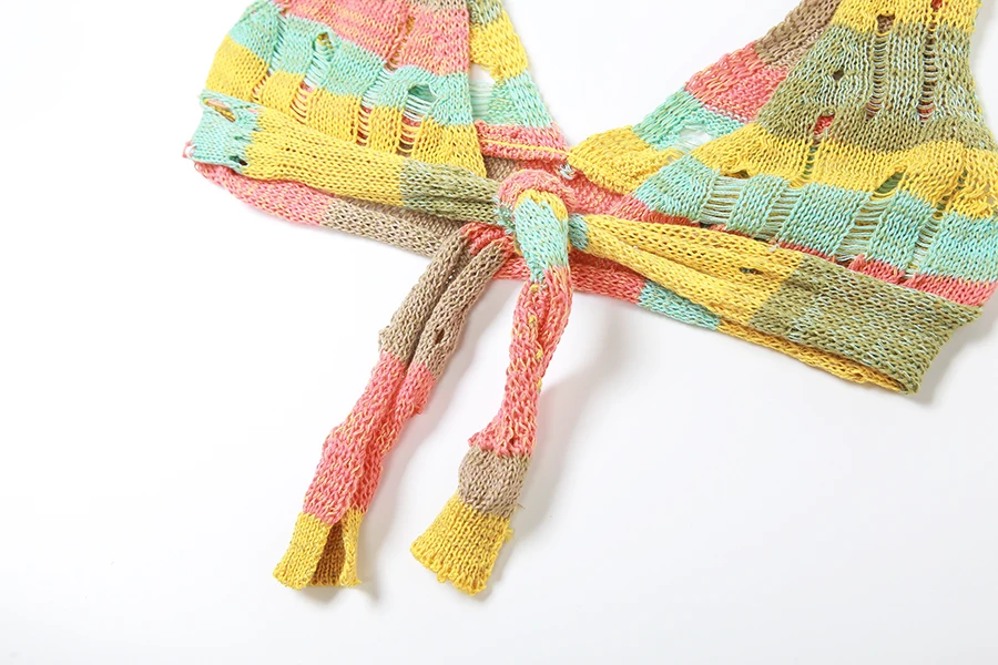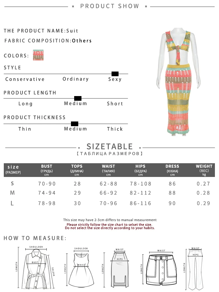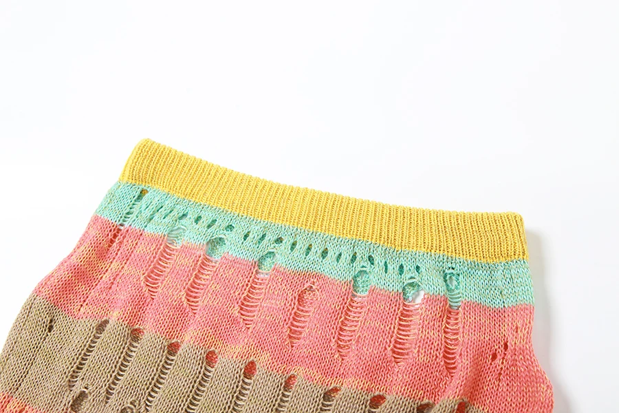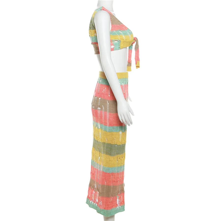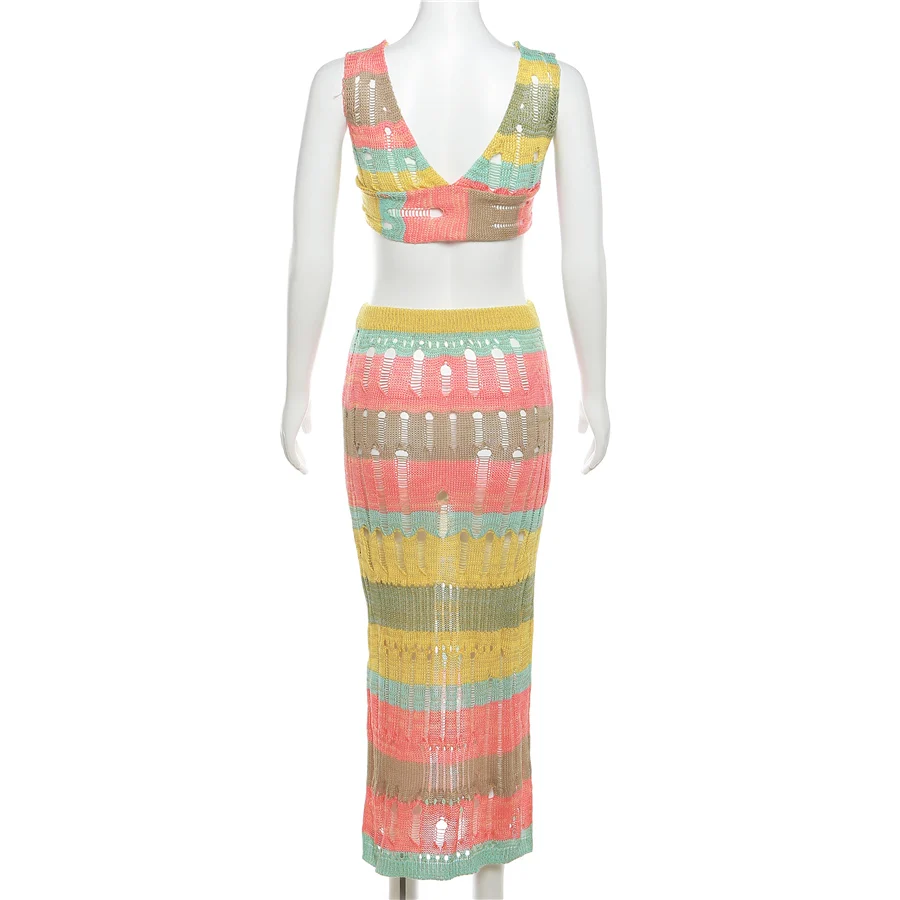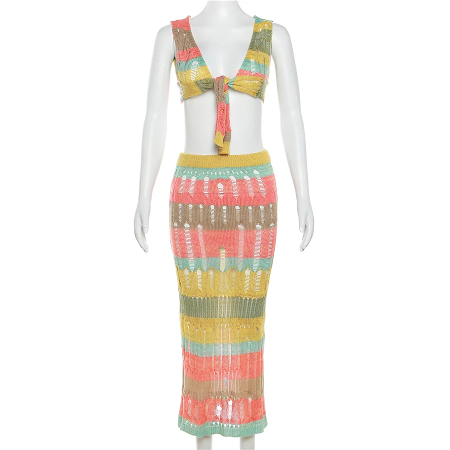 32734 Patchwork Color Knit Women's Set Elegant 2 Piece Skirt Set