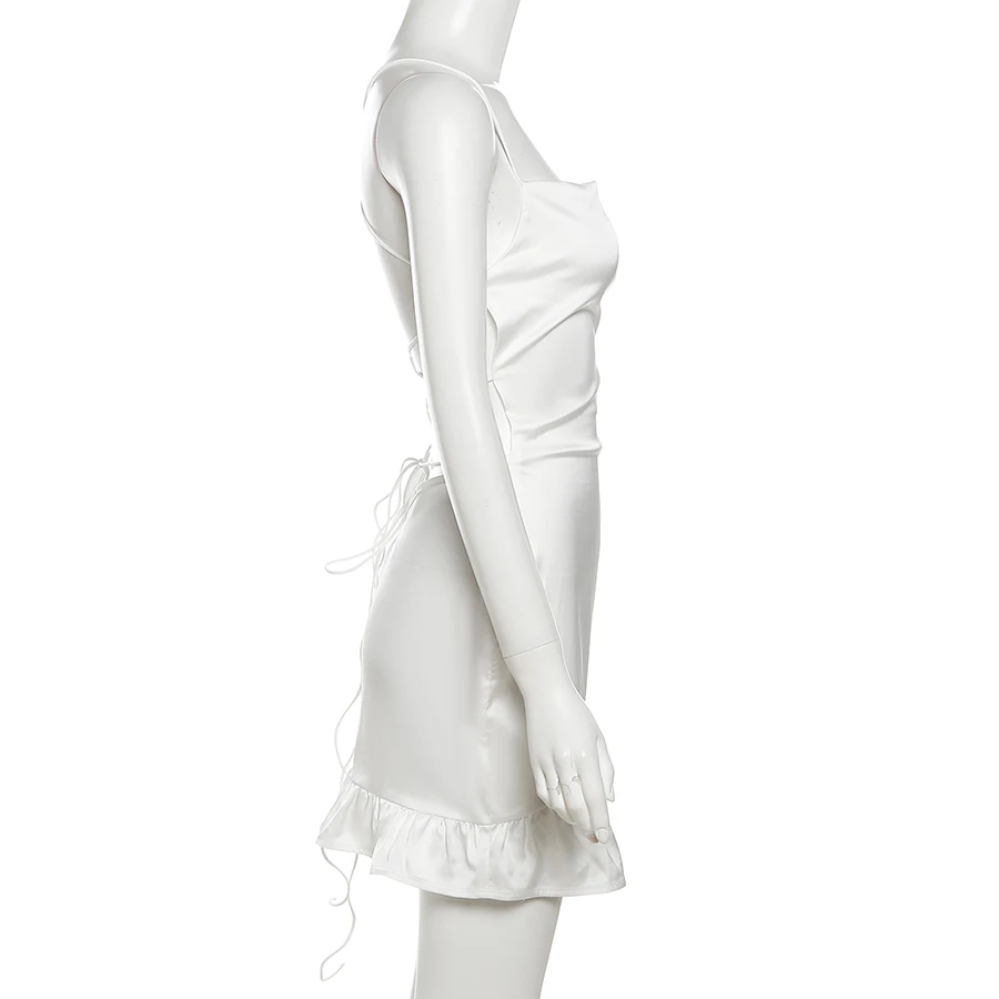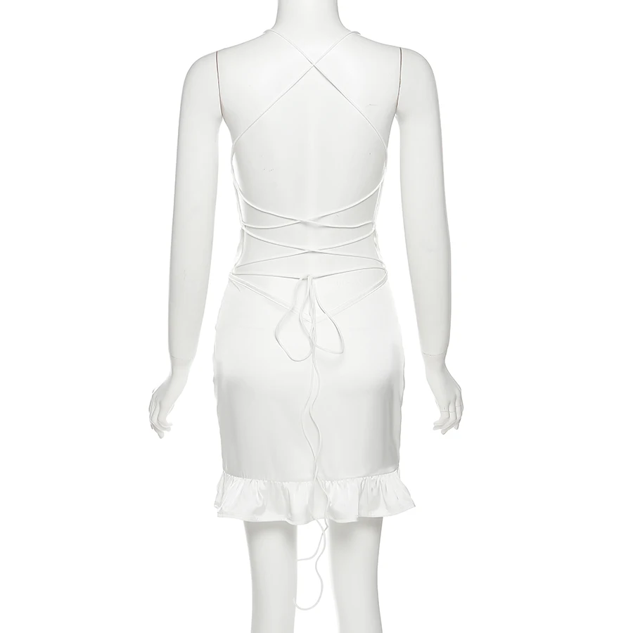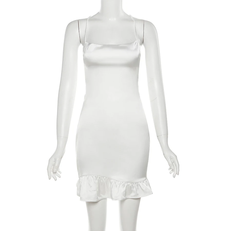 32798 Ruffles Satin Dress Backless Bandage Dresses Women Sexy