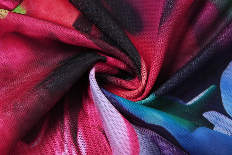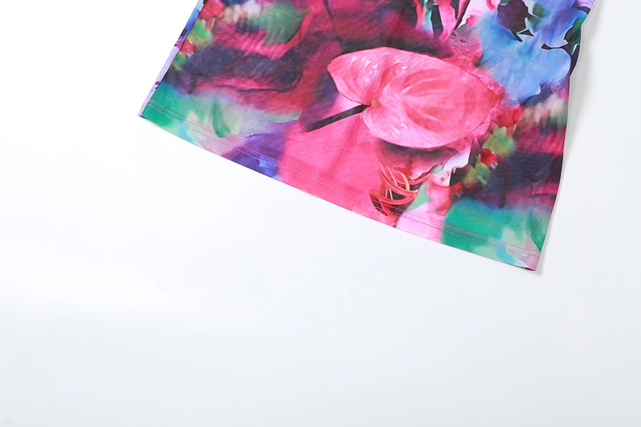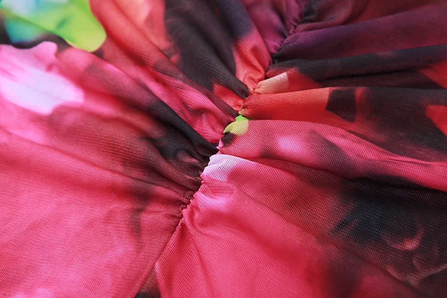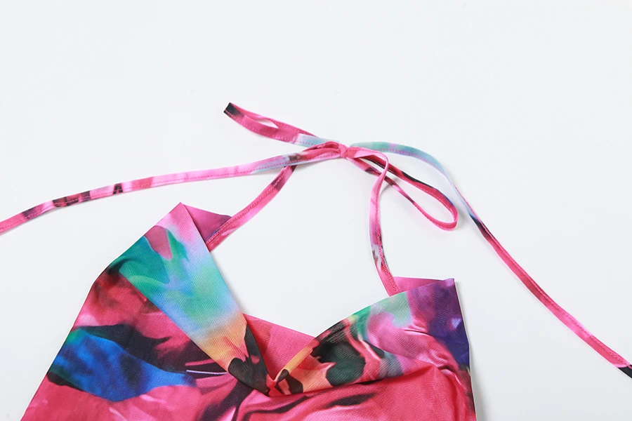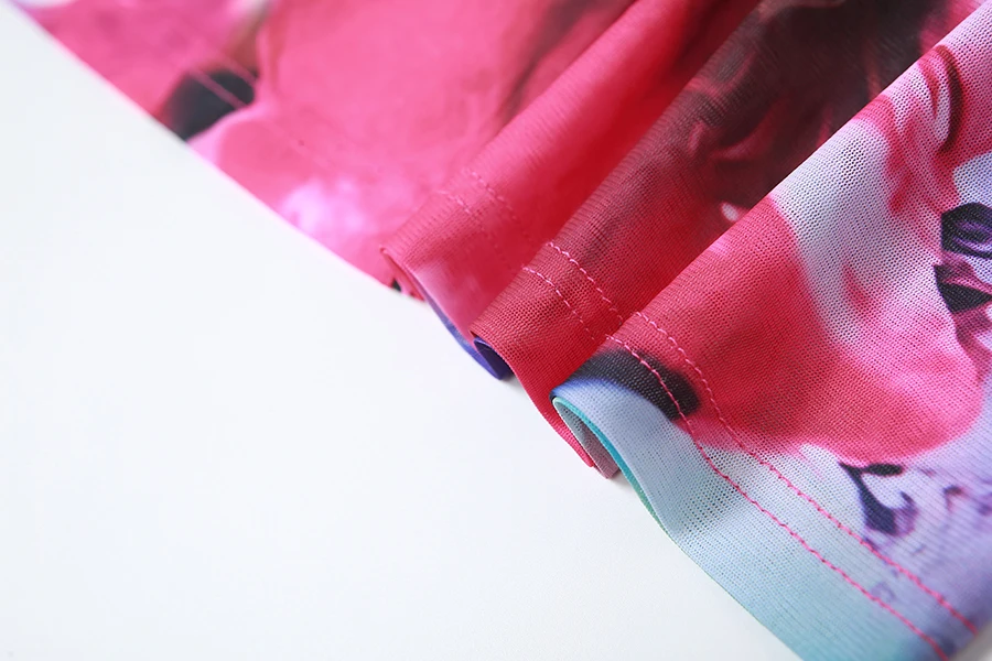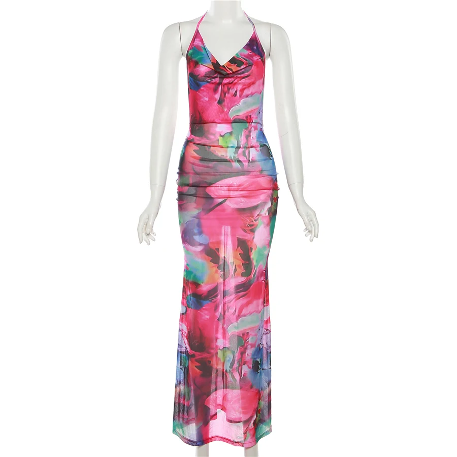33078 Mesh Colorful Print Maxi Long Dress Elegant Lady Backless Dresses Women Casual