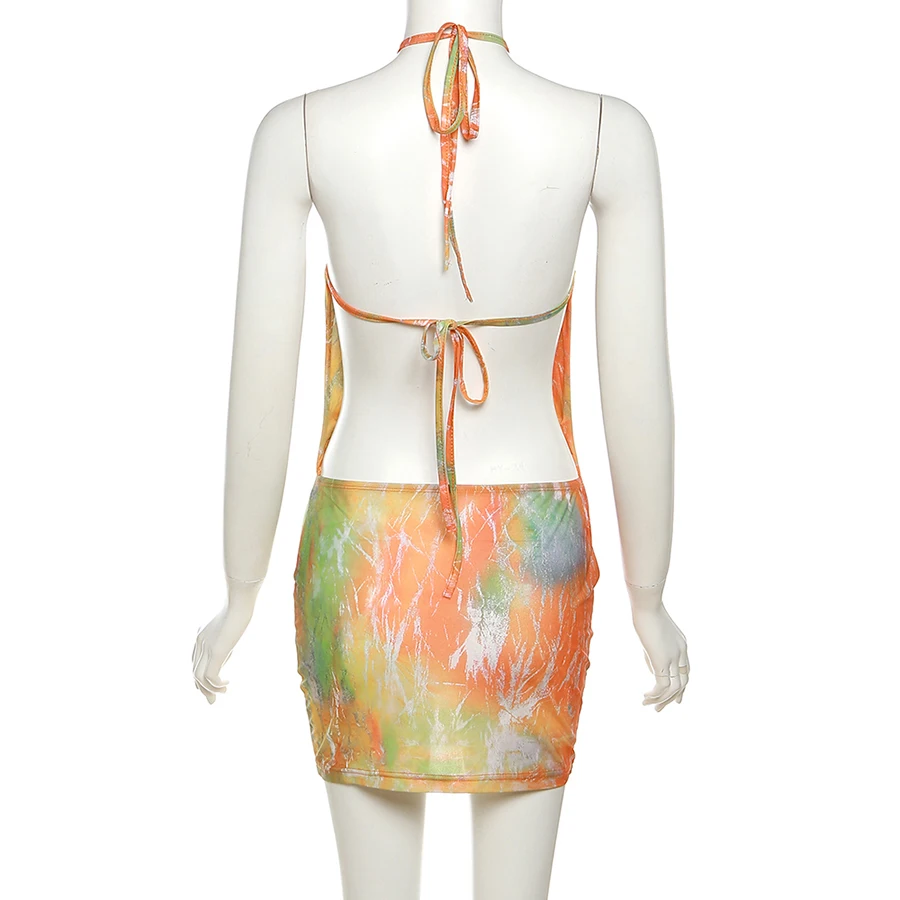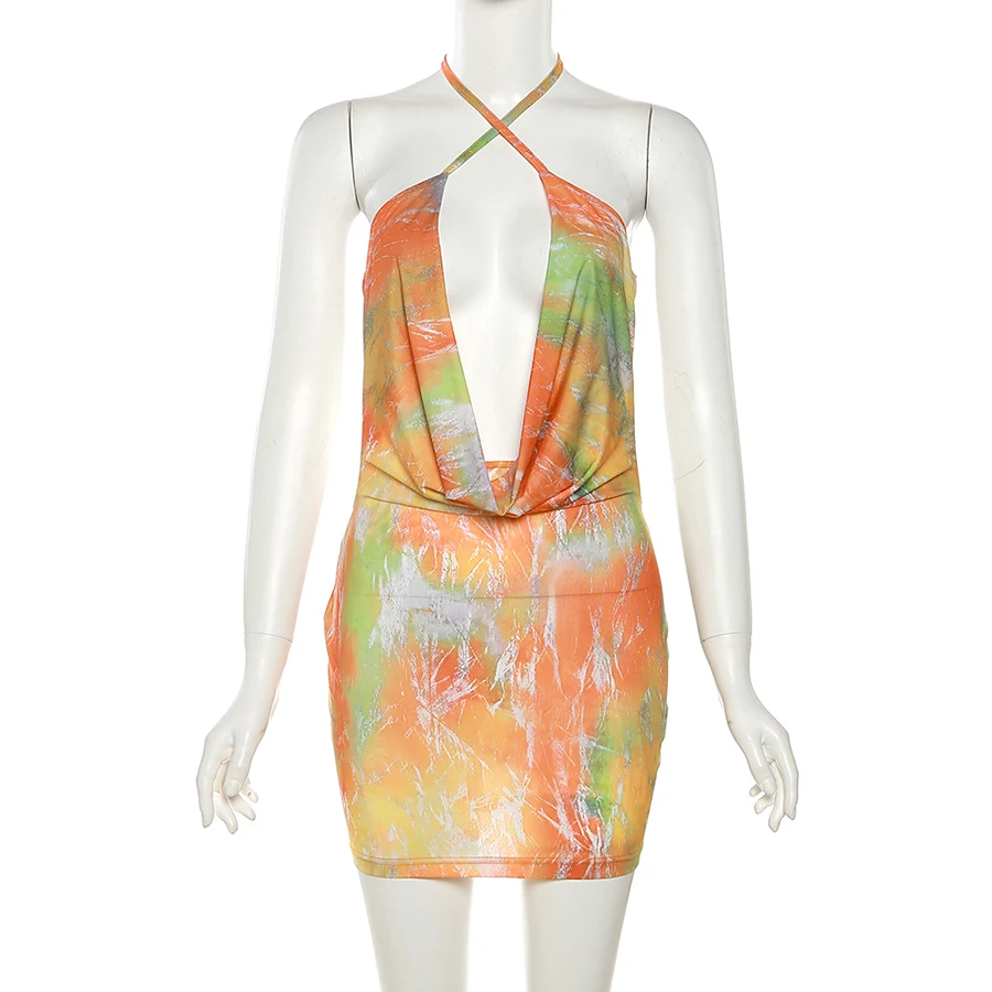 33141 Backless Chiffon Dresses Low Collar Dress Women Sexy