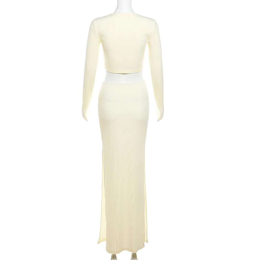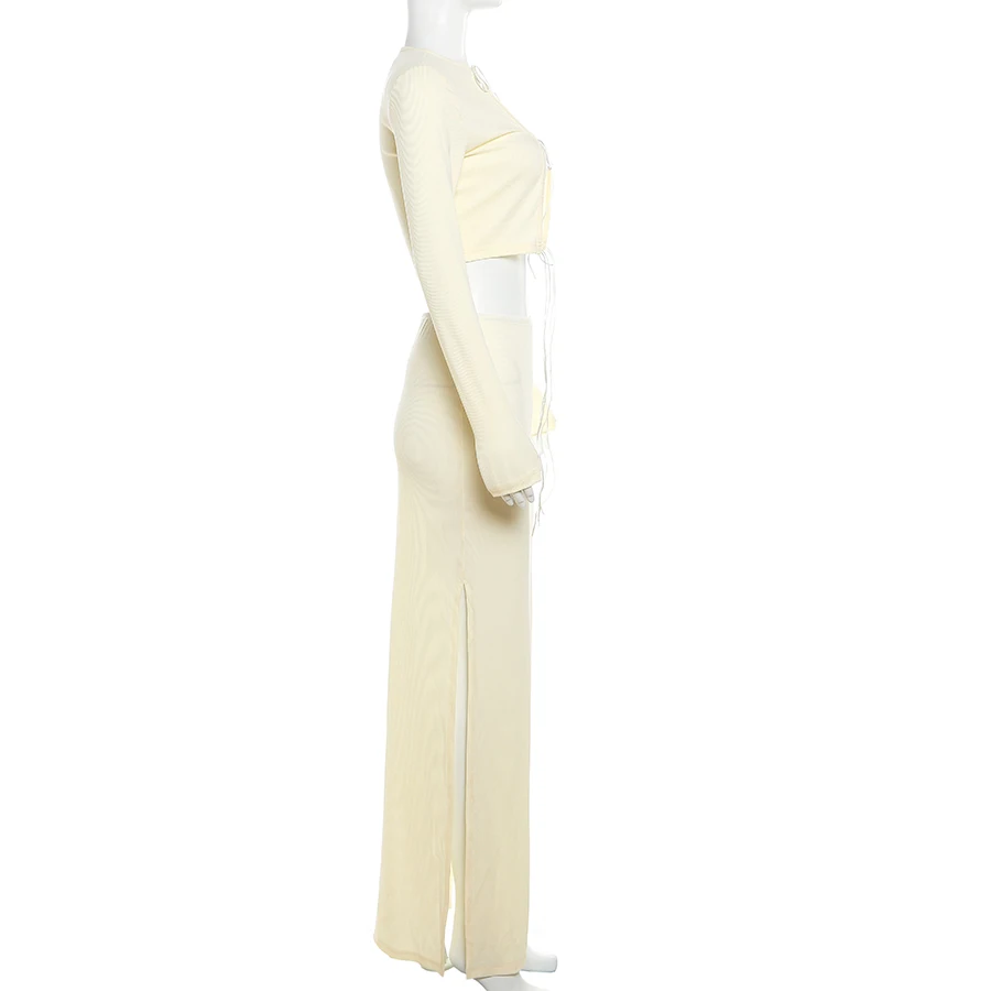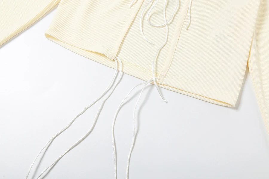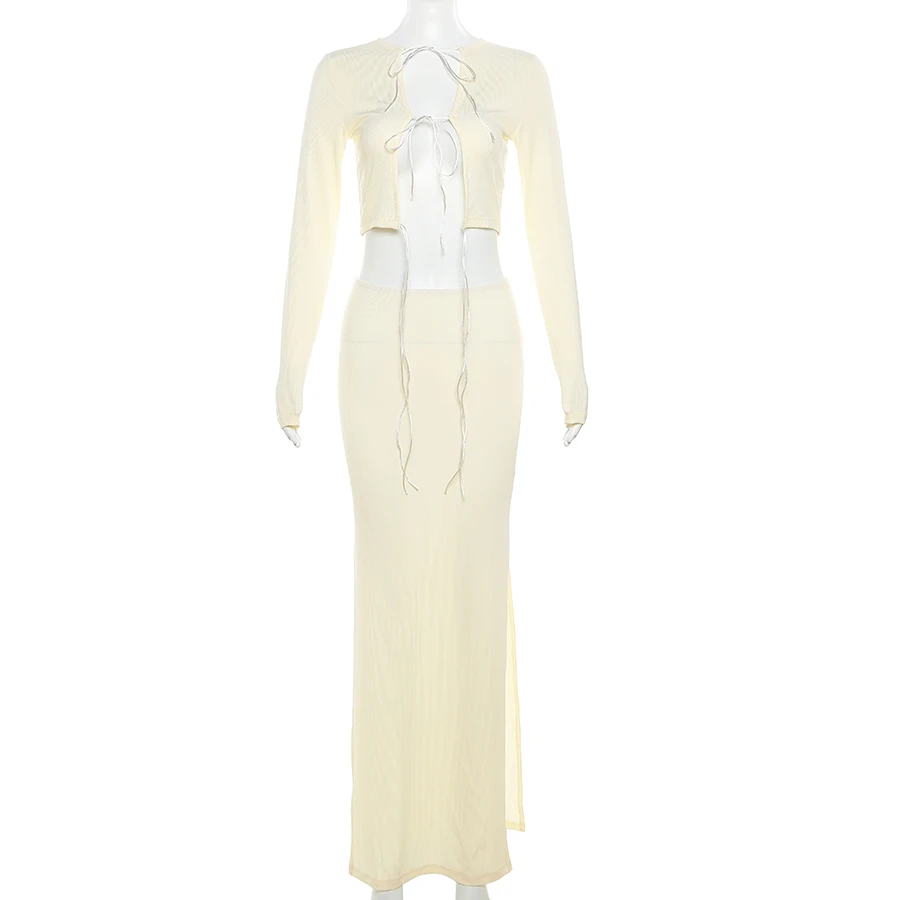 33244 Hollow Tie High Waist Women's Set Elegant Ladies 2 Piece Skirt Set