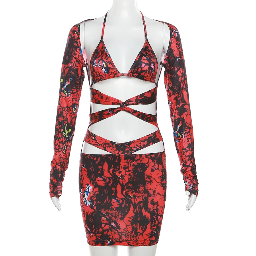 33303 Digital Print Triangle Bras Dresses Elegant Lady Women Dress Sexy